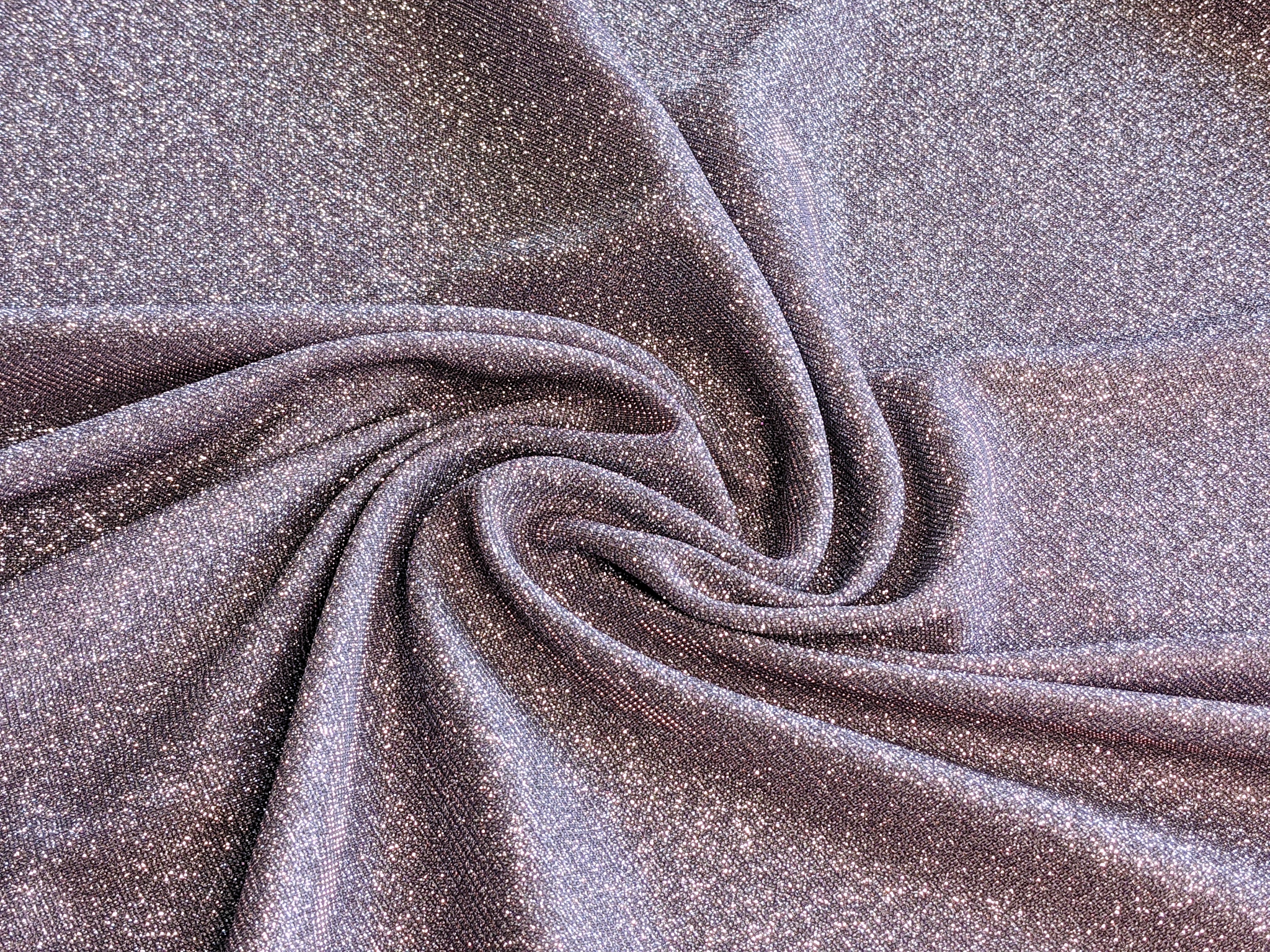 Трикотажне полотно з блиском стане ідеальним варіантом для пошиття карнавальних, танцювальних, вечірніх та випускних суконь. Тканина переливається, створюючи мокрий ефект, трохи тягнеться, має гладку основу, добре лягає складками. В наявності є велика кольорова палітра, для того щоб ви могли фантазувати і комбінувати тканини для створення святкових образів.