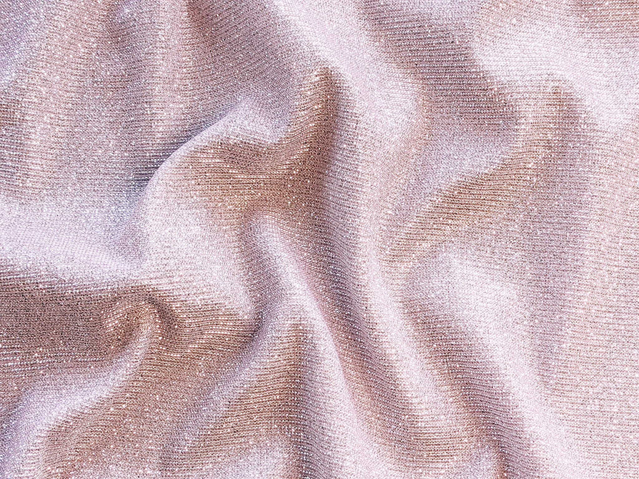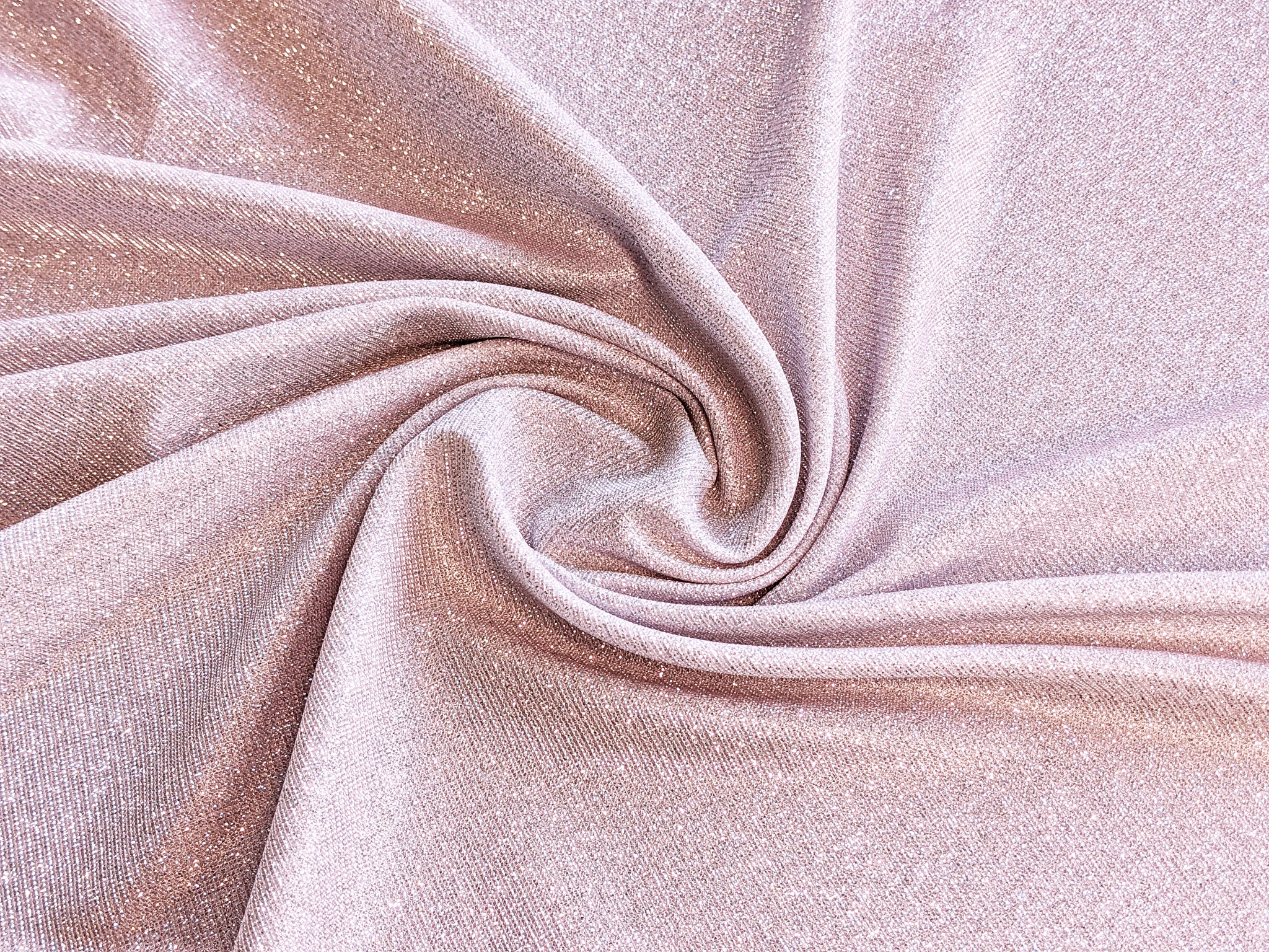Трикотажне полотно з блиском стане ідеальним варіантом для пошиття карнавальних, танцювальних, вечірніх та випускних суконь. Тканина переливається, створюючи мокрий ефект, трохи тягнеться, має гладку основу, добре лягає складками. В наявності є велика кольорова палітра, для того щоб ви могли фантазувати і комбінувати тканини для створення святкових образів.
