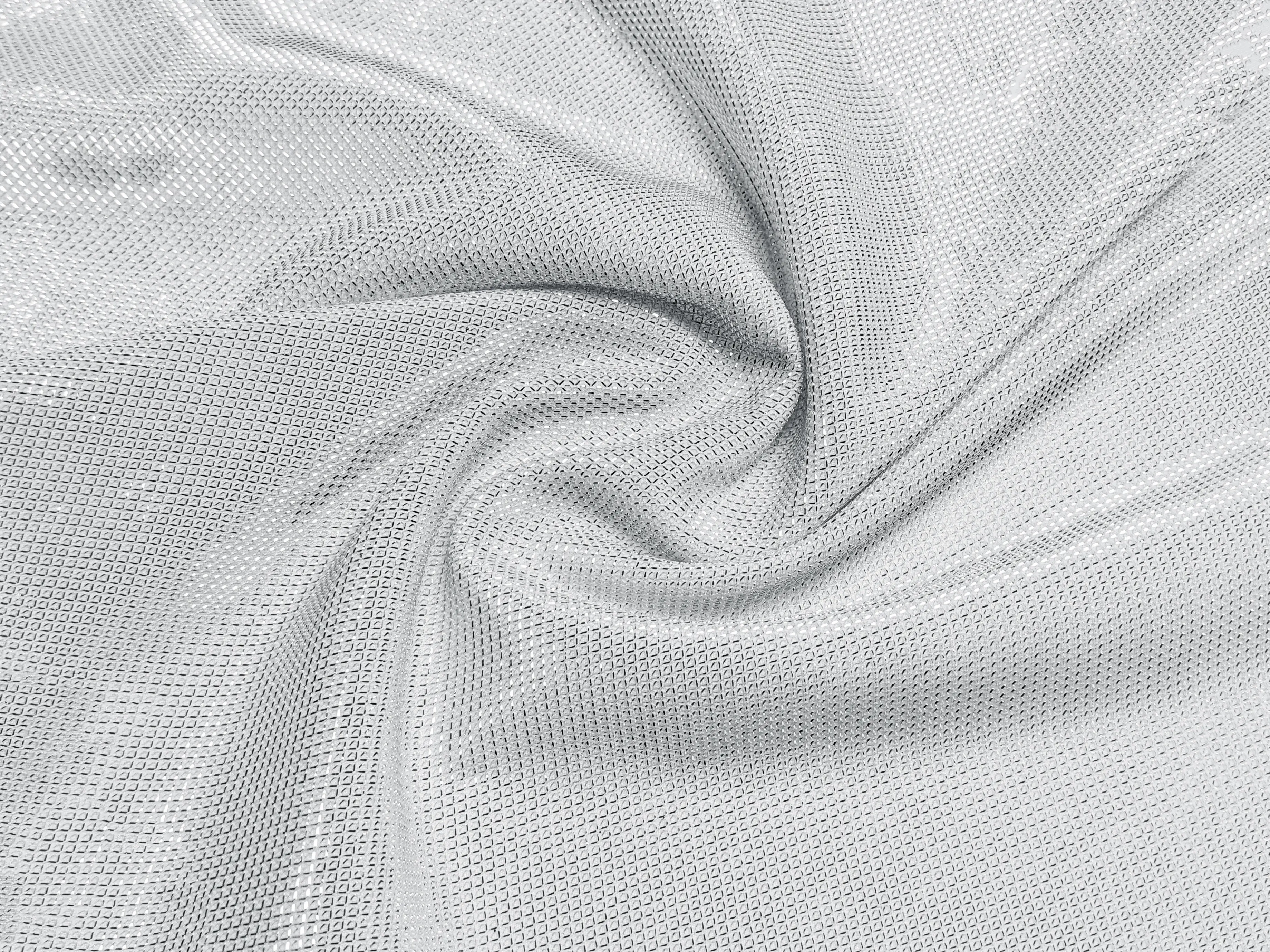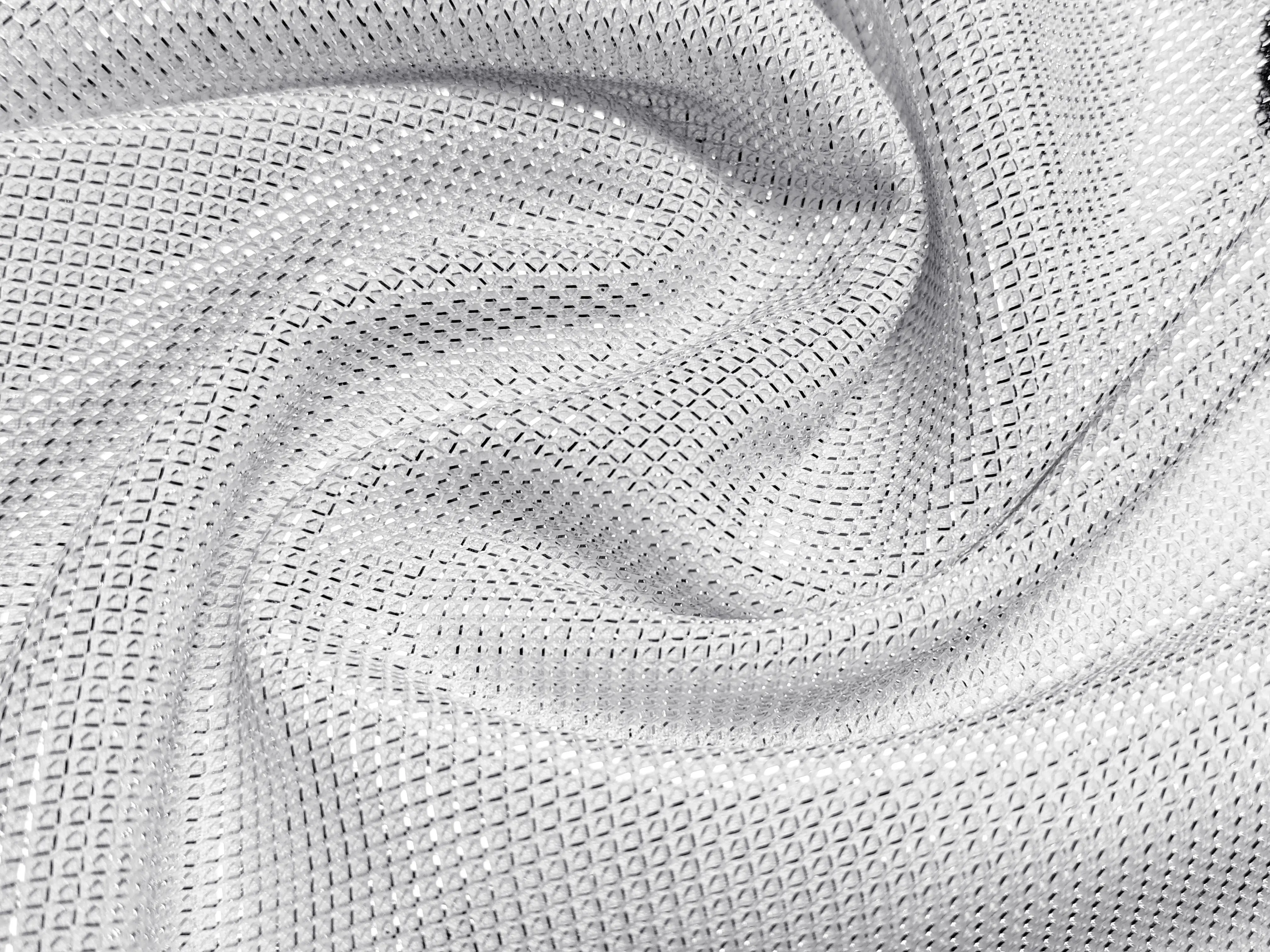 Лицьова сторона полотна має форму лусочок, витканих з люрексових ниток. Тканина має благородний блиск, який у виробі красиво переливається і грає на світлі.