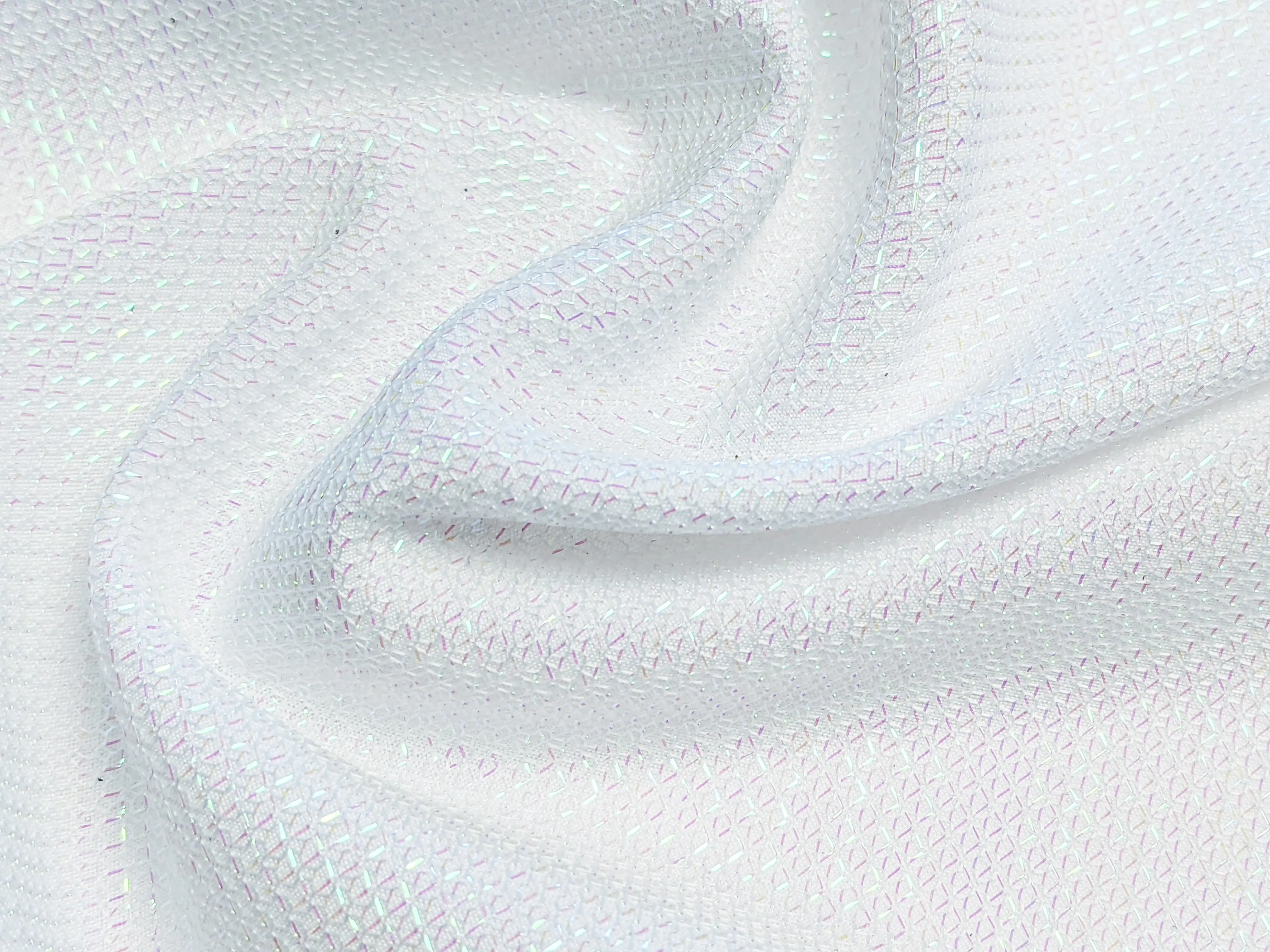 Трикотаж диско щільний хамелеон, білий з салатовим