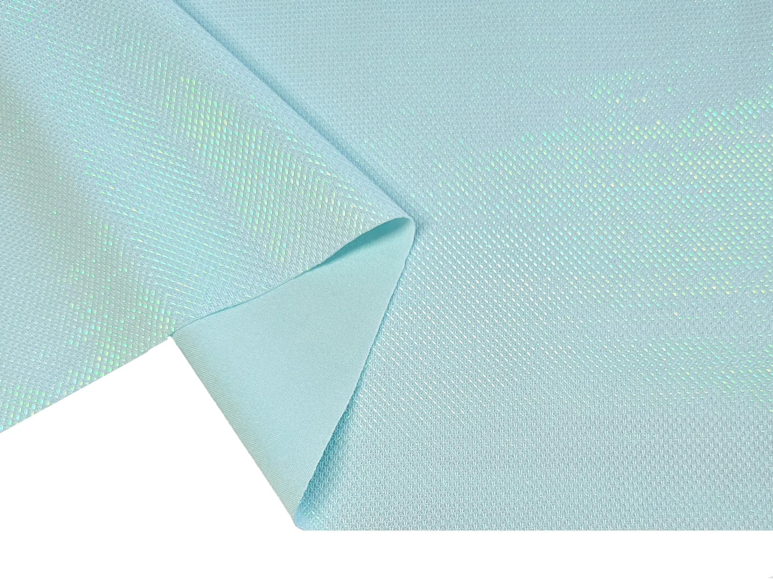 Трикотаж диско луска щільний - це один з варіантів трикотажу диско луска, виконаний на лайкрі. Основа тканини більш щільна, менше тягнеться, не світиться, не мнеться, при цьому гладка і приємна на дотик. Завдяки цим якостям з щільного трикотажу диско можна шити святкові та вечірні вбрання без підкладки.