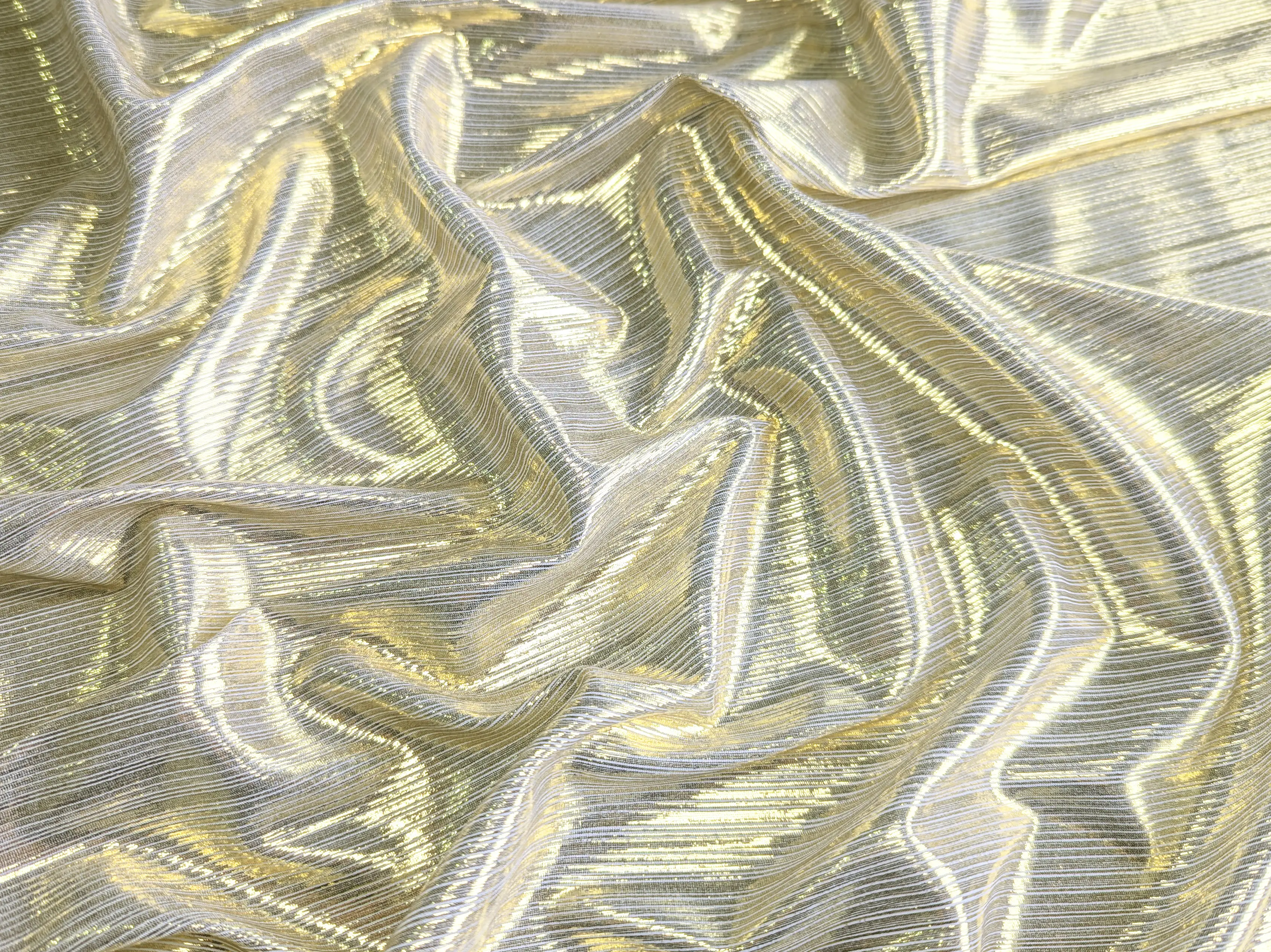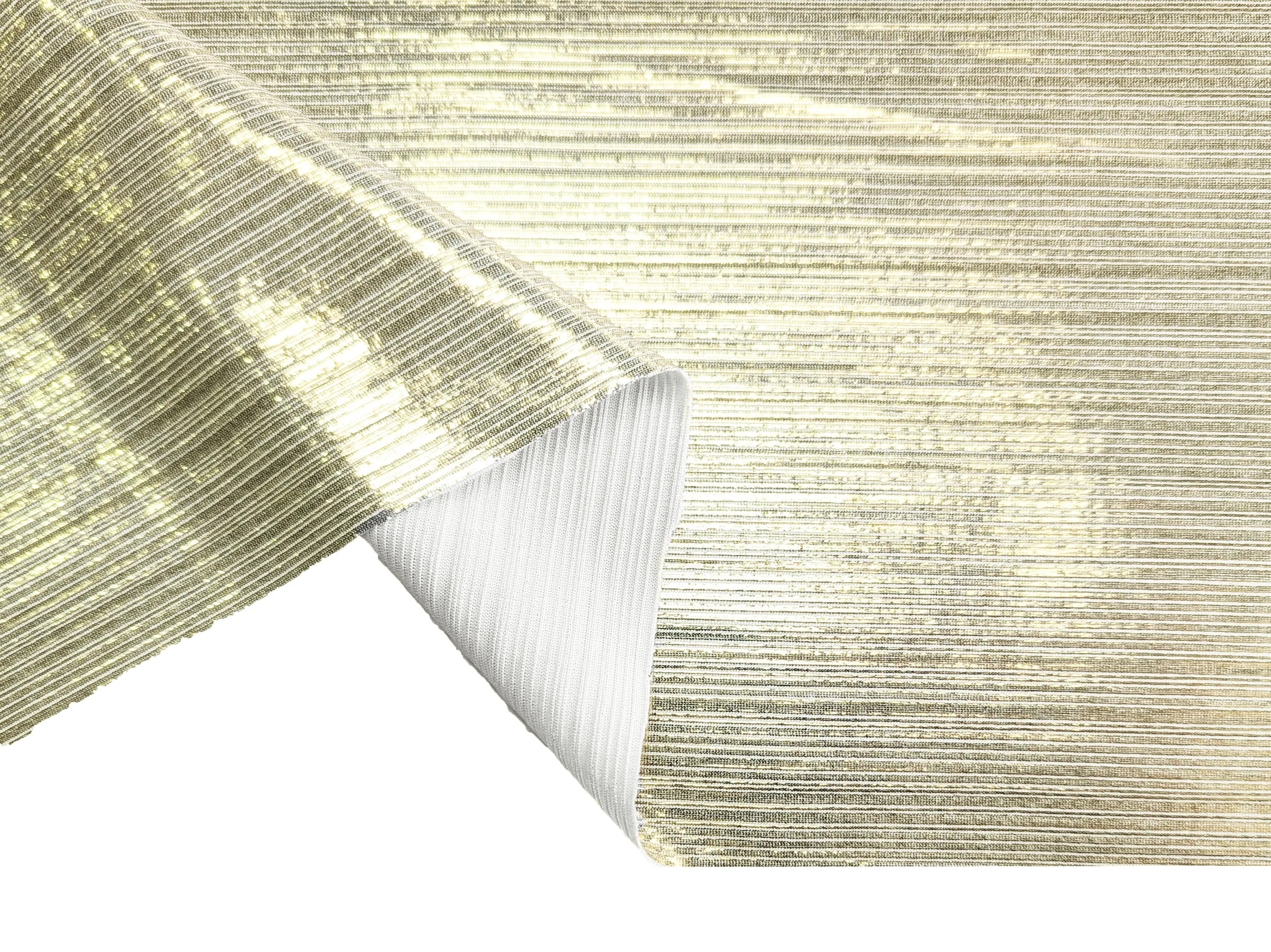 Трикотаж лікра дзеркальний смужка, золото на білому (відріз 1,3 м)