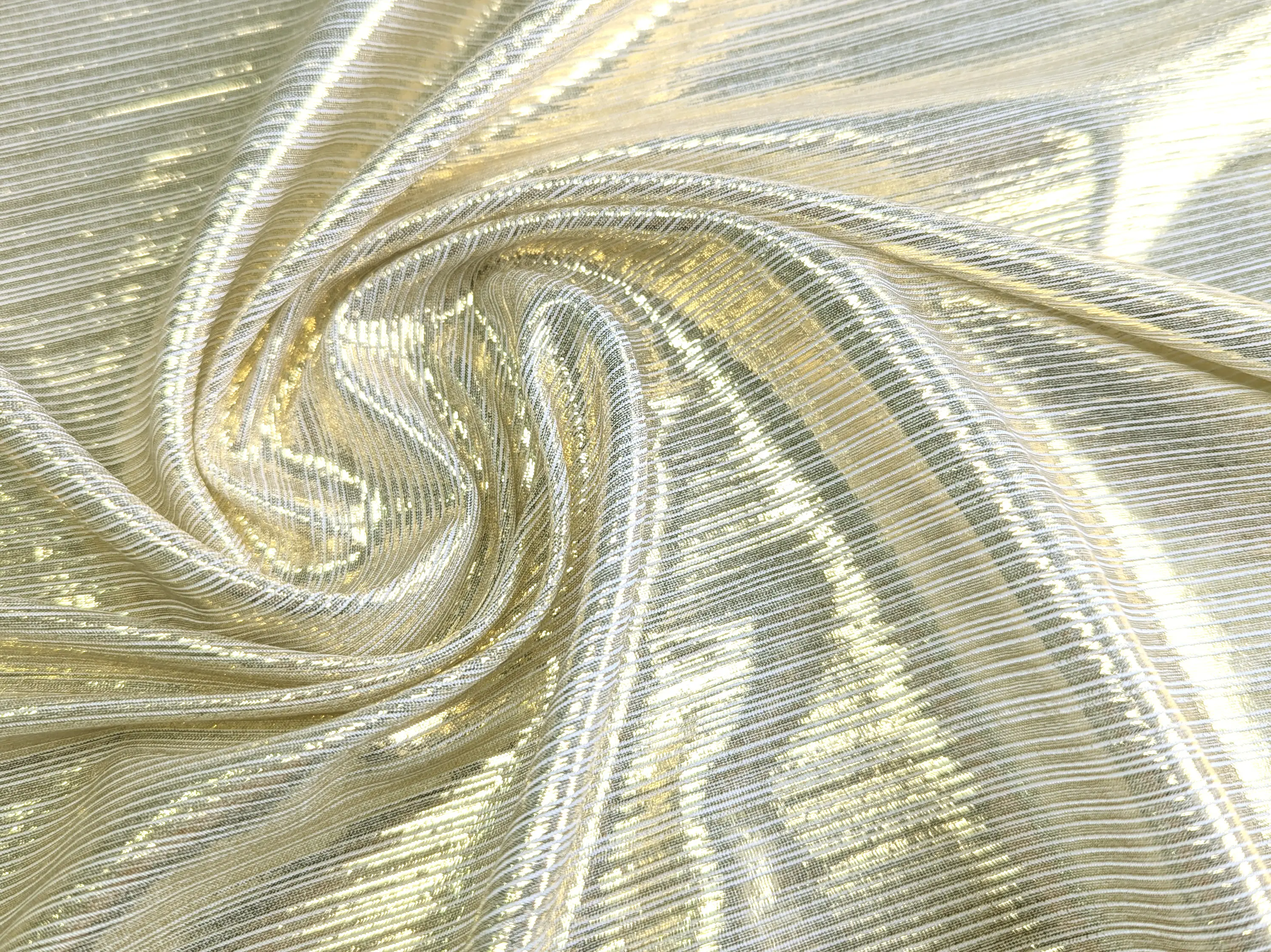 Трикотаж лікра дзеркальний смужка, золото на білому
