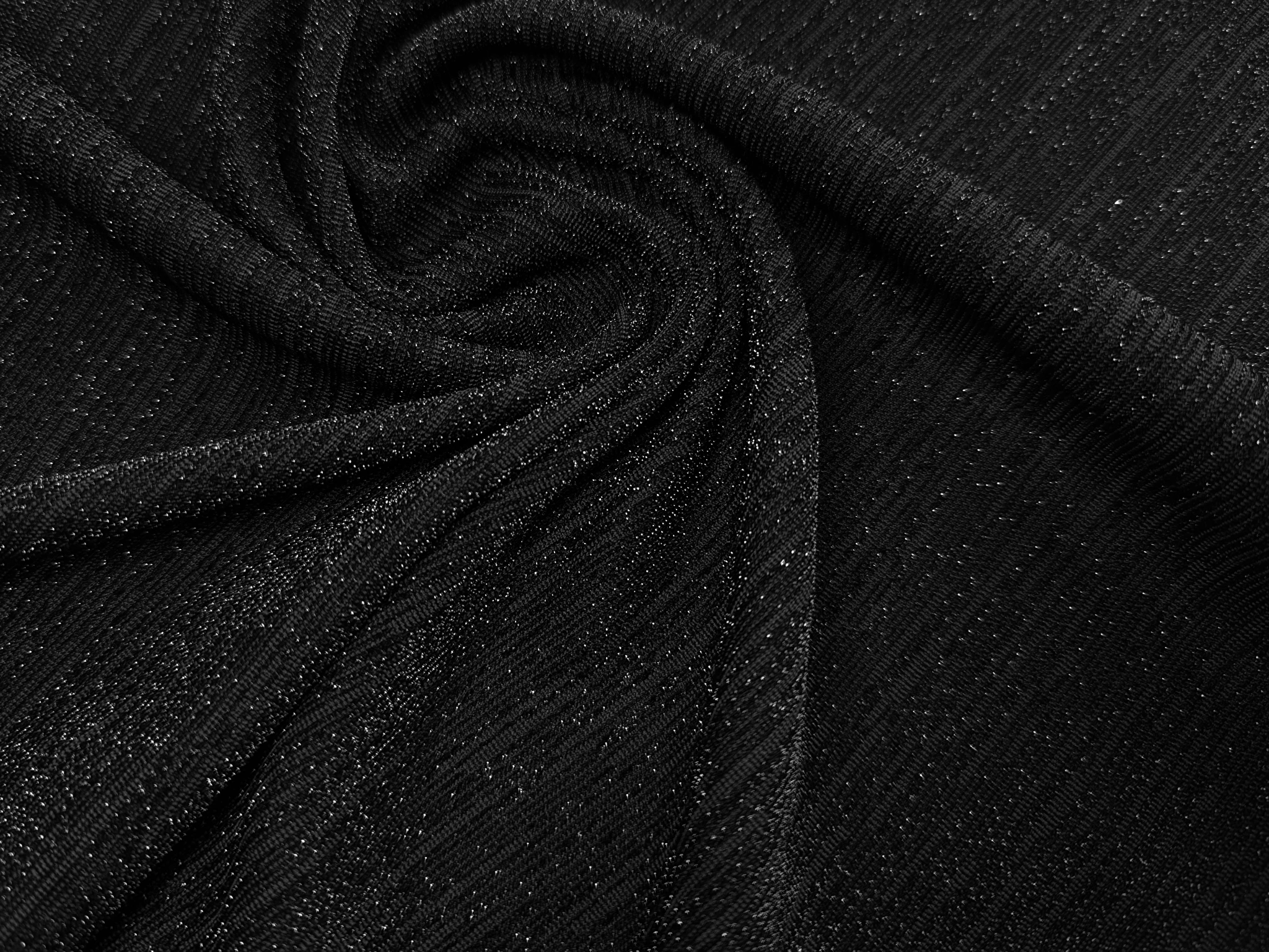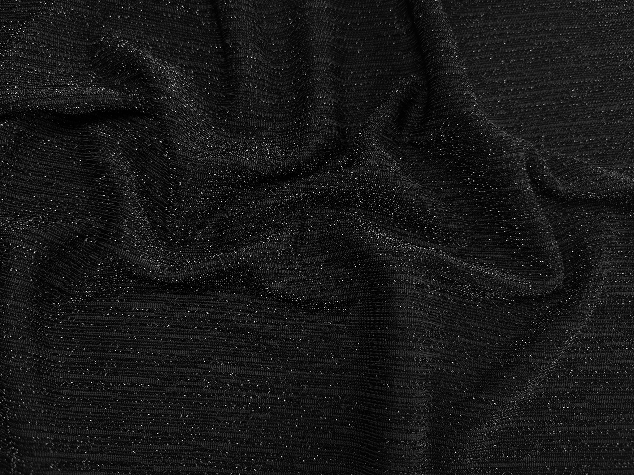 Трикотаж люрекс - тонкий, еластичний матеріал, лицьовий бік якого декорований металізованою ниткою, зворотний бік гладкий і м'який. Полотно добре тягнеться по ширині полотна, не мнеться, непрозоре на тілі, але має силуетний просвіт. Трикотаж пластичний, у складки лягає м'яко, обсипається по лінії зрізу. Люрексова нитка додає тканині мерехтіння і робить поверхню шорсткою.