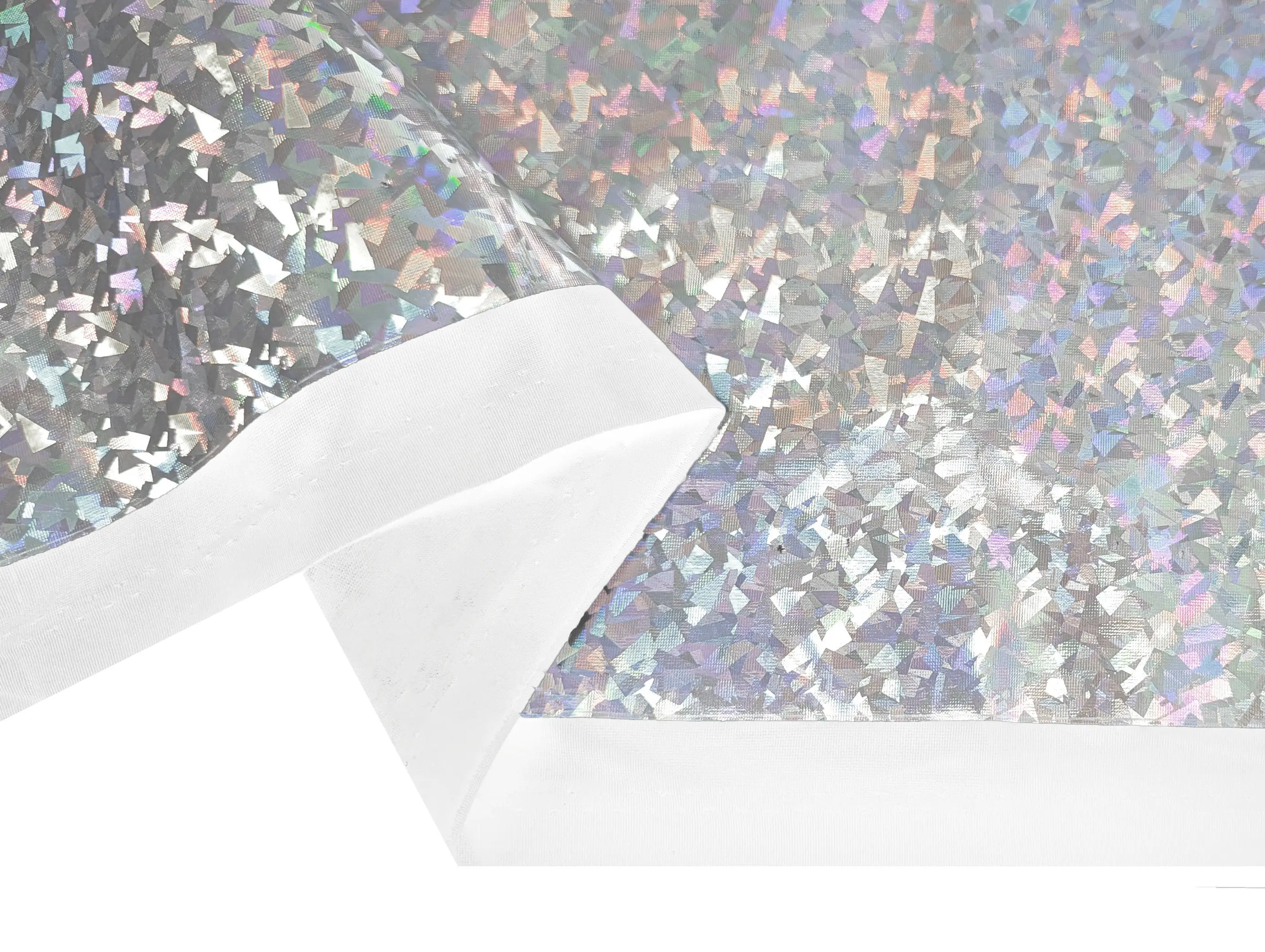 Трикотаж масло нарядне голограма райдужна, срібло на білому
