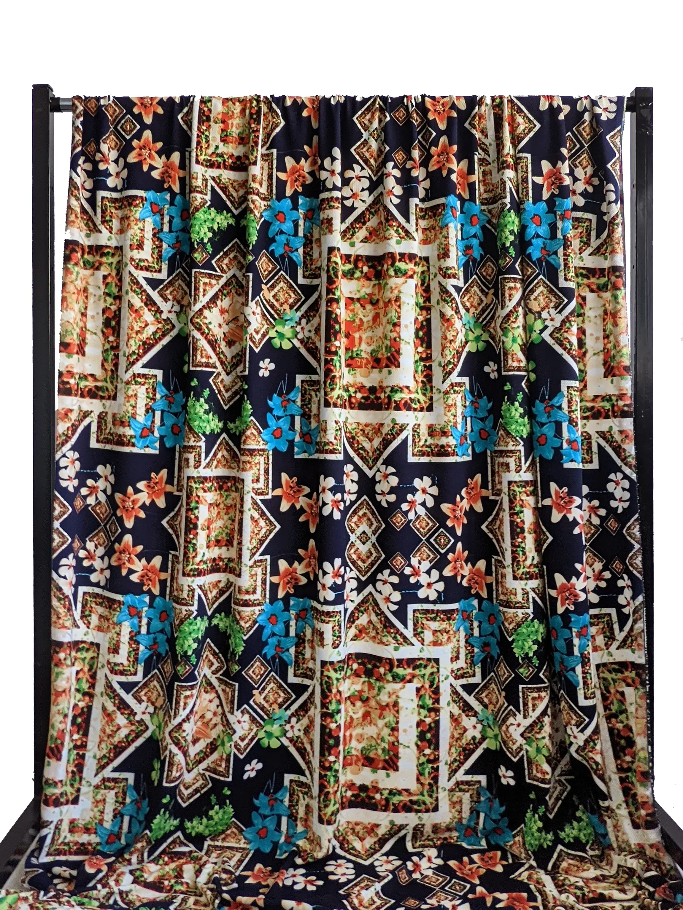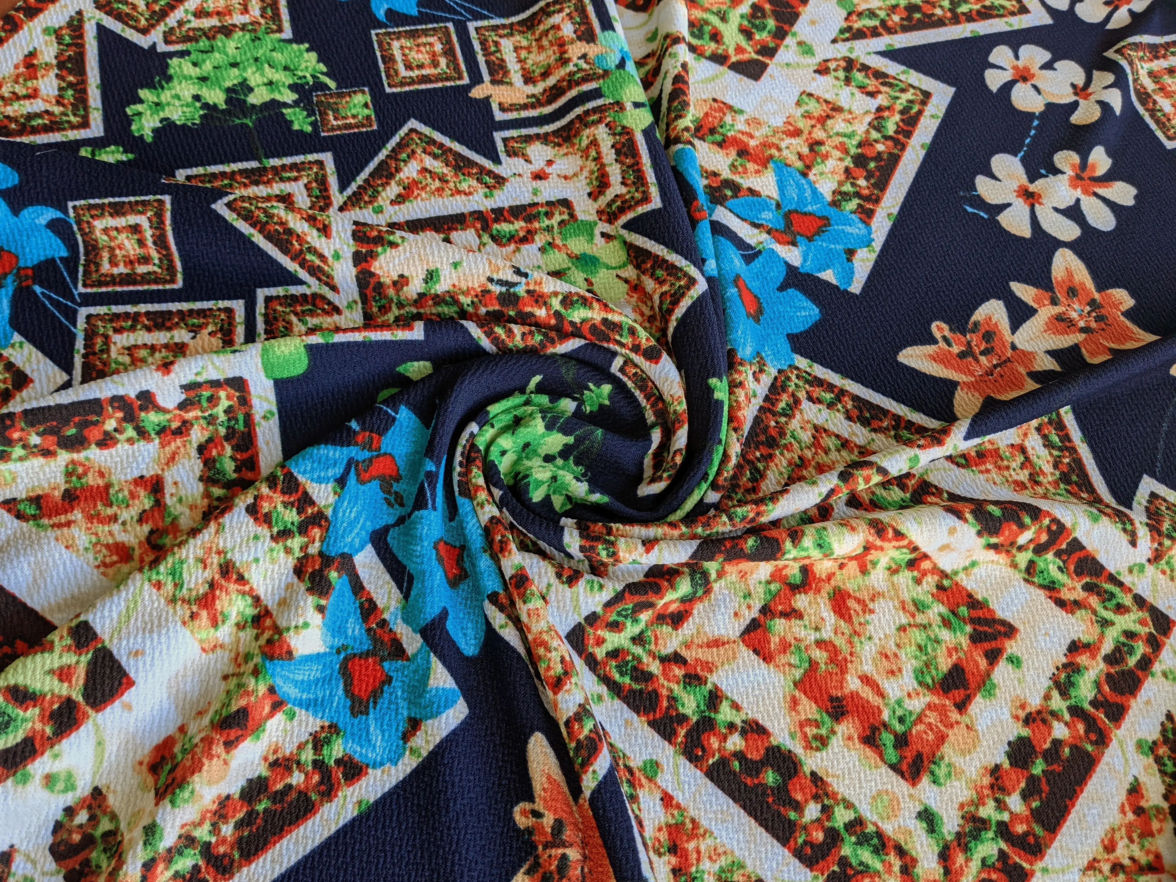 Трикотаж мікс орнаментів, темно-синій (відріз 2 м)