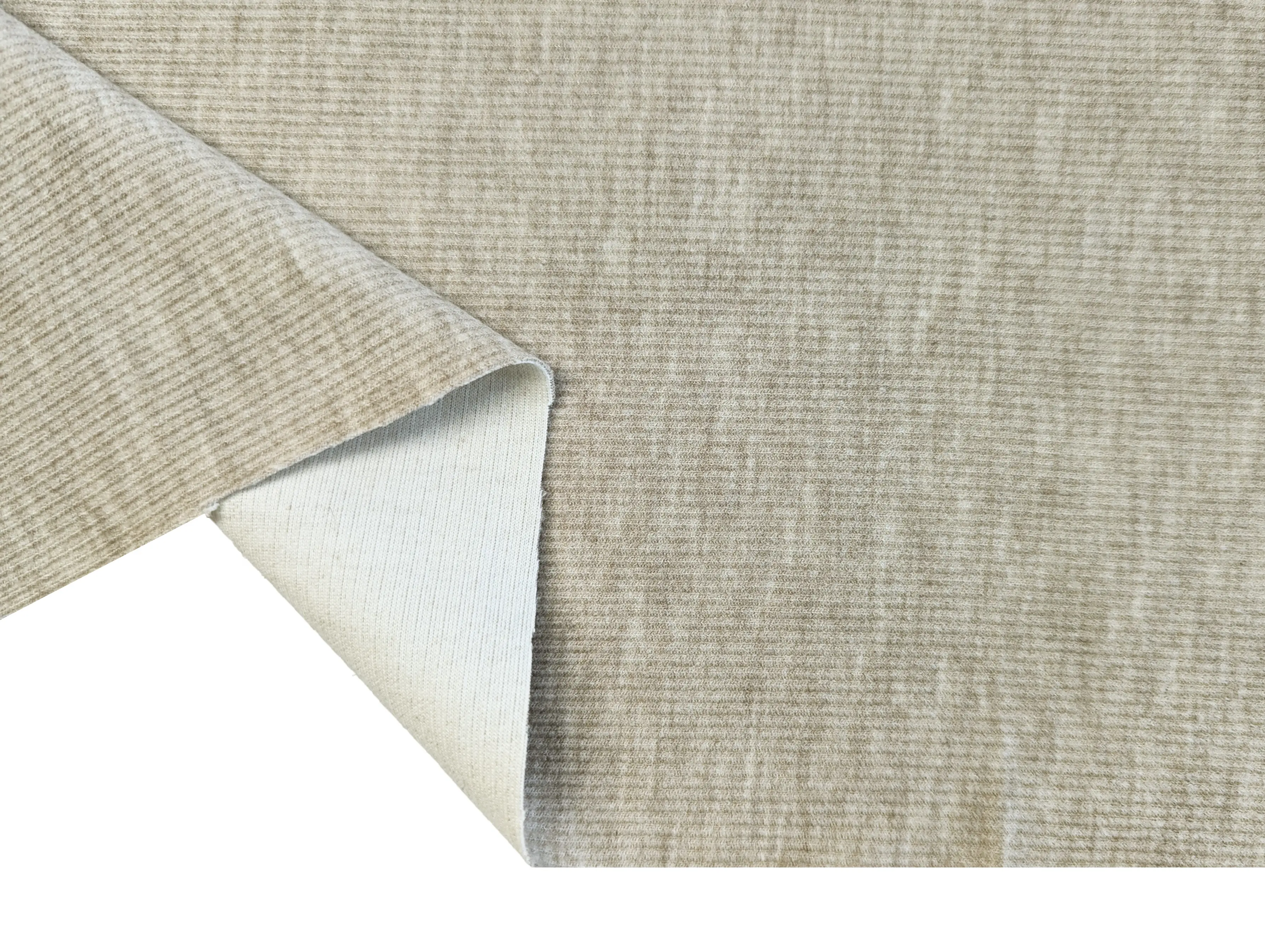 Трикотаж рубчик з віскозою - це м'яка, еластична та пластична тканина з виразною фактурою поздовжніх рубчиків. Матеріал поєднує в собі комфортну м'якість, міцність та високу зносостійкість. Завдяки щільній основі тканина зберігає форму та презентабельний вигляд навіть після численних циклів прання і носіння.
