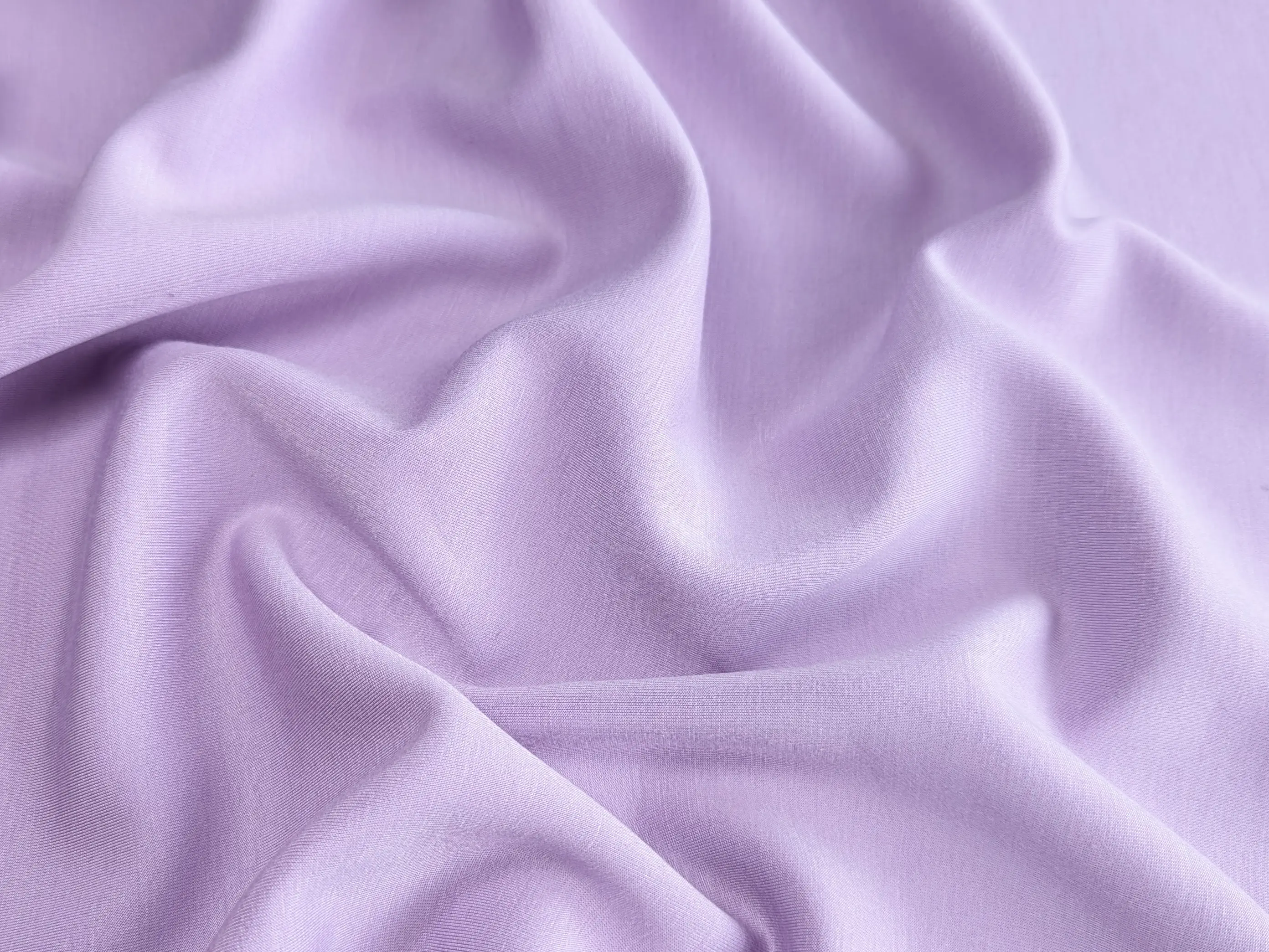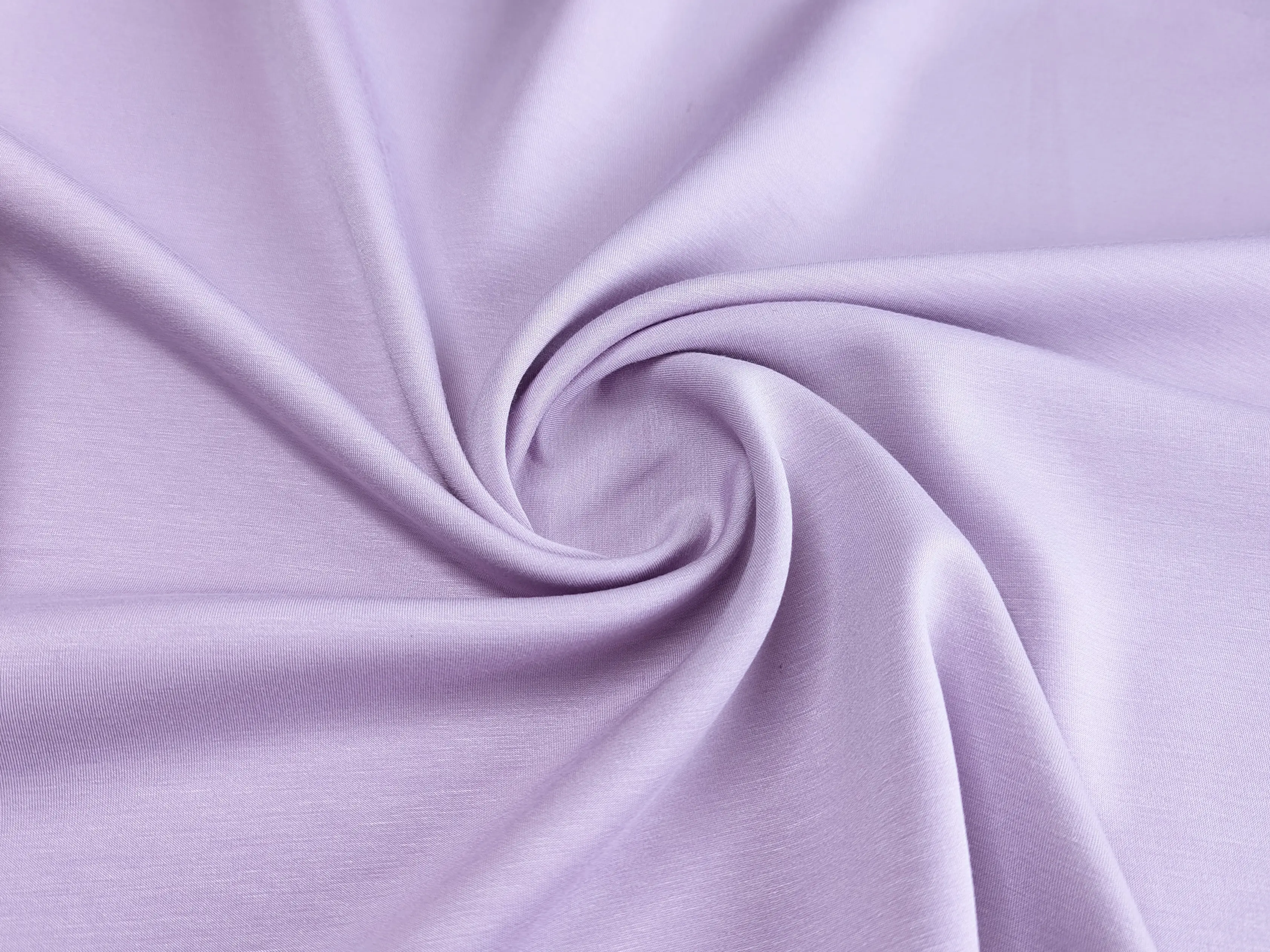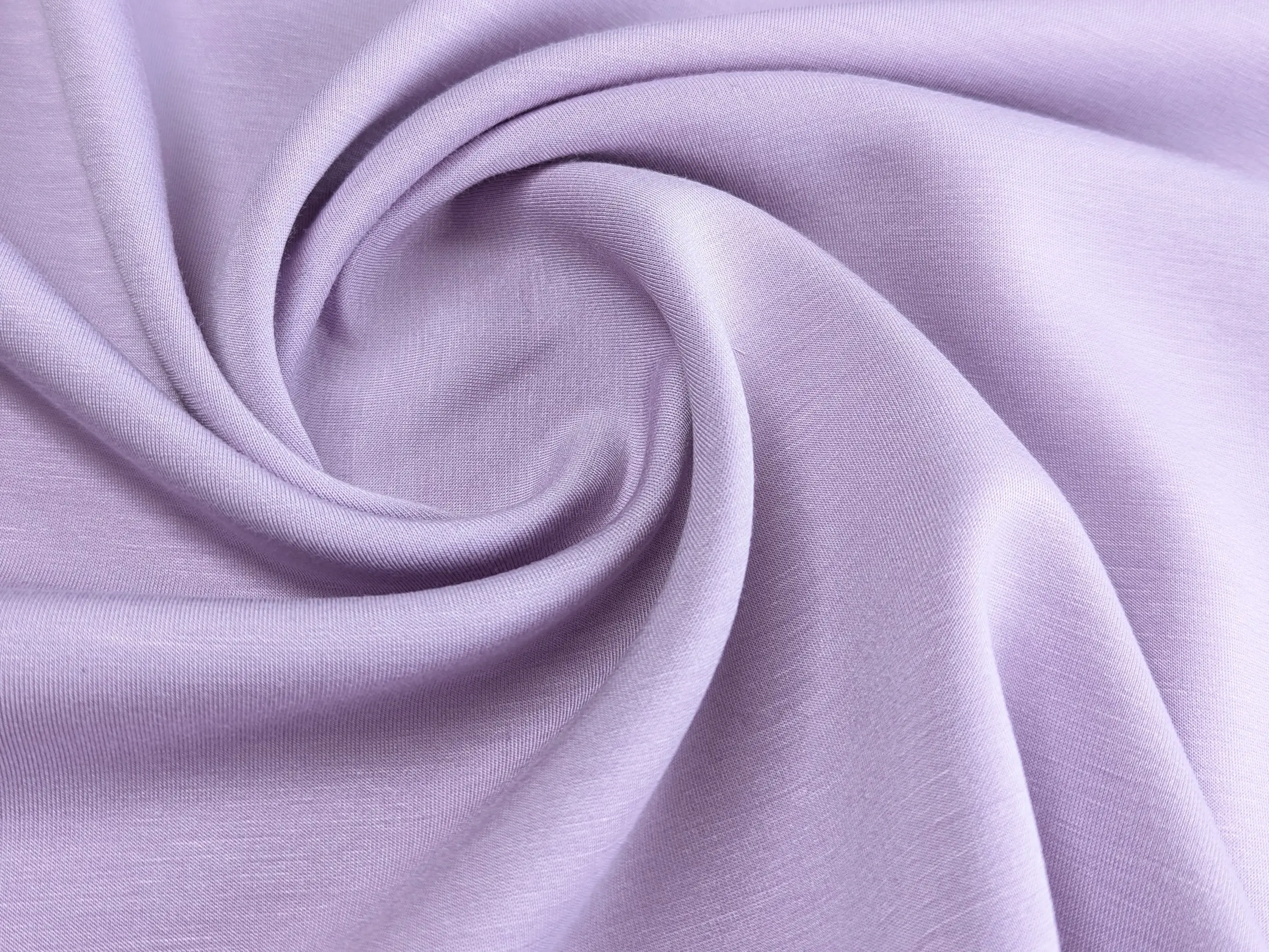 Тканина чудово лягає у складки та красиво драпірується, м’яко струмує по фігурі й підкреслює силует. Матеріал еластичний у двох напрямках - добре тягнеться, при цьому навіть за сильного розтягування зберігає форму й не деформується. Зрізи не обсипаються, що робить полотно зручним у роботі. Трикотаж не просвічується на тілі, а завдяки наявності натуральних волокон добре вбирає вологу та пропускає повітря.