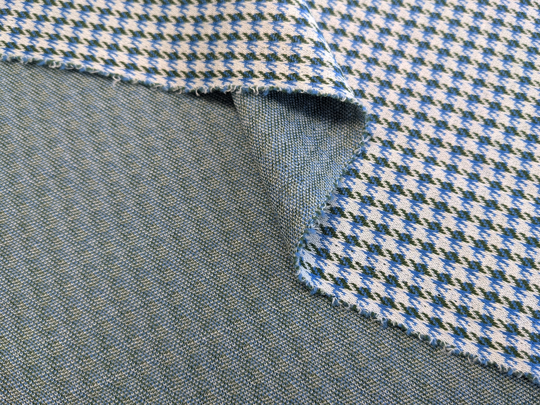 Трикотаж теплий гусяча лапка, блакитний з зеленим