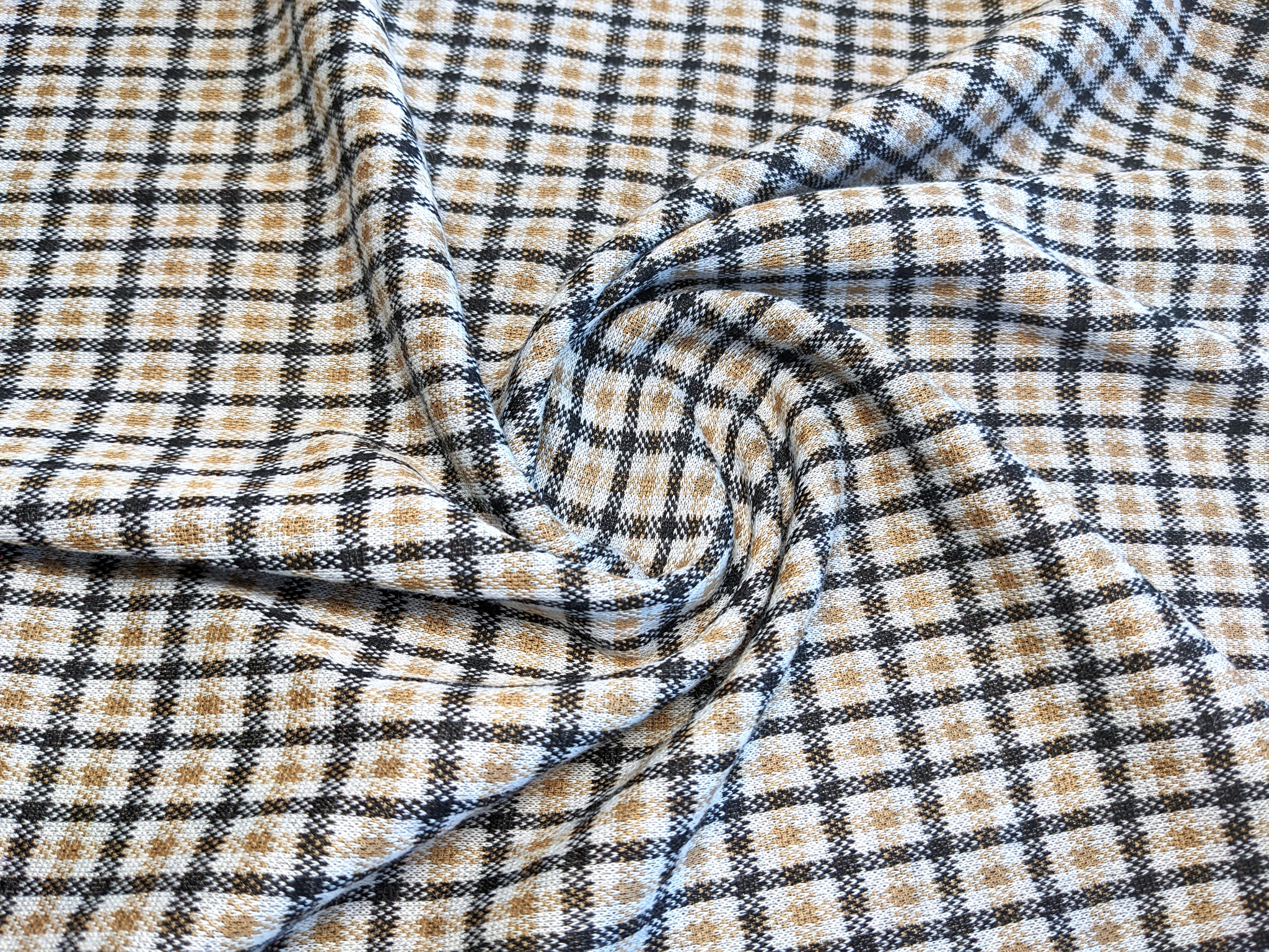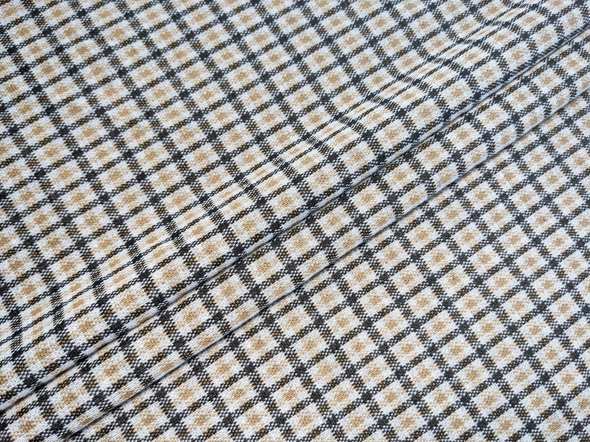 Трикотаж віскозний клітинка 15 мм, пісочний з темно-сірим