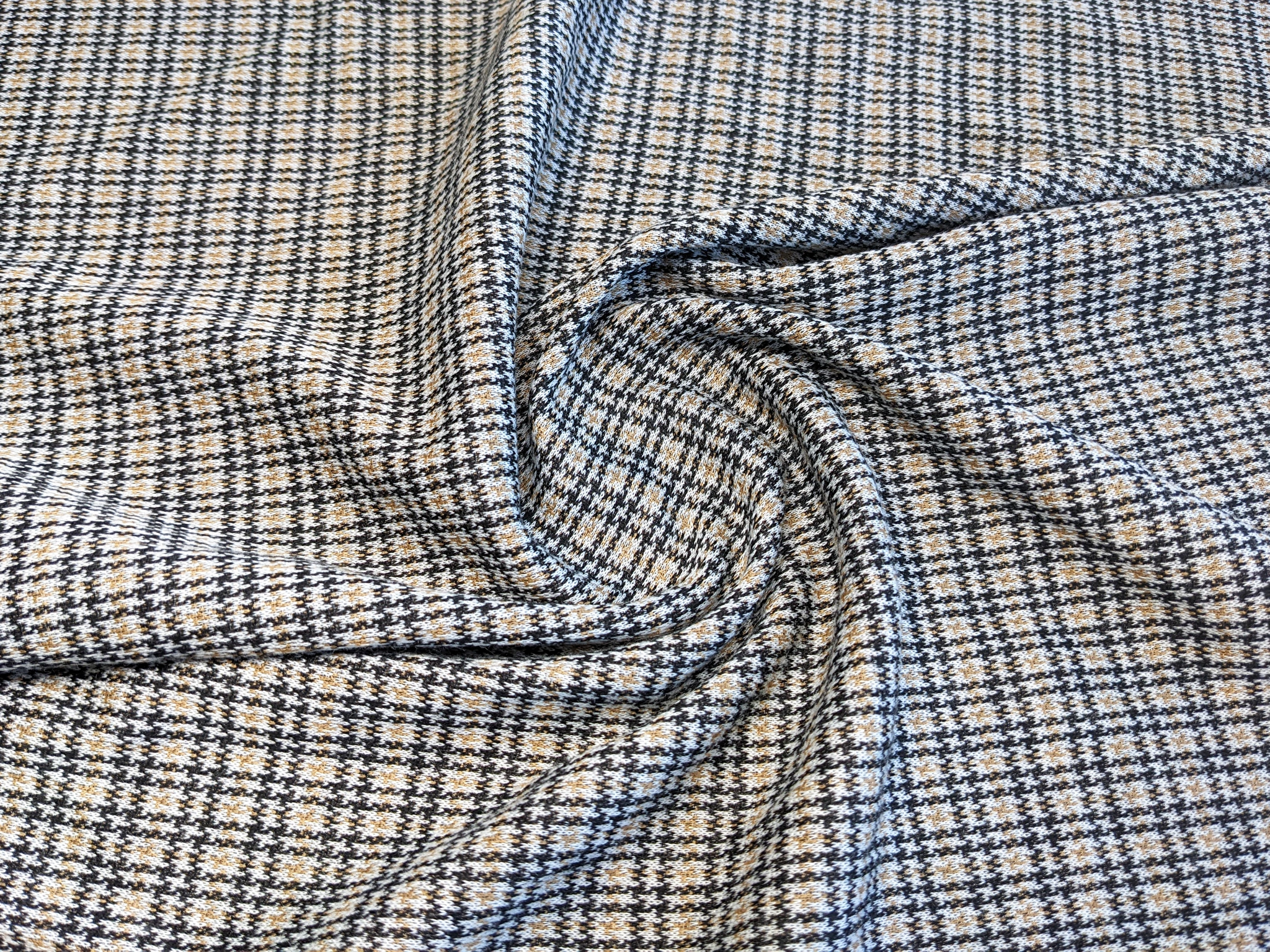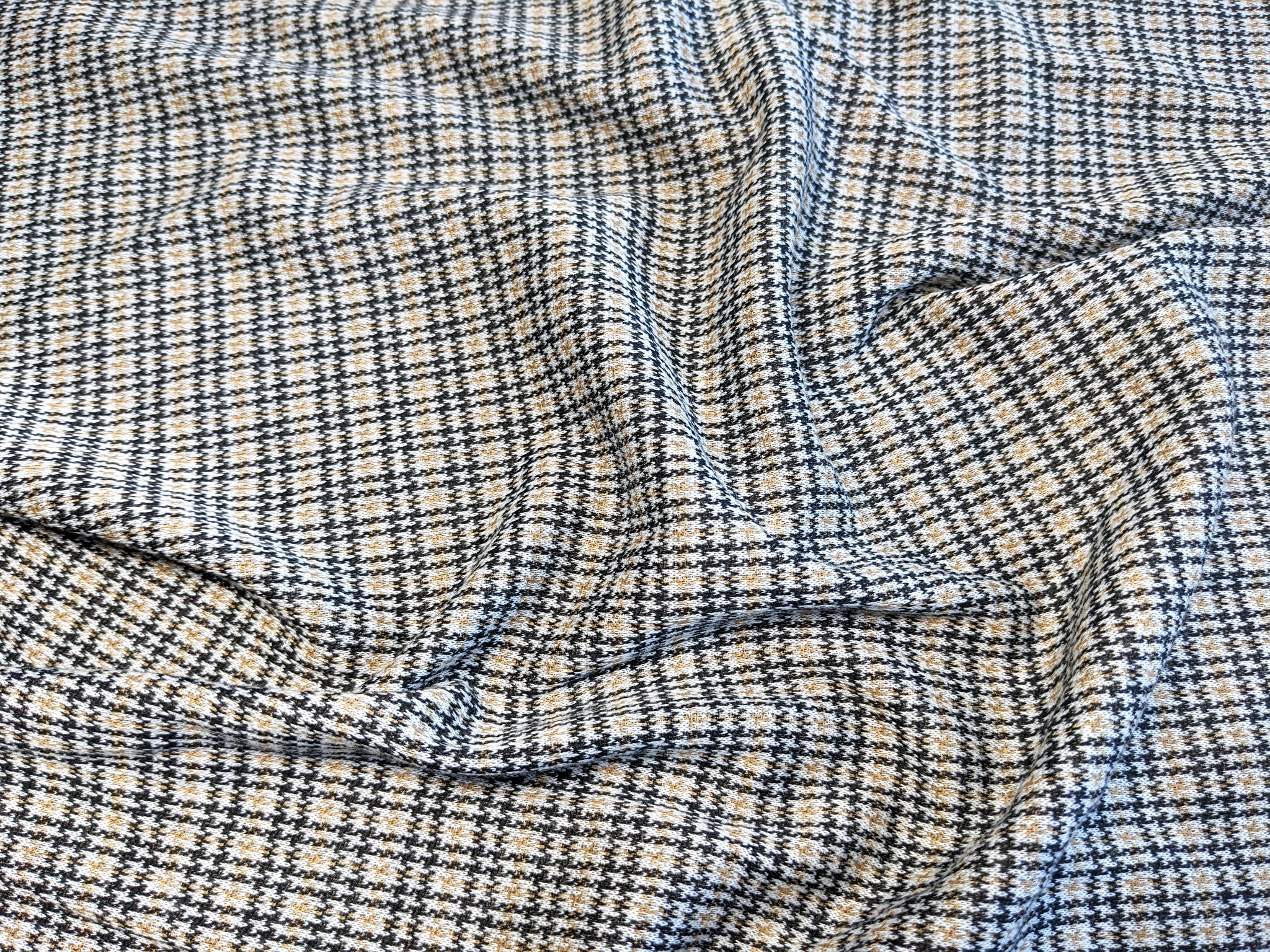 Трикотаж віскозний клітинка, пісочний з темно-сірим