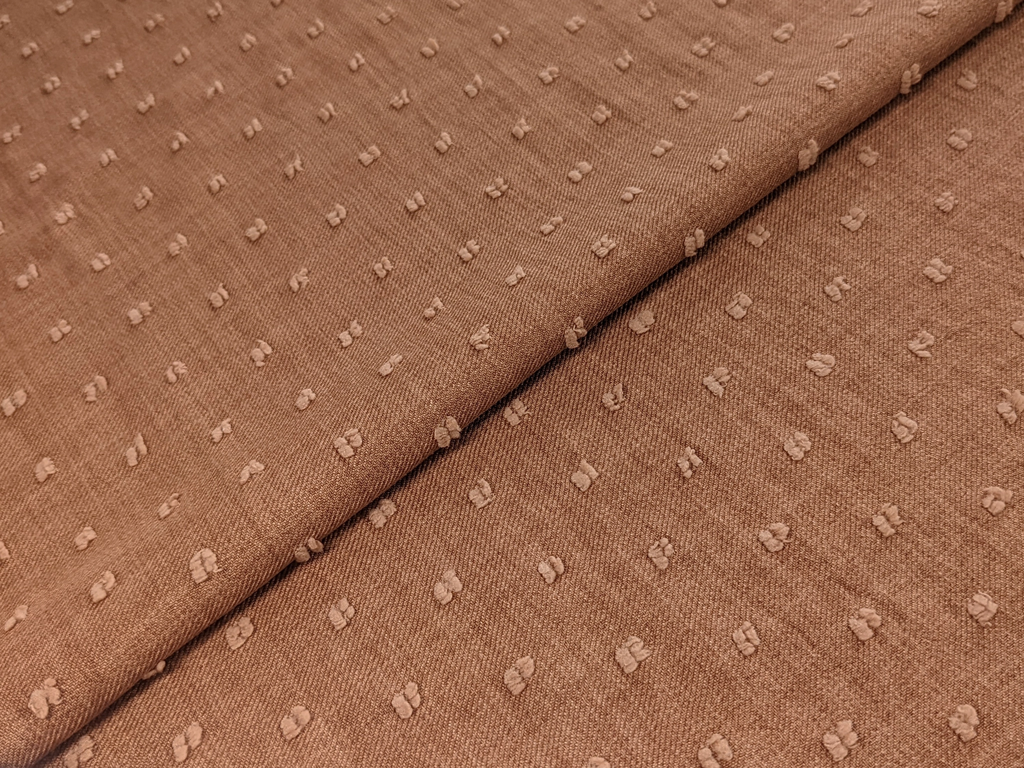 Твіл Камелія – це середньої щільності полотно з діагональною дрібною рубчиковою структурою. Полотно має легкий діагональний стрейч, що вимагає врахувати під час пошиття. Тканина легка, має легкий просвіт на світлі, не примхлива у догляді, практично не мнеться, дозволяє шити практичні та зручні в носінні вироби.
