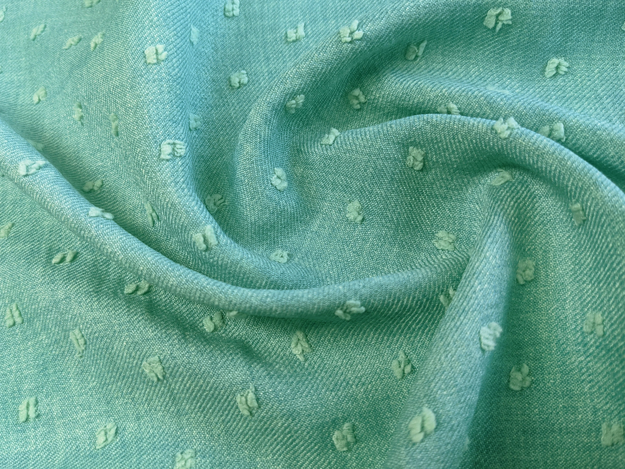 Твіл Камелія – це середньої щільності полотно з діагональною дрібною рубчиковою структурою. Полотно має легкий діагональний стрейч, що вимагає врахувати під час пошиття. Тканина легка, має легкий просвіт на світлі, не примхлива у догляді, практично не мнеться, дозволяє шити практичні та зручні в носінні вироби.