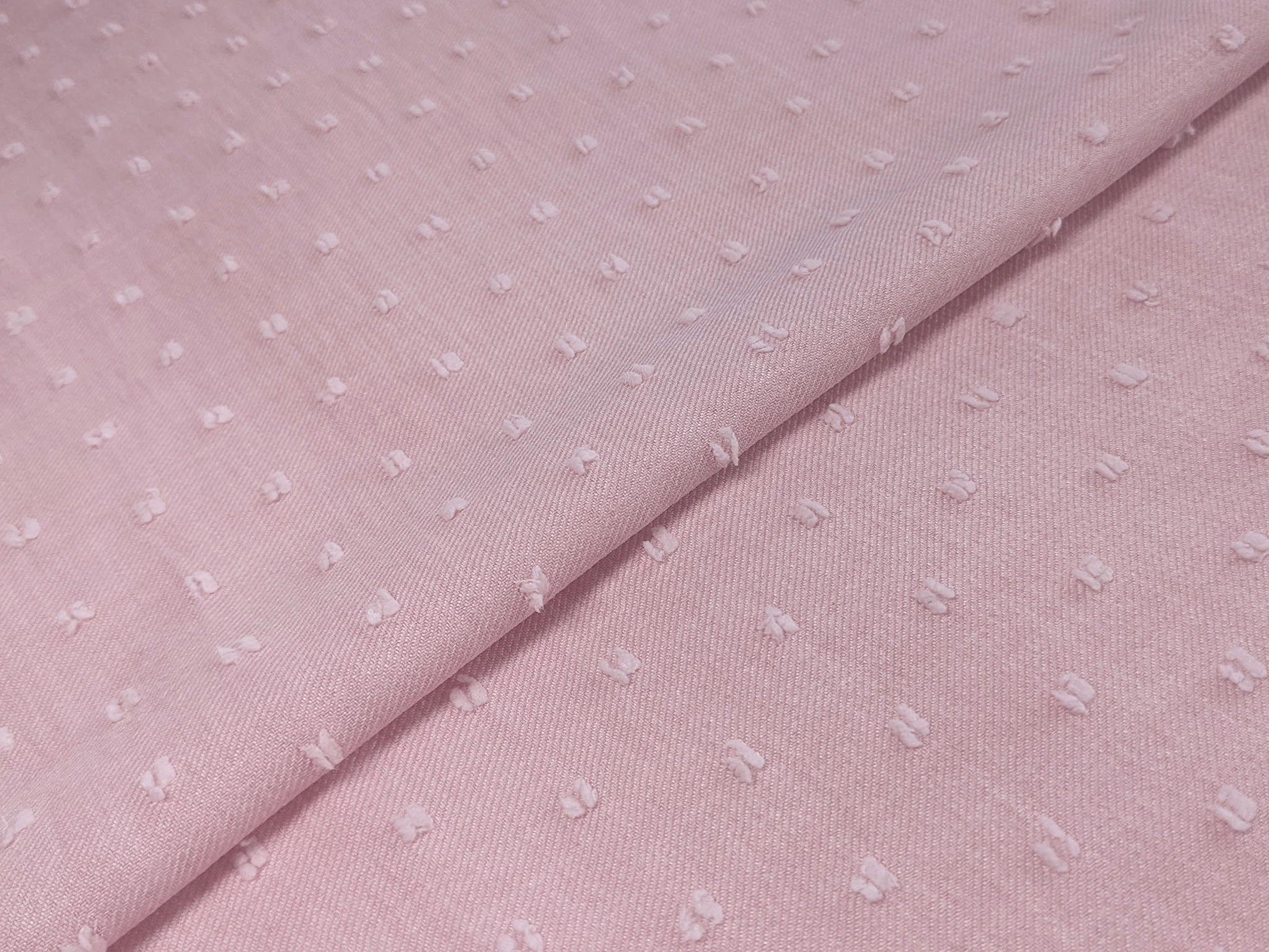 Твіл Камелія – це середньої щільності полотно з діагональною дрібною рубчиковою структурою. Полотно має легкий діагональний стрейч, що вимагає врахувати під час пошиття. Тканина легка, має легкий просвіт на світлі, не примхлива у догляді, практично не мнеться, дозволяє шити практичні та зручні в носінні вироби.