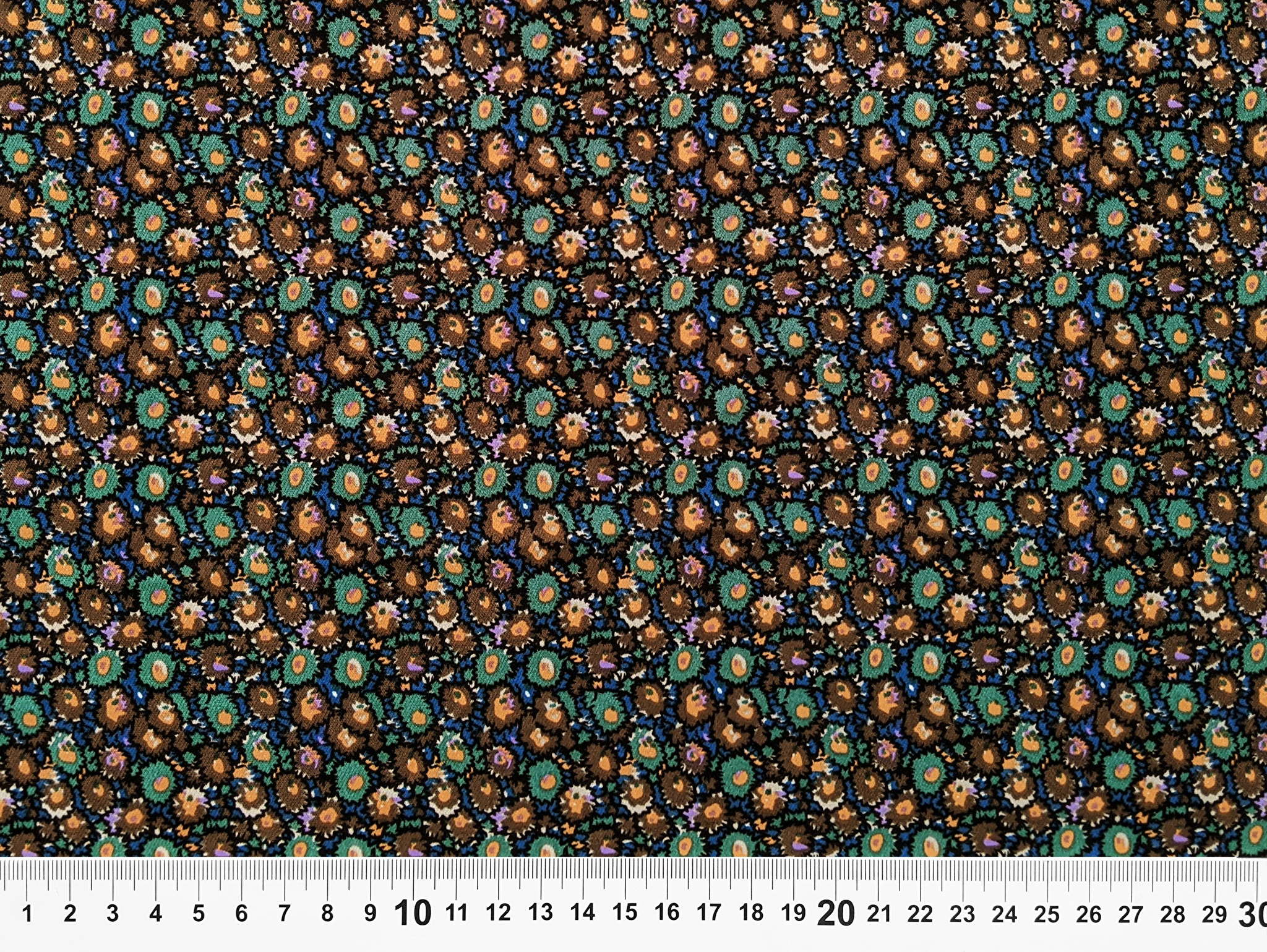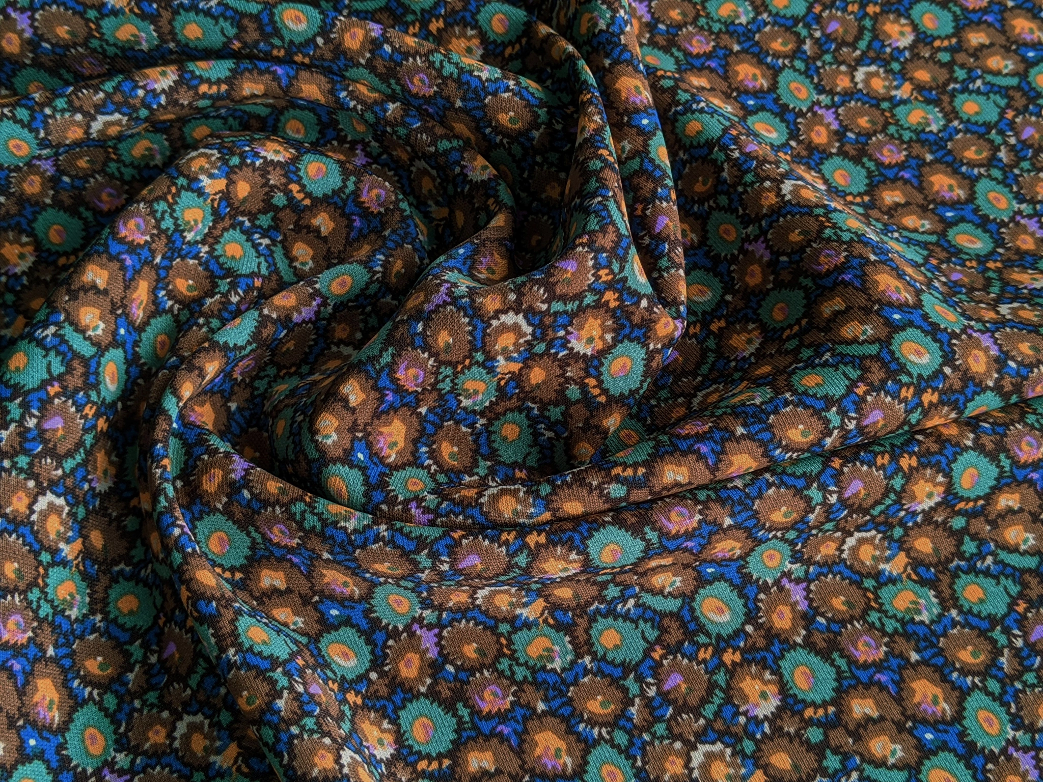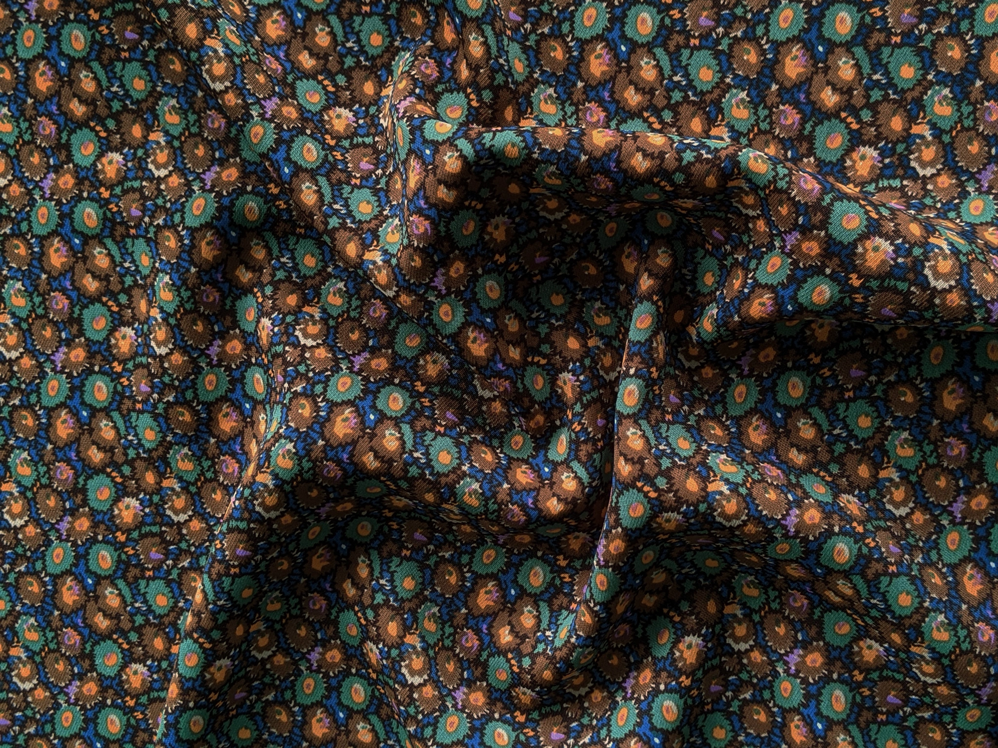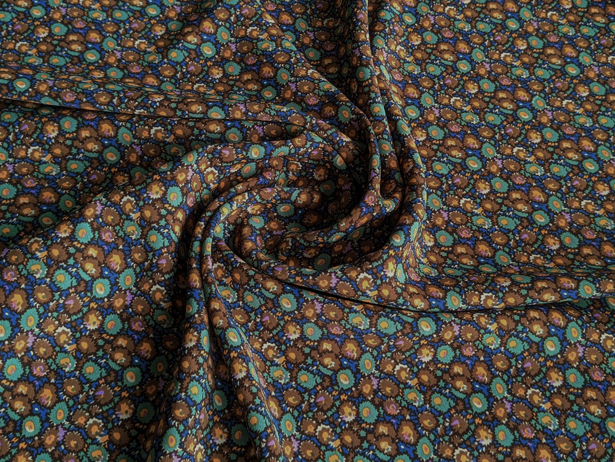 Твіл платтяний дрібні квіточки, коричневий з голубим