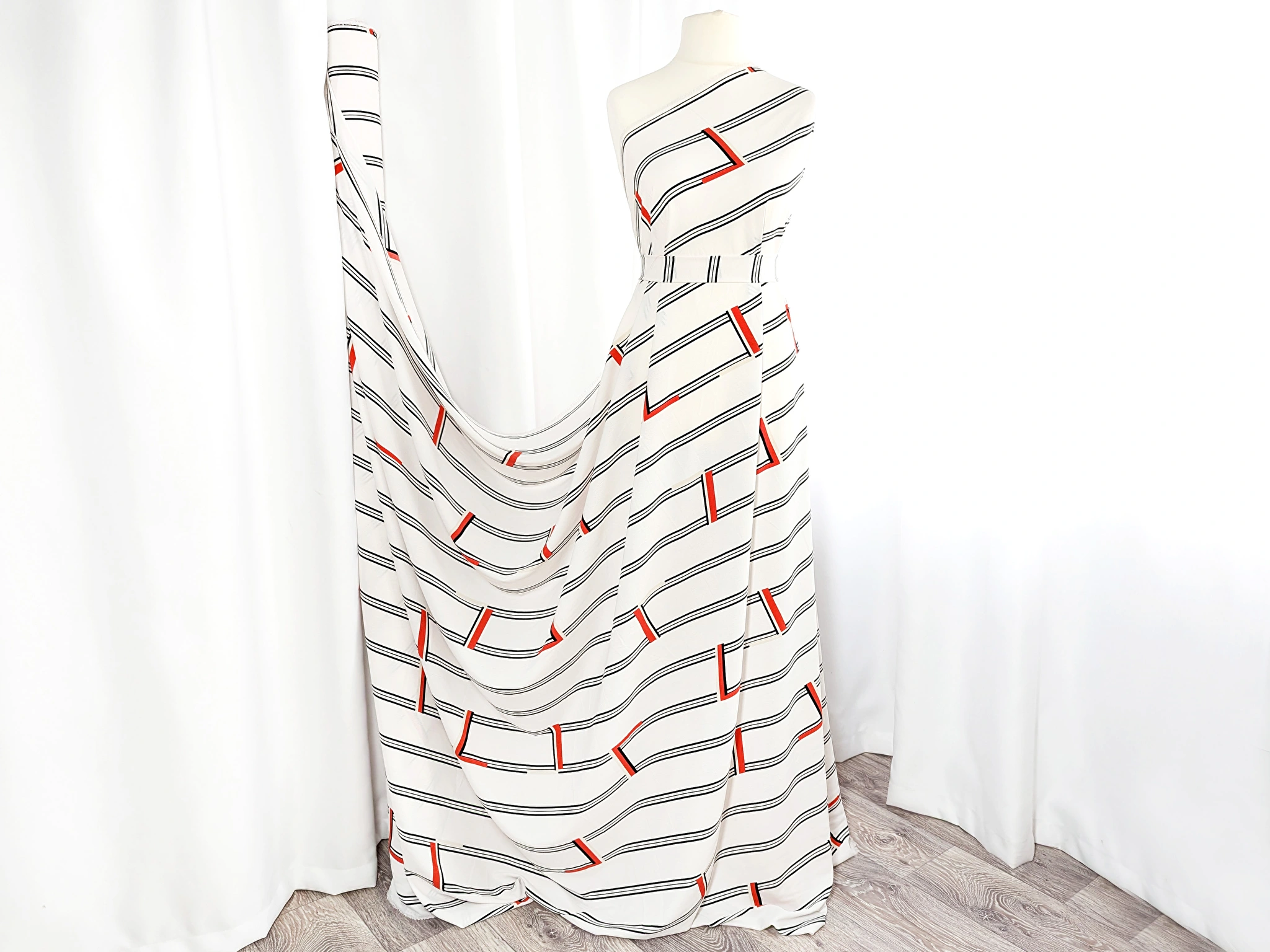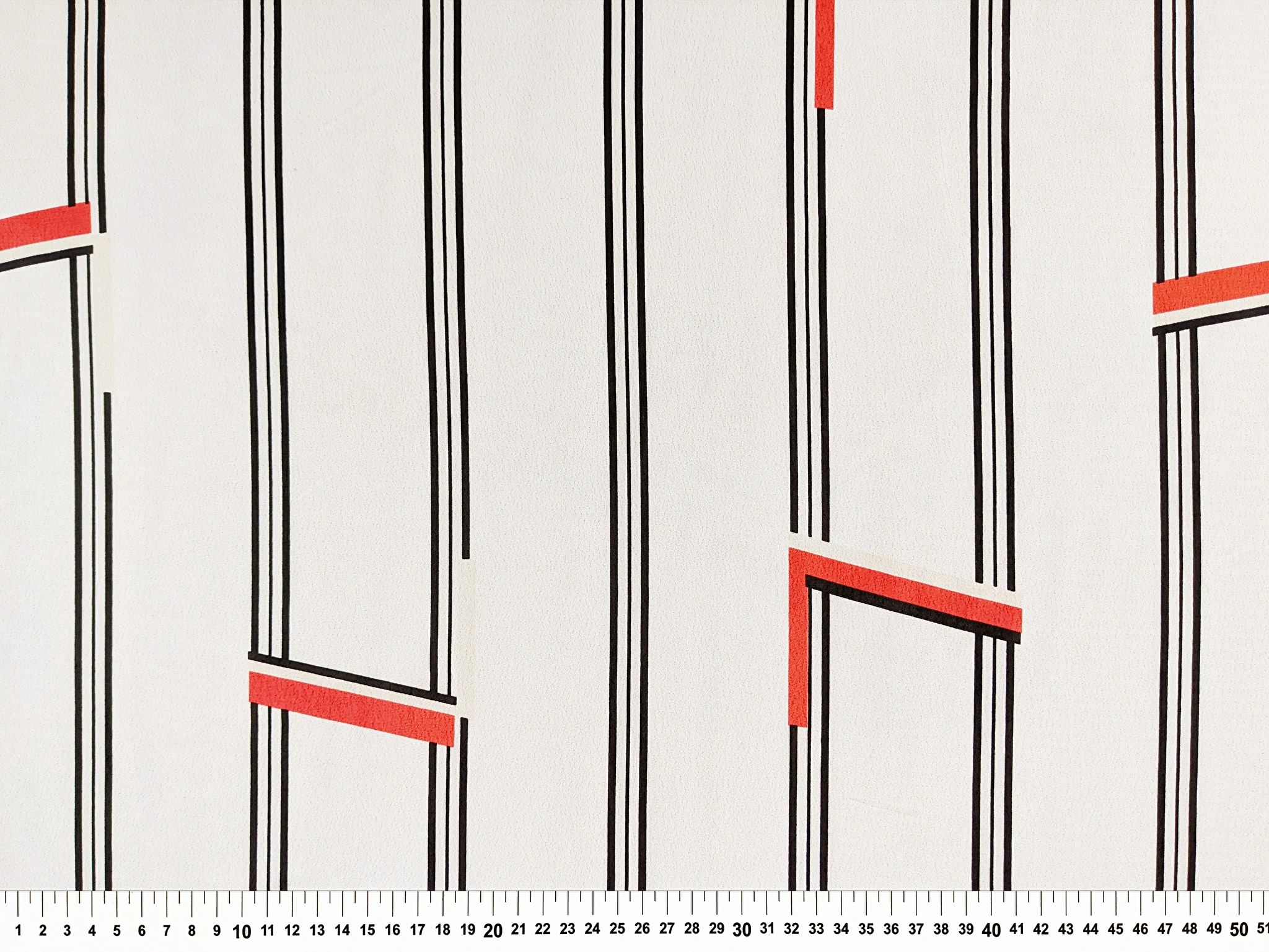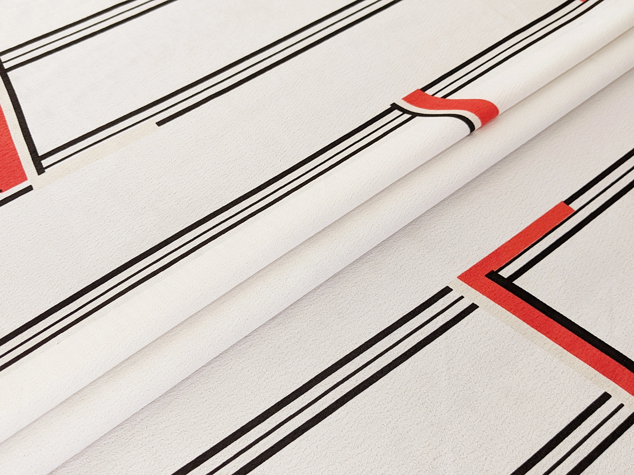 Твіл платтяний смугаста геометрія, червоний на молочному