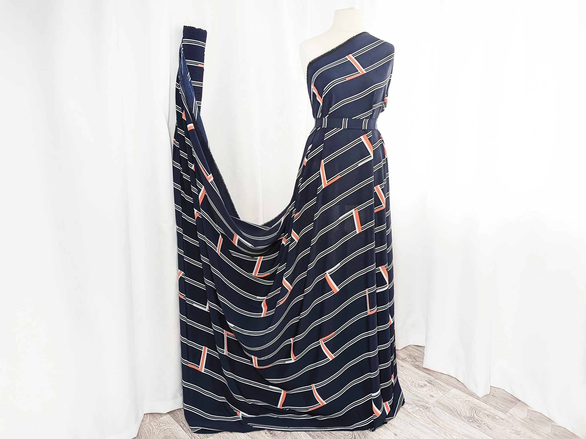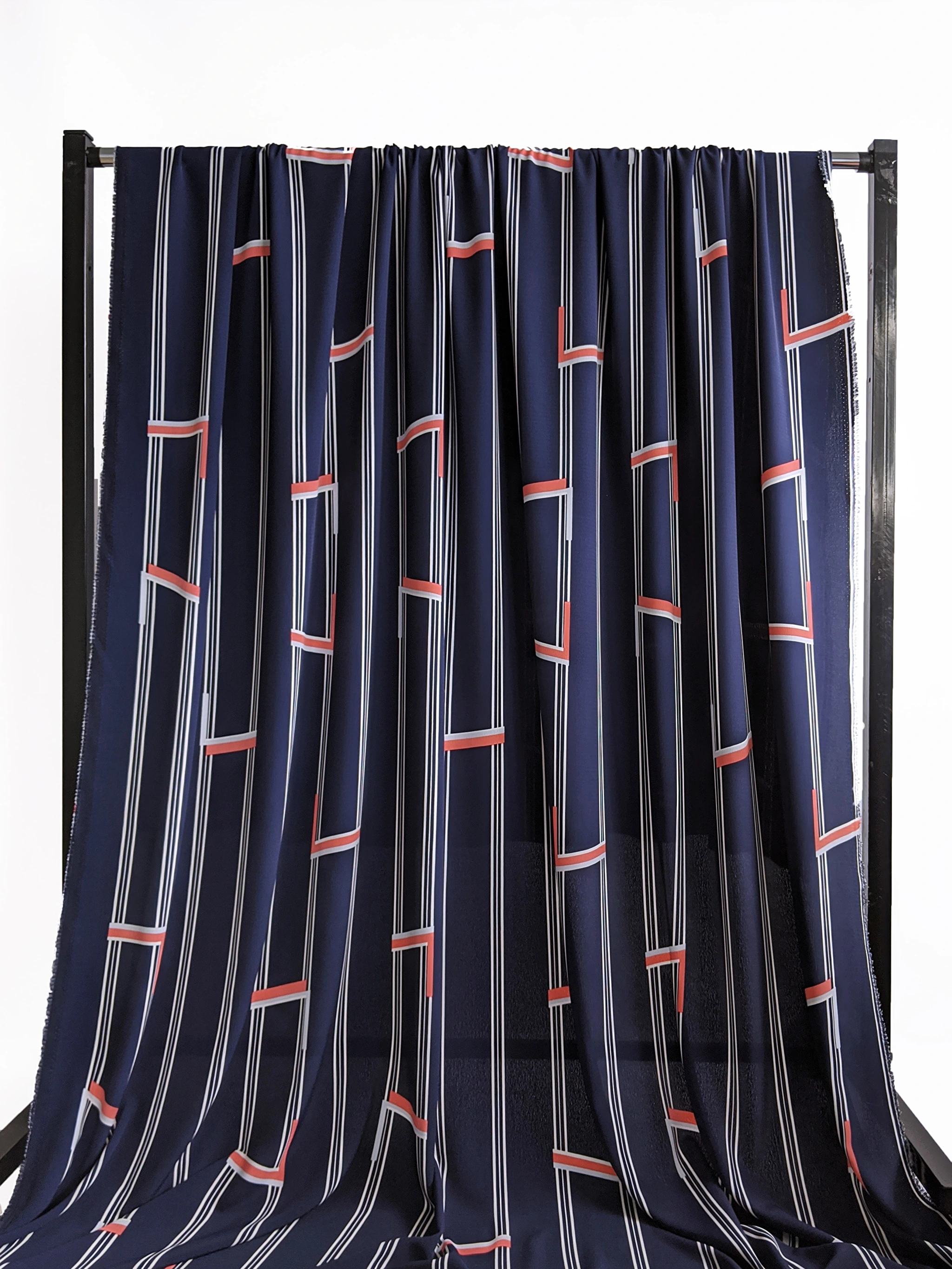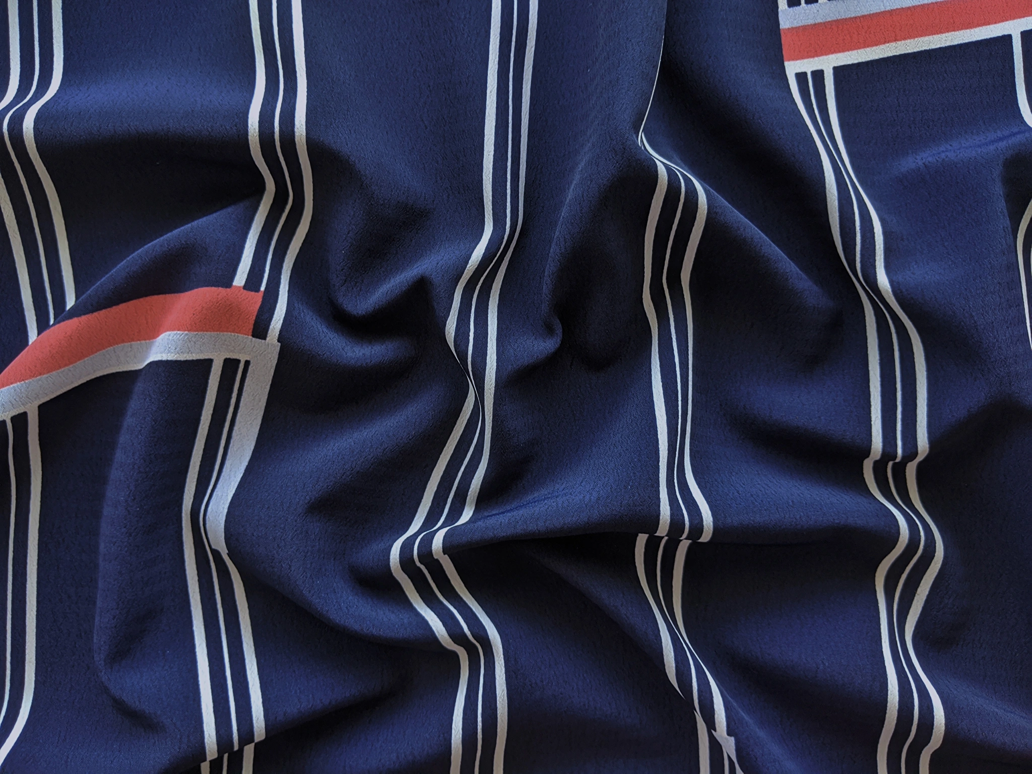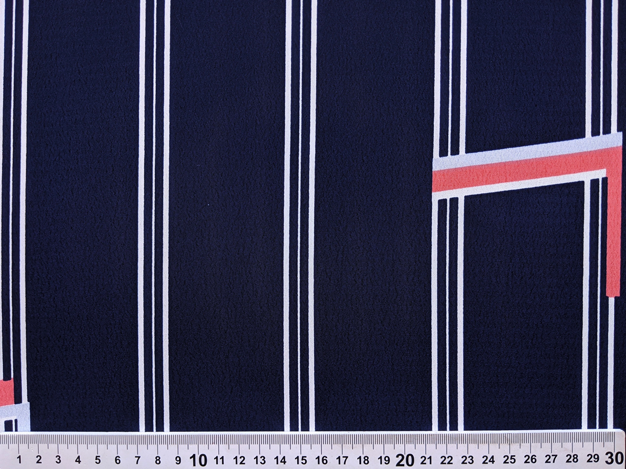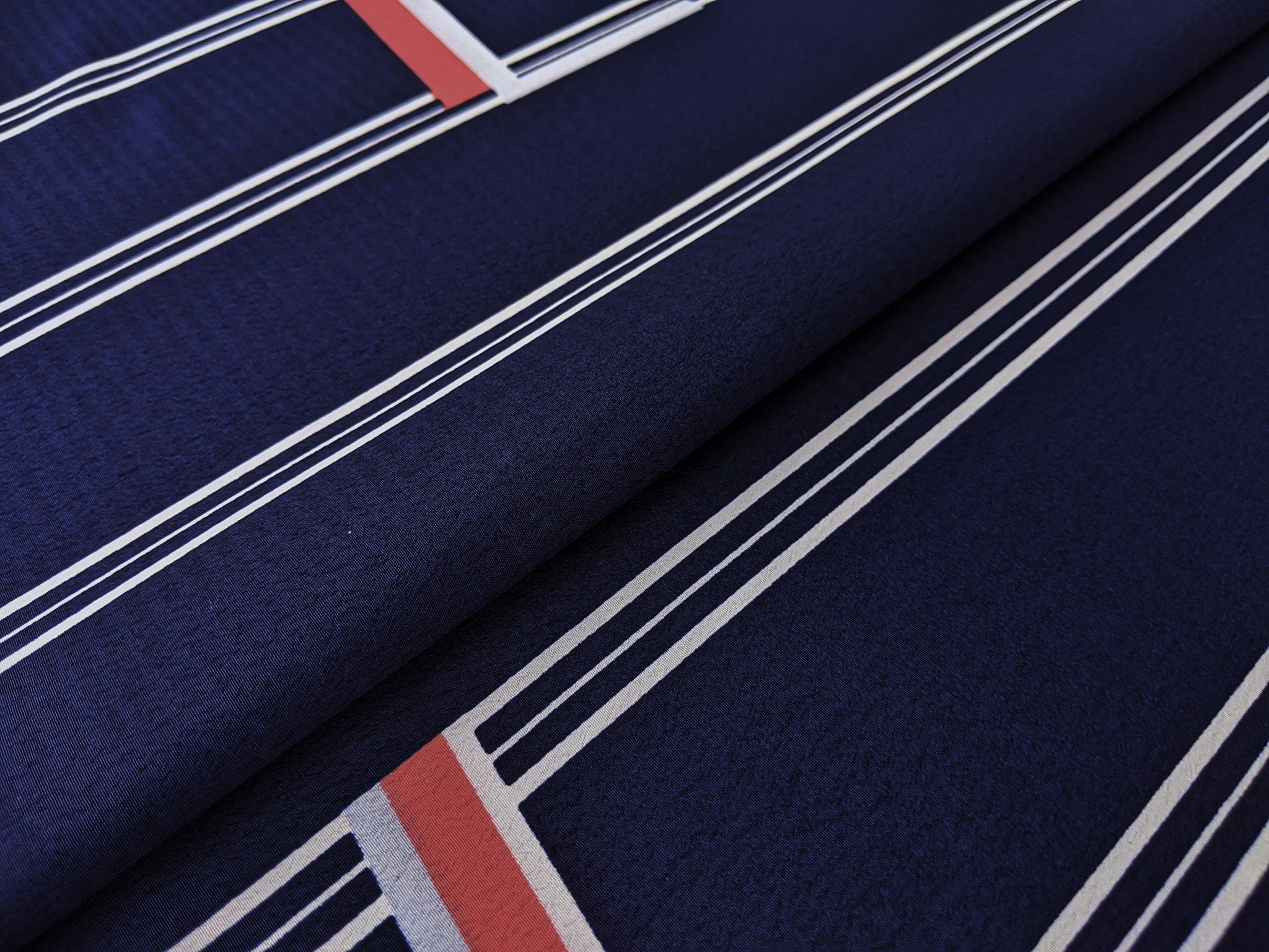 Твіл платтяний смугаста геометрія, червоний на синьому