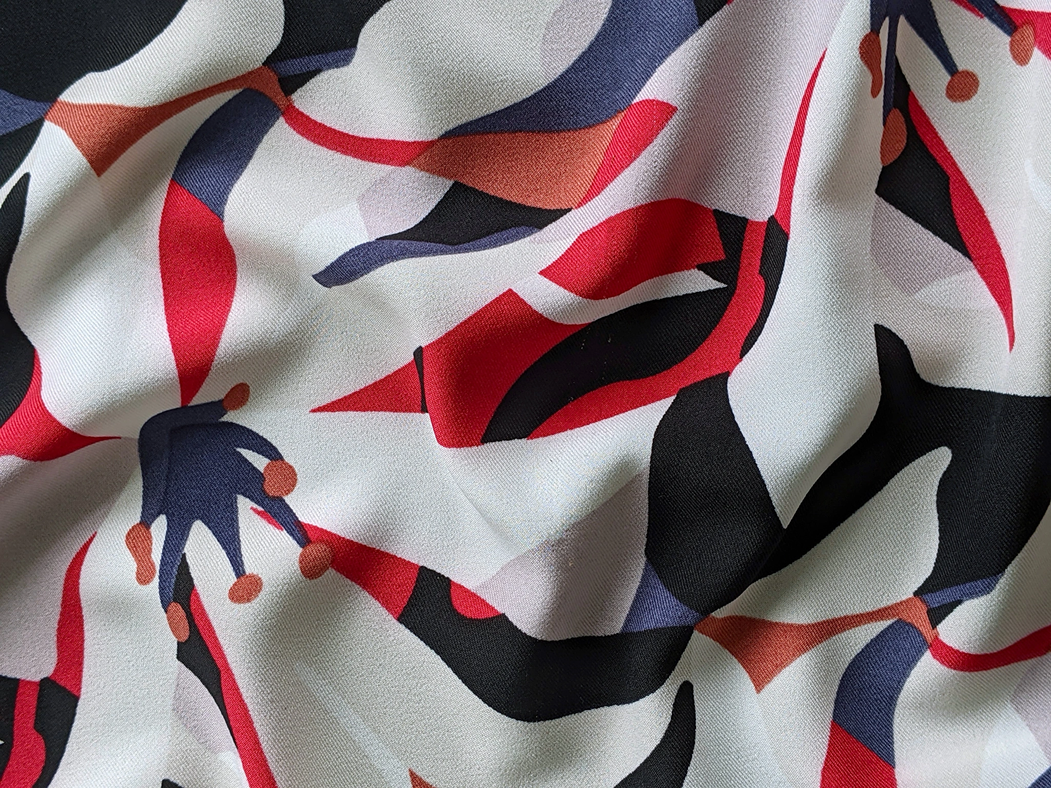 Платтяна твілова тканина з малюнком по всьому полотну. Має діагональне плетіння ниток по лицьовій стороні. Тканина не просвічується, трохи тягнеться по одній стороні, легка, але щільніша за французьку віскозу. Полотно красиво драпірується. На дотик злегка шорстка. Твіл практичний, не обмежує рухів, не мнеться. Використовується для пошиття суконь і спідниць на літній і весняний сезон.
