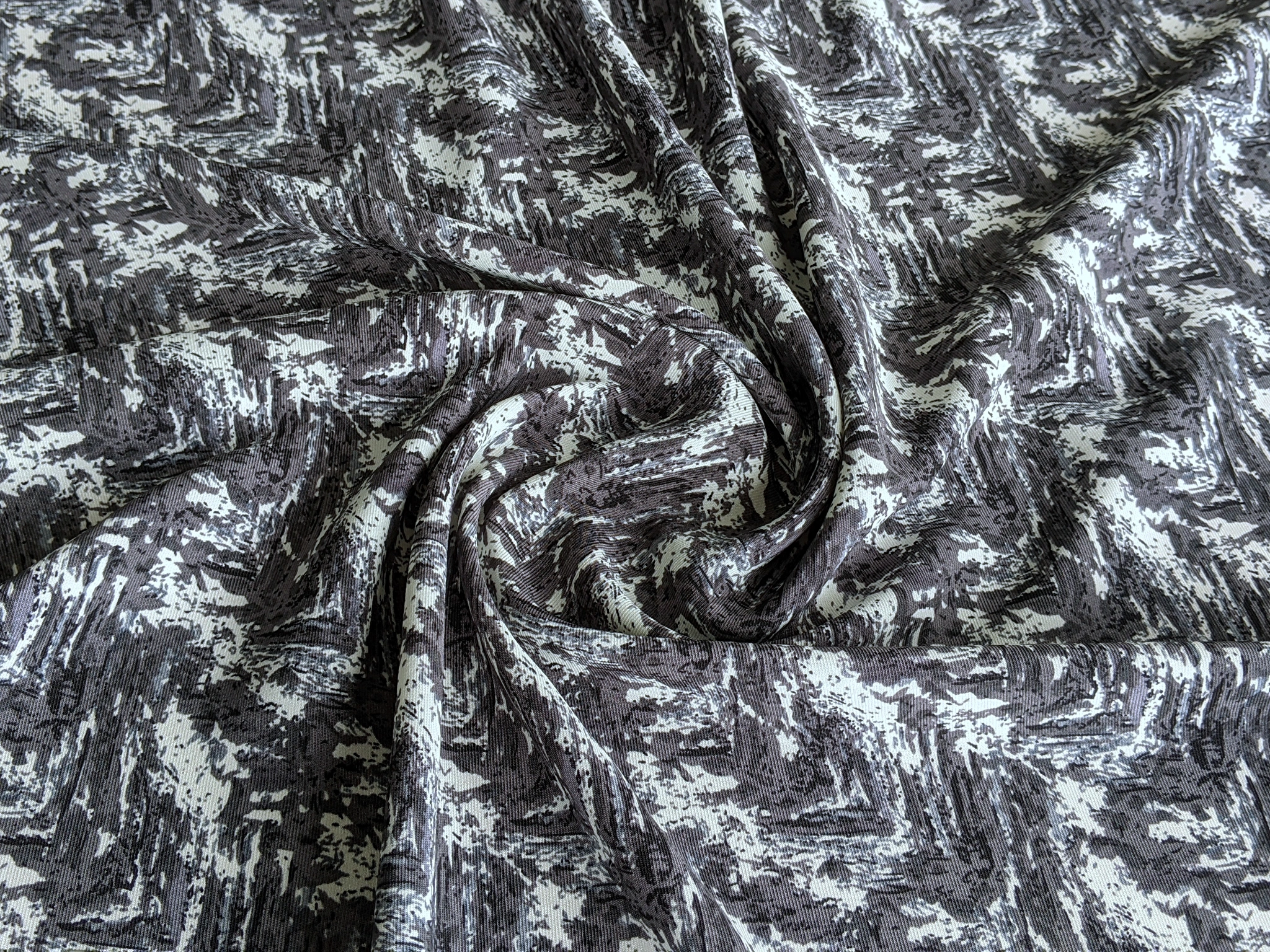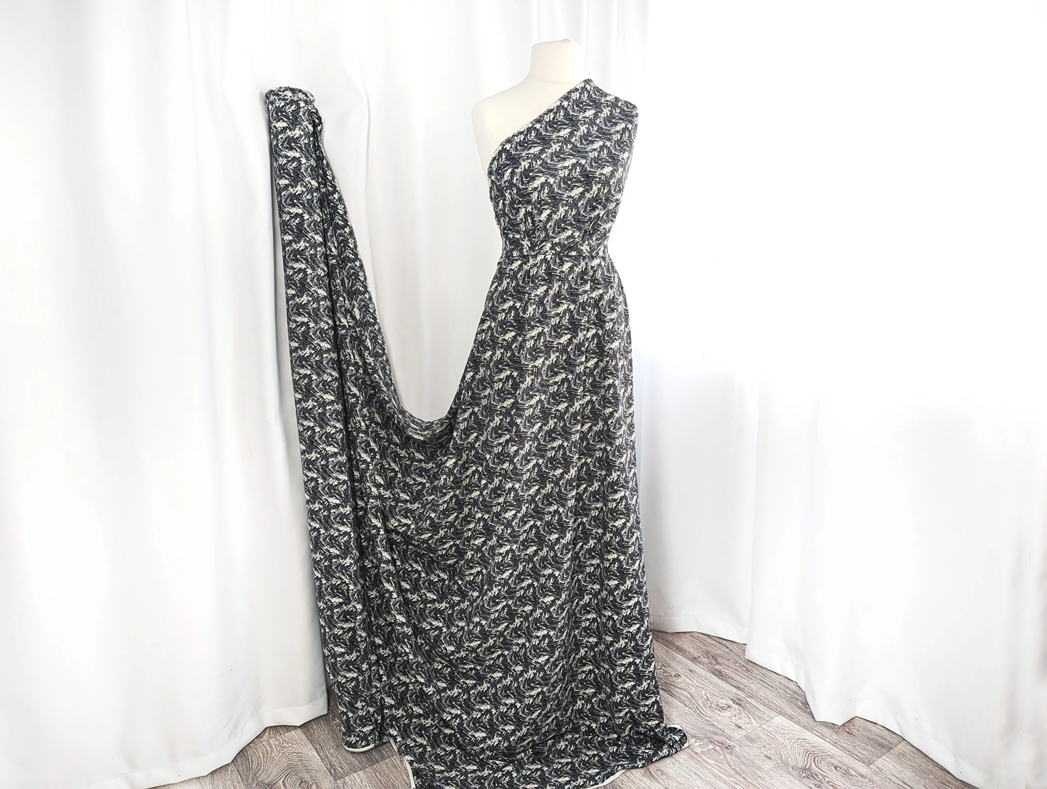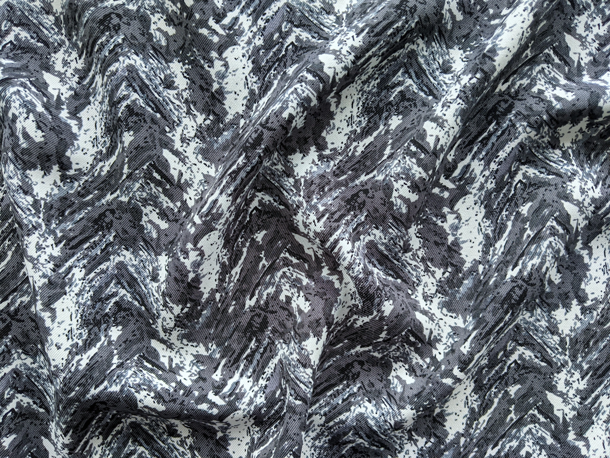 Платтяна твілова тканина з малюнком по всьому полотну. Має діагональне плетіння ниток по лицьовій стороні. Тканина не просвічується, трохи тягнеться по одній стороні, легка, але щільніша за французьку віскозу. Полотно красиво драпірується. На дотик злегка шорстка. Твіл практичний, не обмежує рухів, не мнеться. Використовується для пошиття суконь і спідниць на літній і весняний сезон.