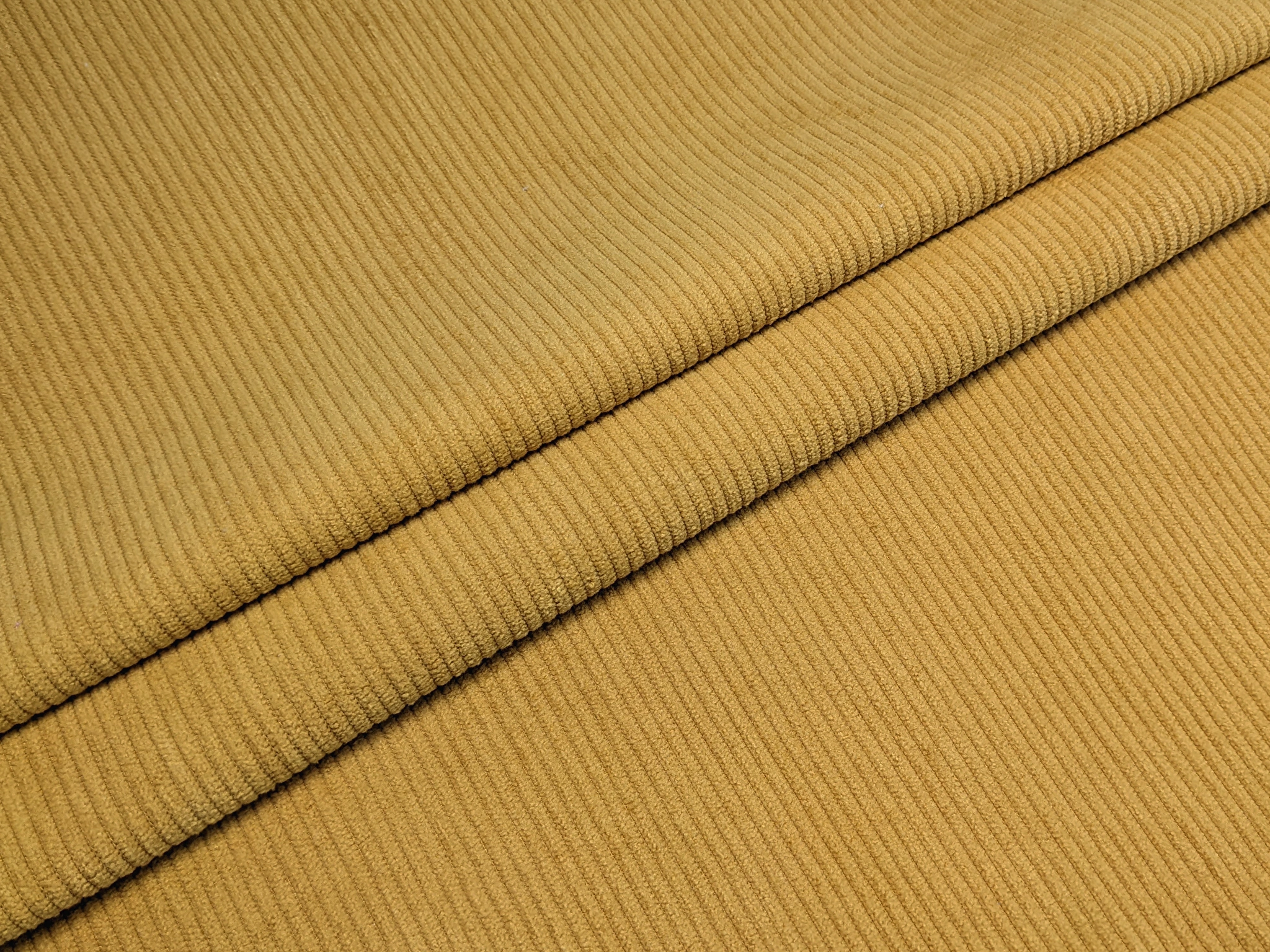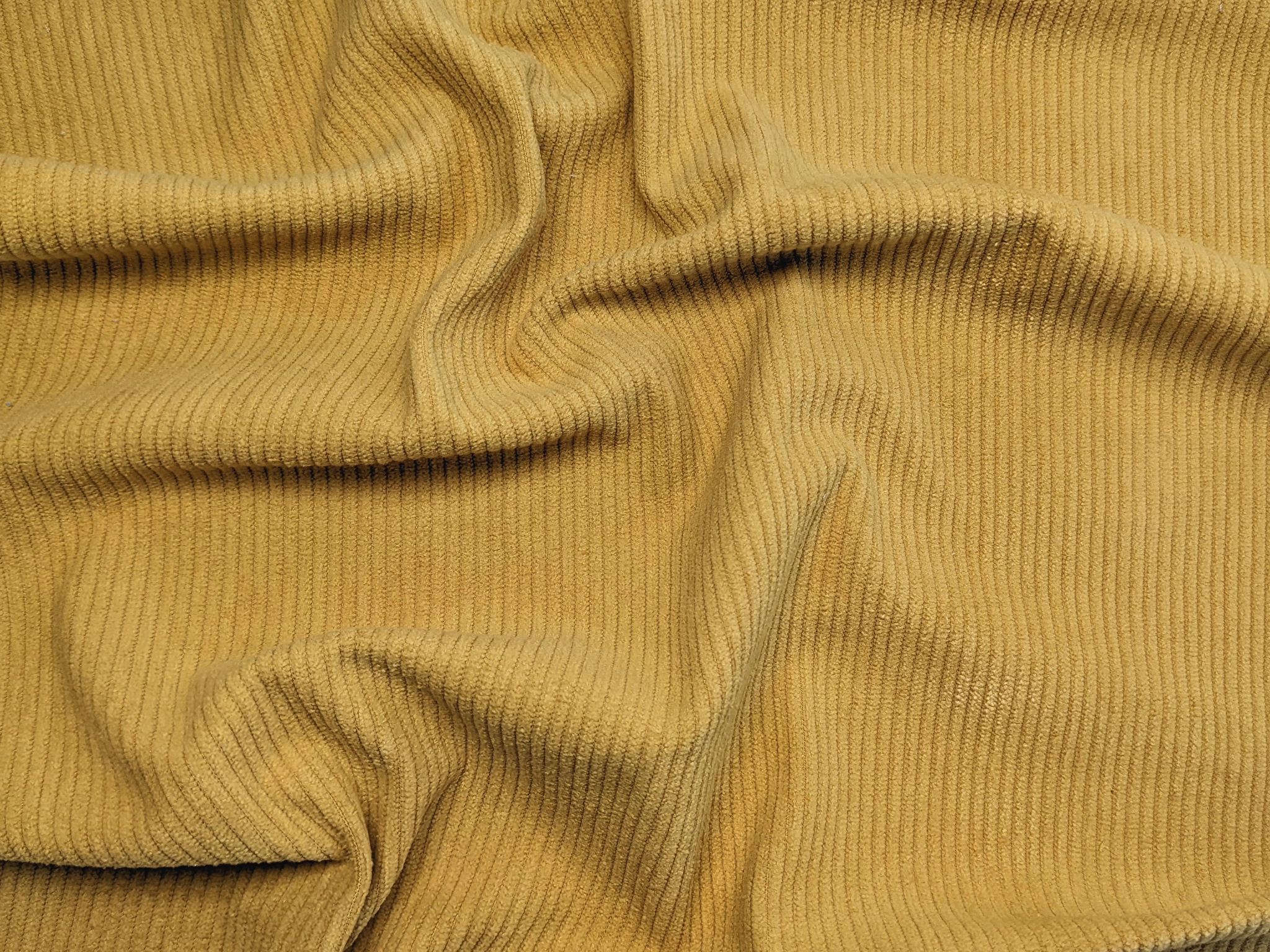 Вельвет стрейч - м'який, приємний на дотик, комфортний матеріал. Тканина середньої щільності, лицьова сторона фактурна, має бархатисту рубчикову структуру. Рубчик, розміром 2мм, розташований по всій довжині рулону. Вельвет еластичний по ширині полотна, не мнеться, добре драпірується, набуває м'якої форми.