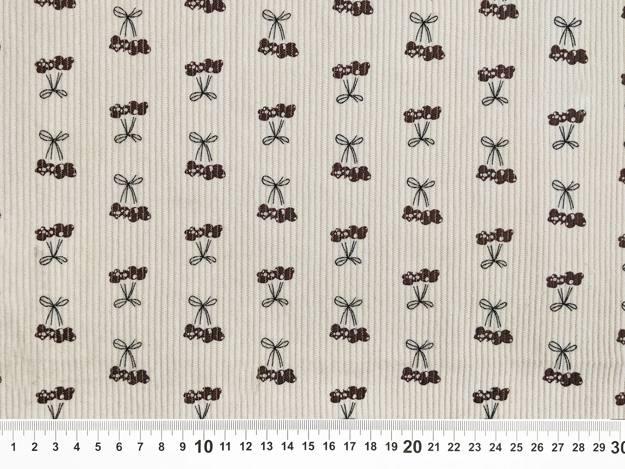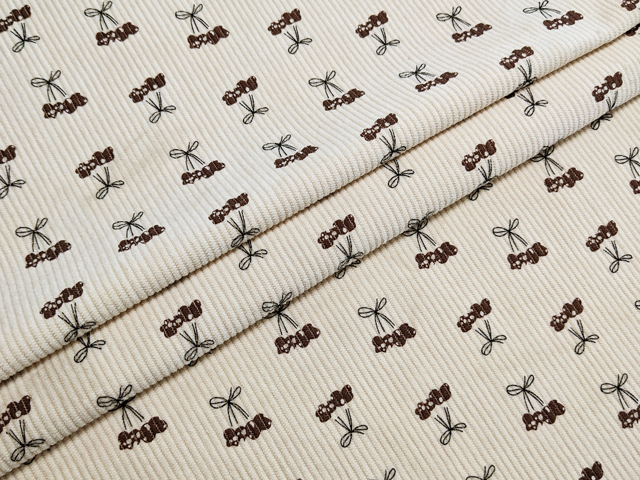 Вельвет стрейч вишеньки, світлий бежевий (відріз 0,25 м) (в2, 2304114D, д3 цв1)