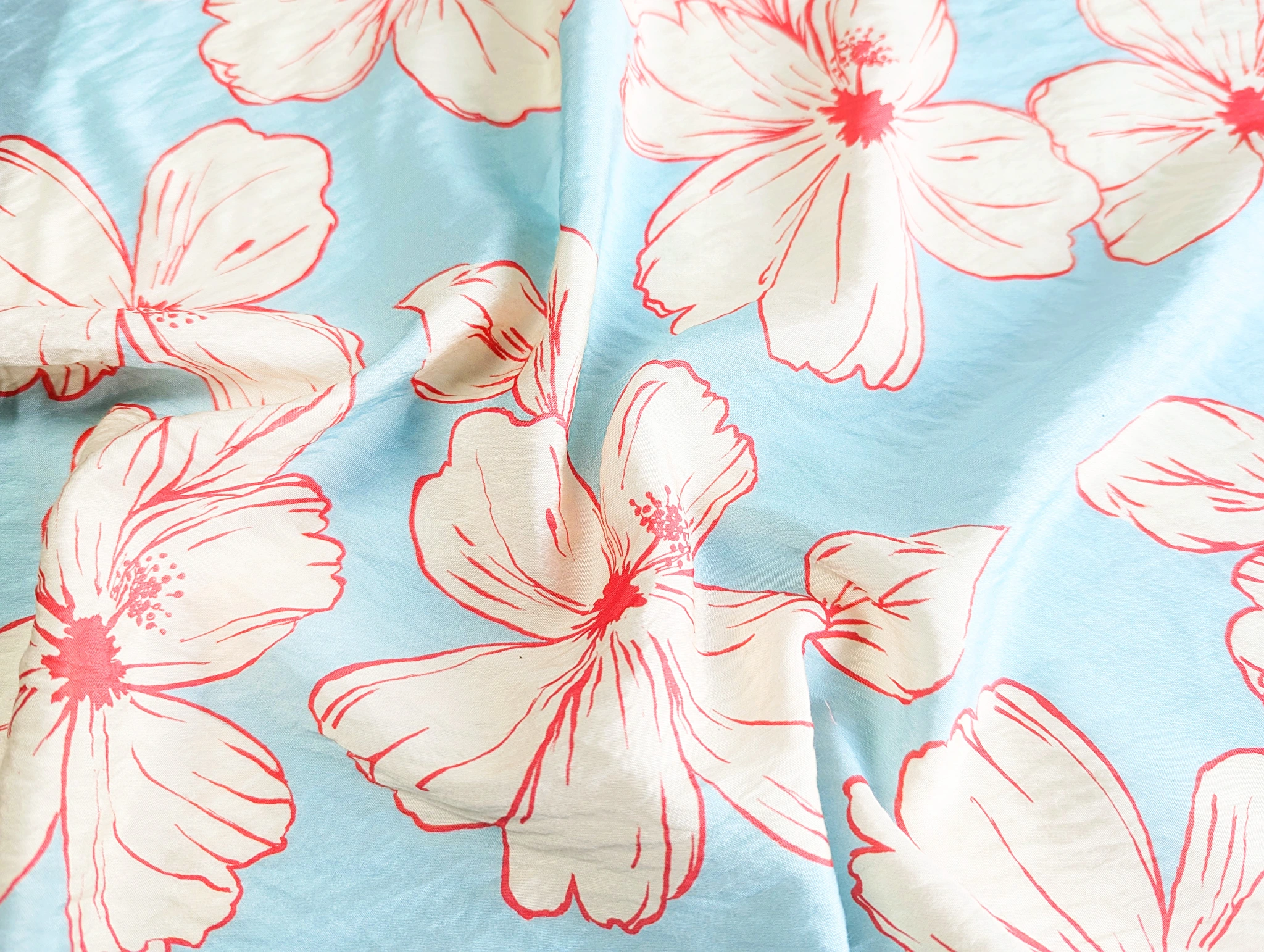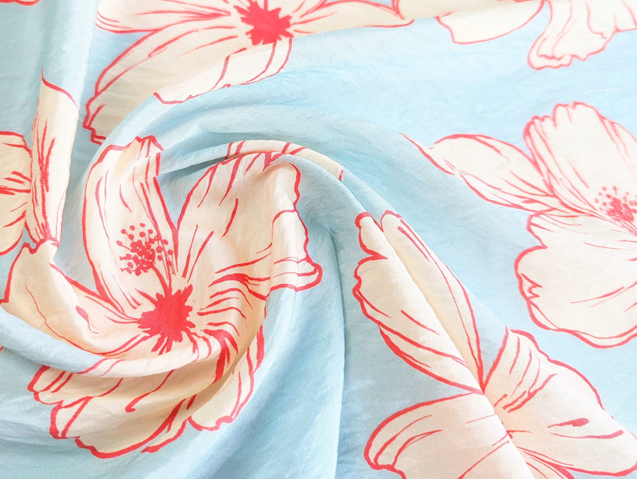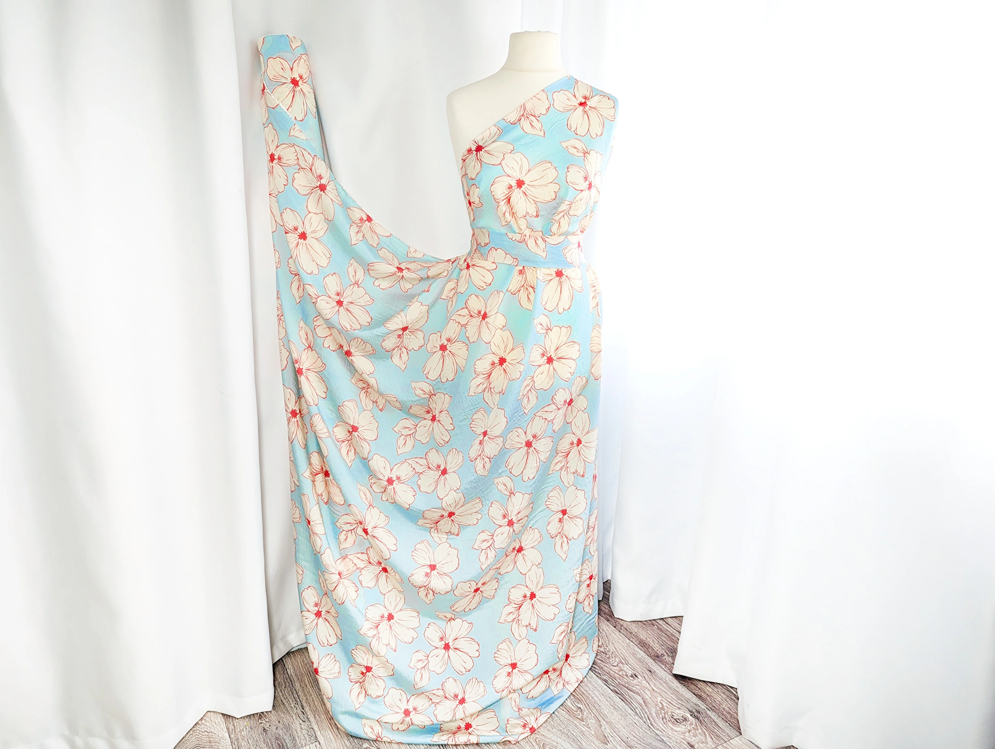 Віскоза шовк Бохо - тонкий, невагомий матеріал з ледь помітною жатою текстурою. Тканина тактильно приємна, легка і повітряна, поєднує в собі ніжність шовковистої структури і вишуканість штапеля. При драпіруванні лягає в м'які, повітряні волани і складки. Має легкий силуетний просвіт, не тягнеться, завдяки нануральному складу злегка зминається, пропускає повітря, не парить, дає відчуття прохолоди в спекотну погоду.