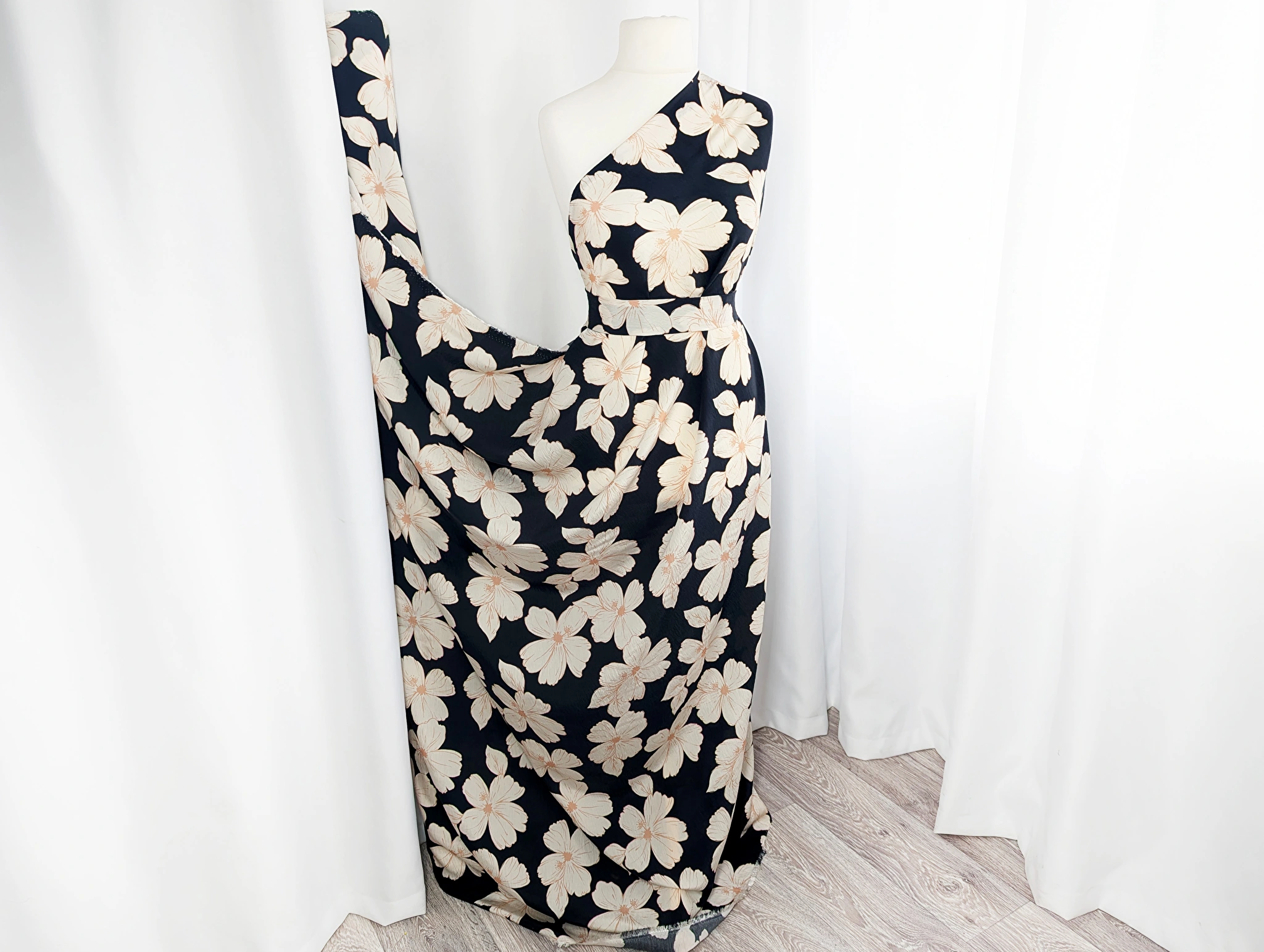 Віскоза шовк Бохо квіткова фантазія, чорний з бежевим