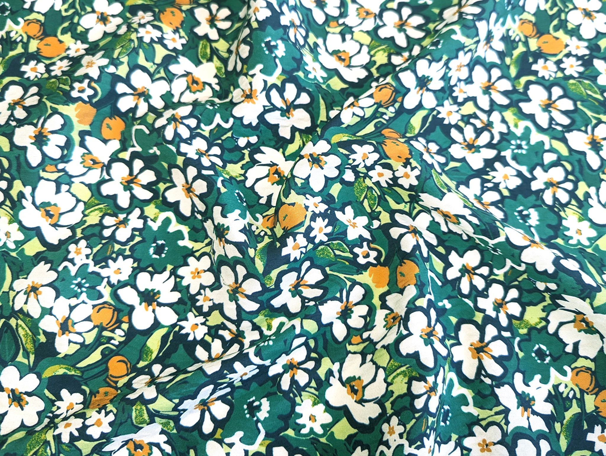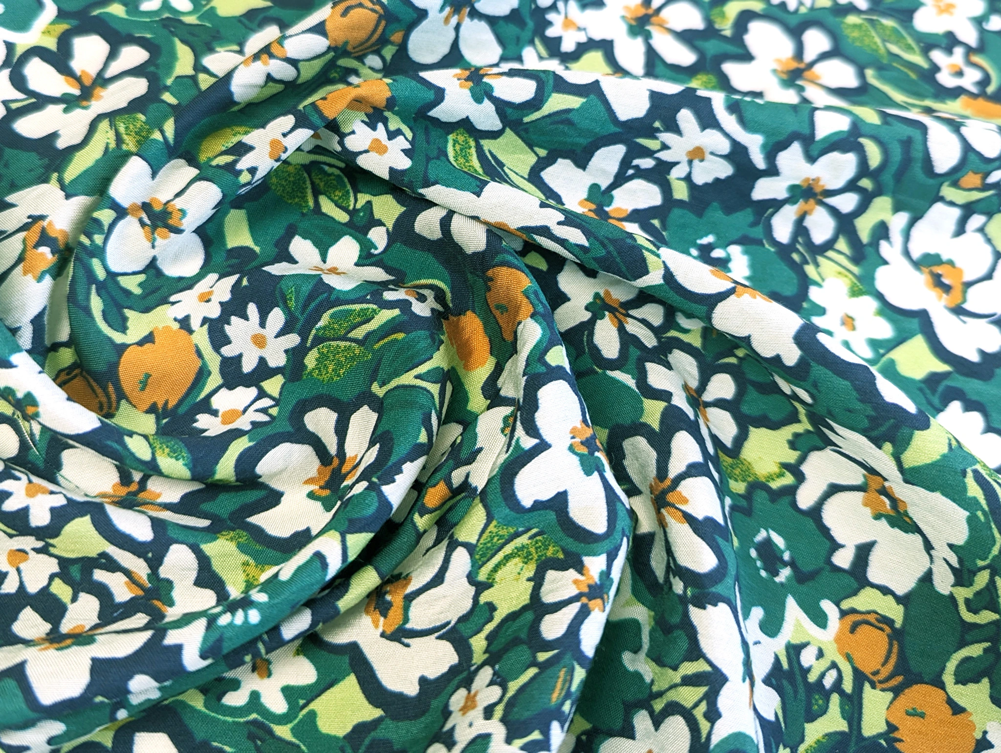 Віскоза шовк Бохо квіткова поляна, бірюзовий зелений