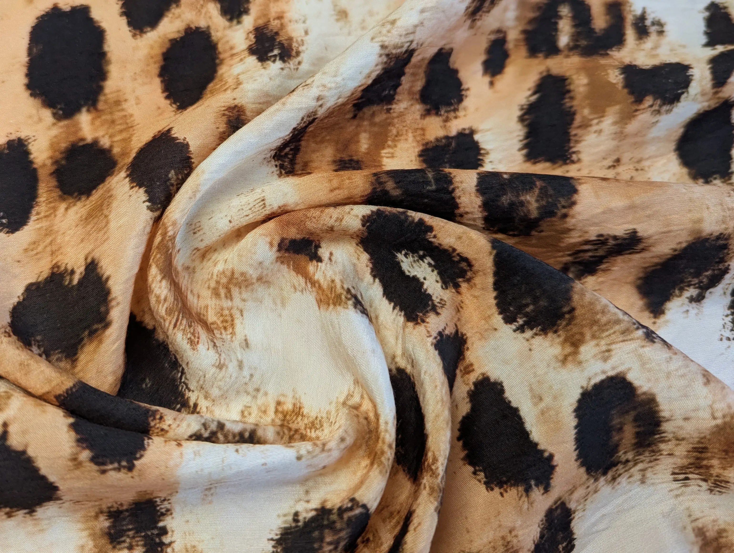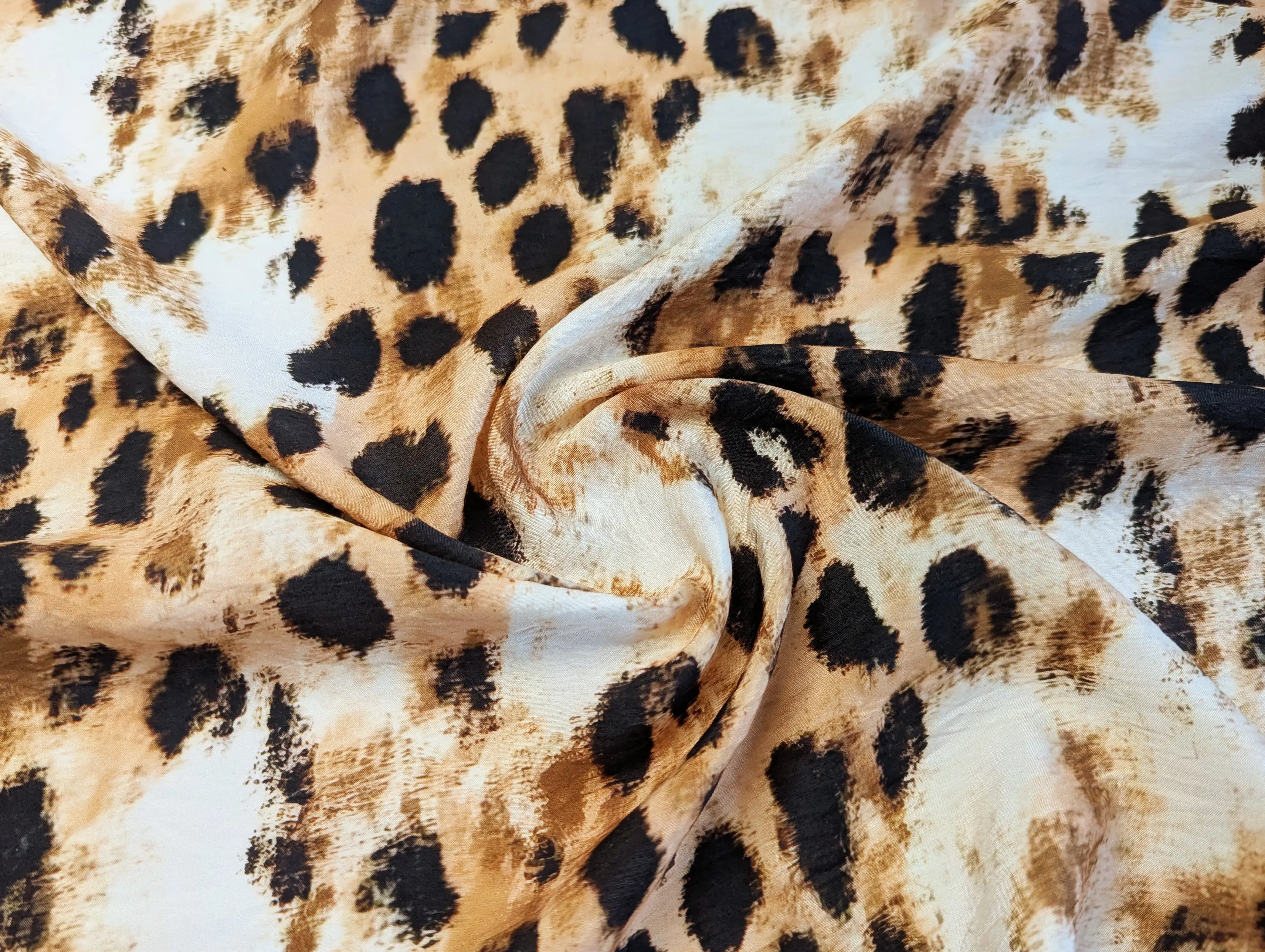 Віскоза шовк Бохо леопард, бежевий з коричневим