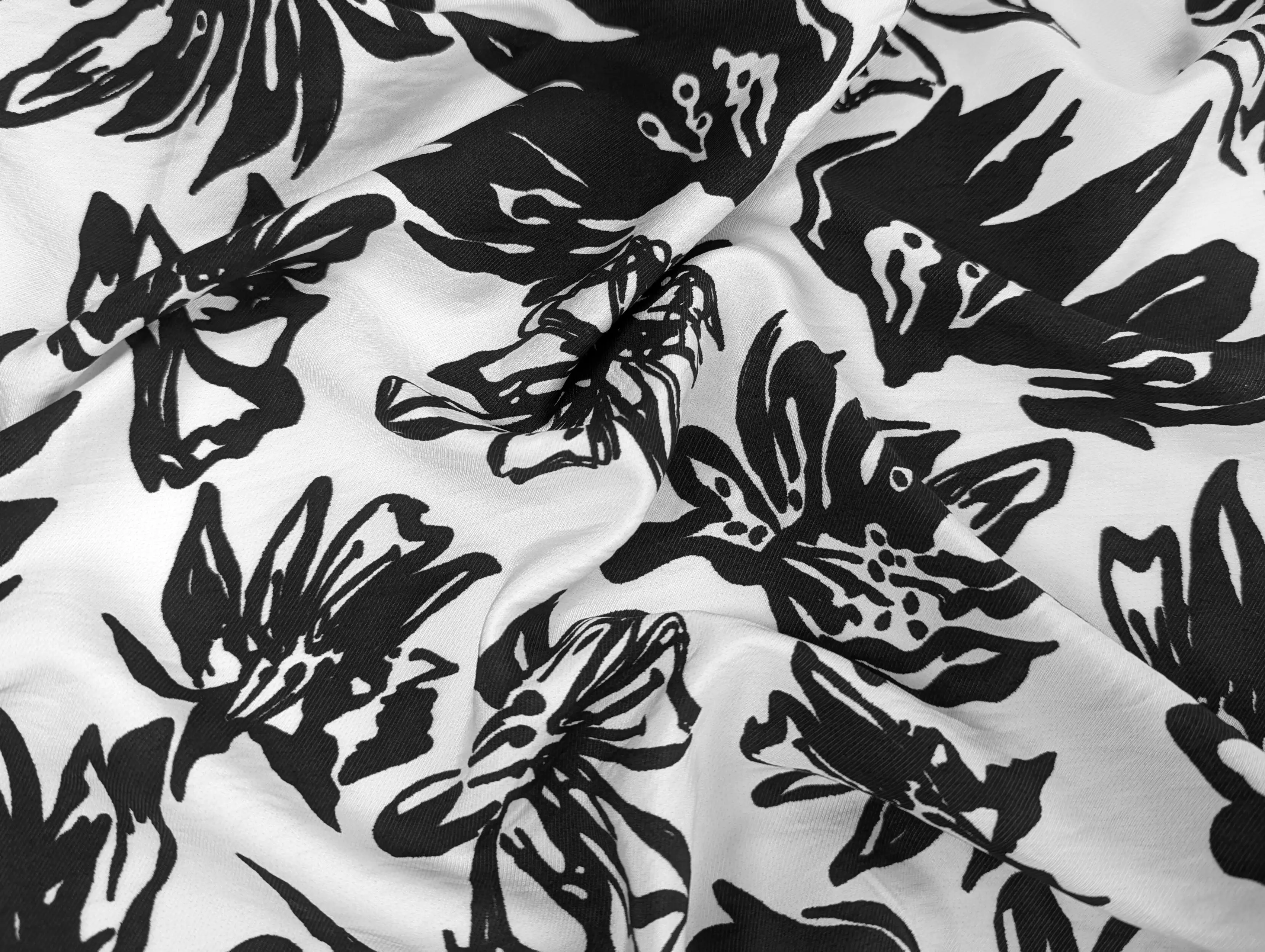 Віскоза шовк Бохо лілії, чорний на молочному