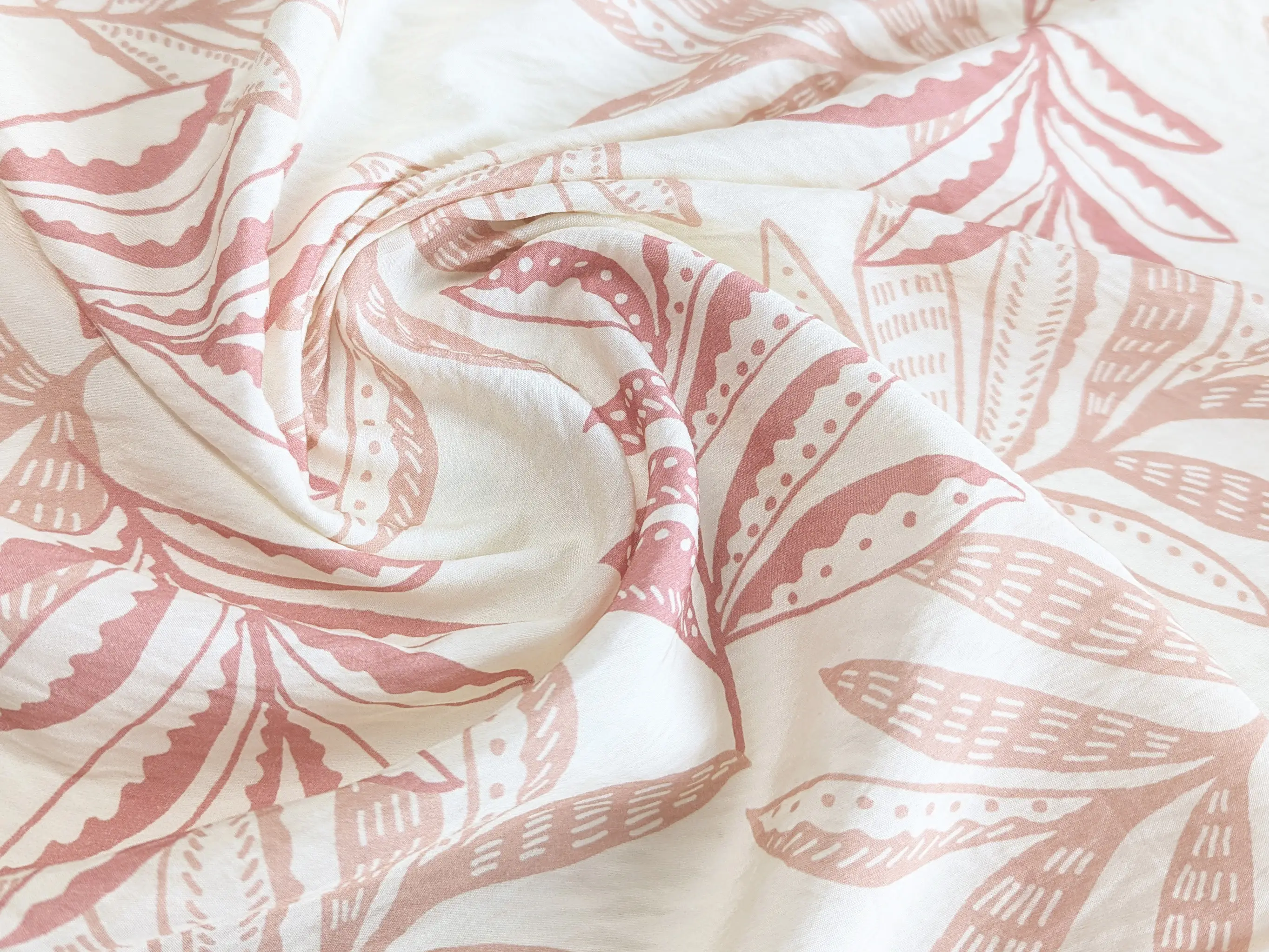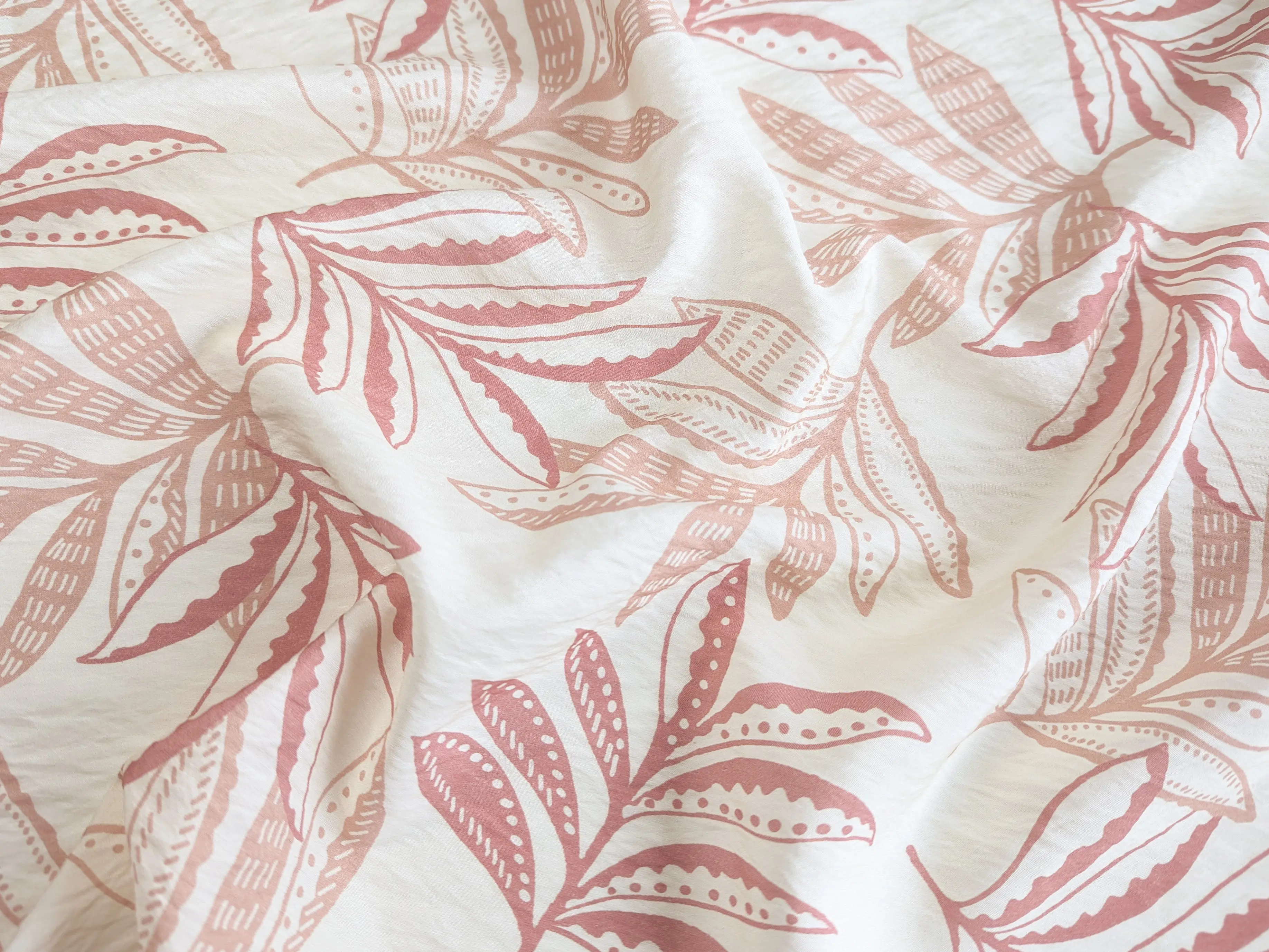 Віскоза шовк Бохо листяна казка, кремовий з амарантовим