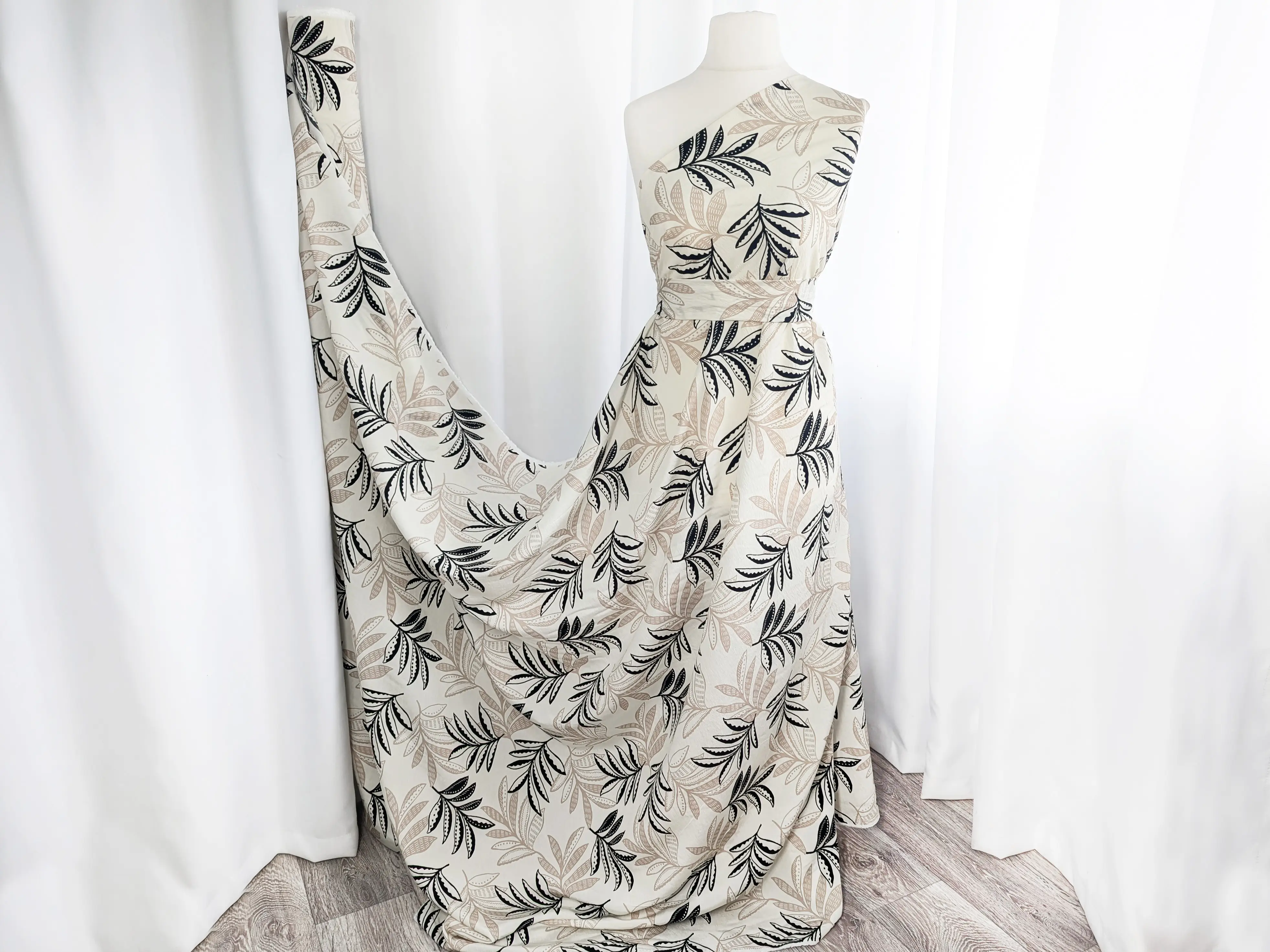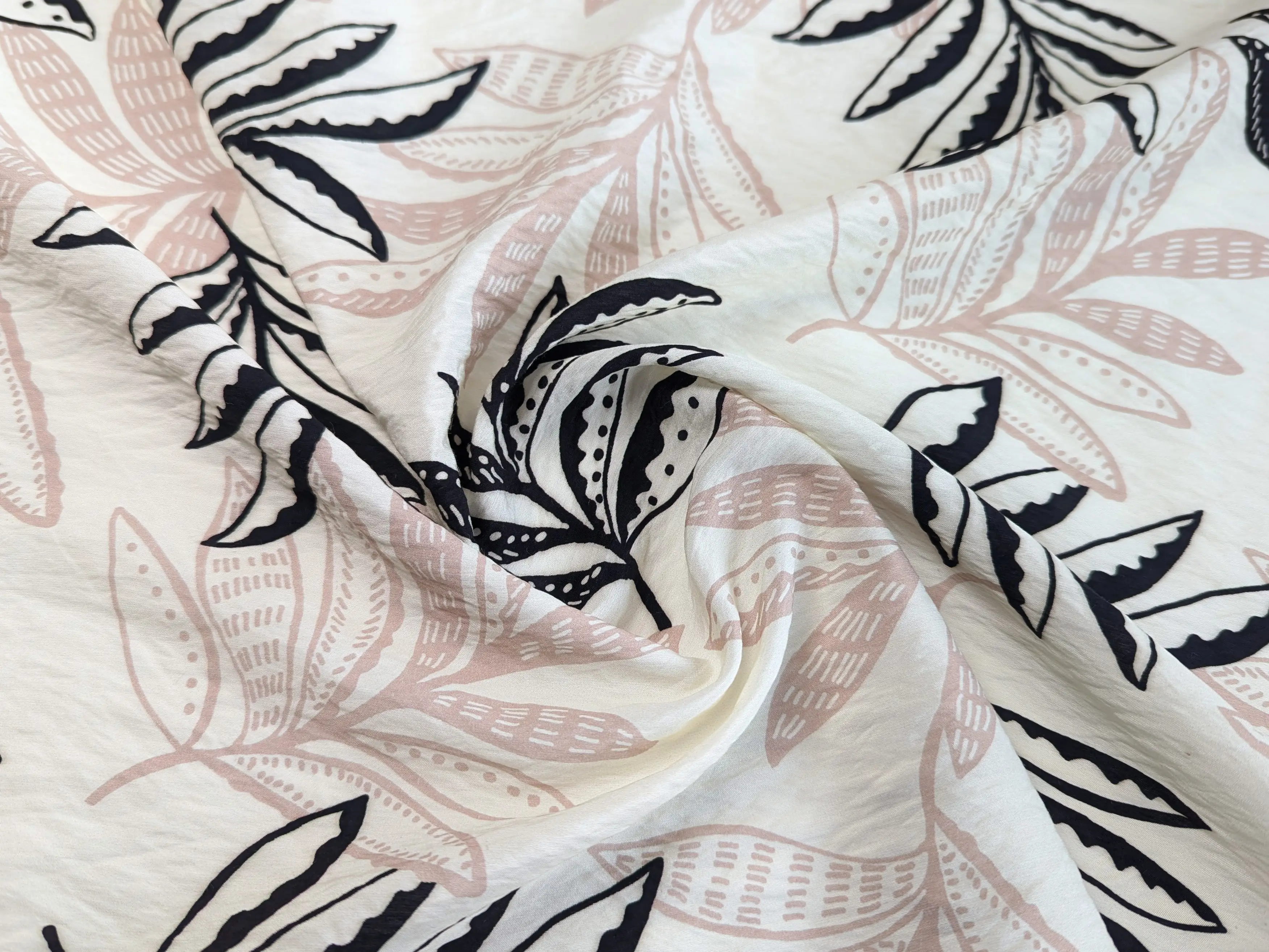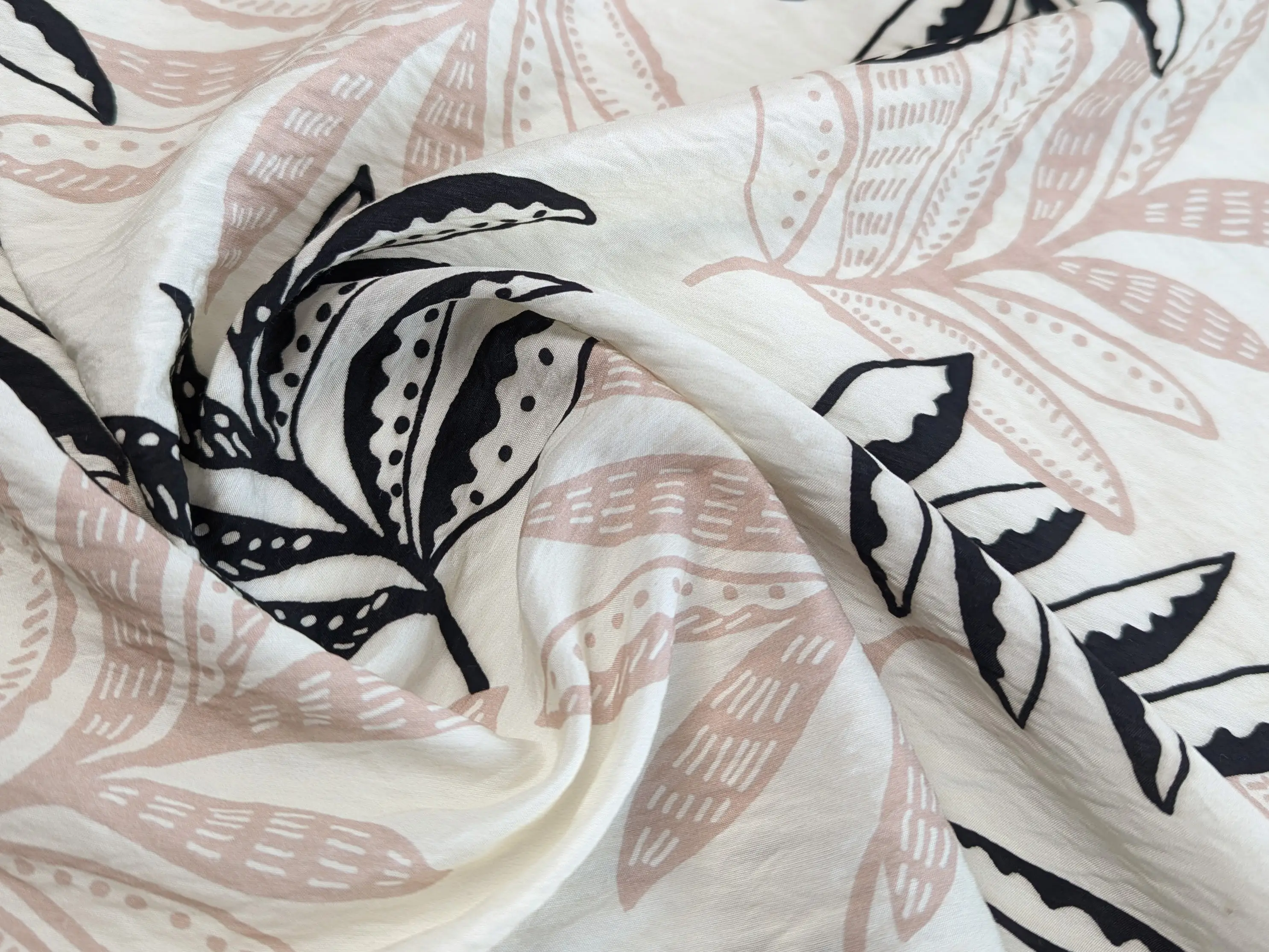 Віскоза шовк Бохо листяна казка, кремовий з чорним