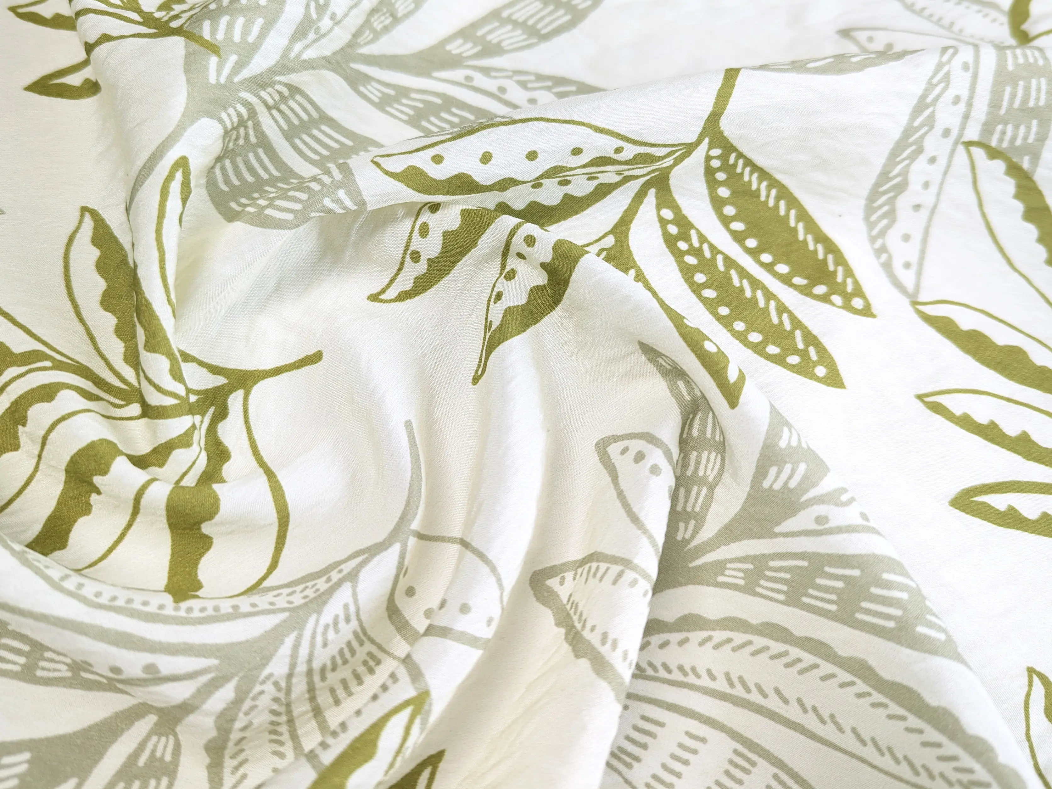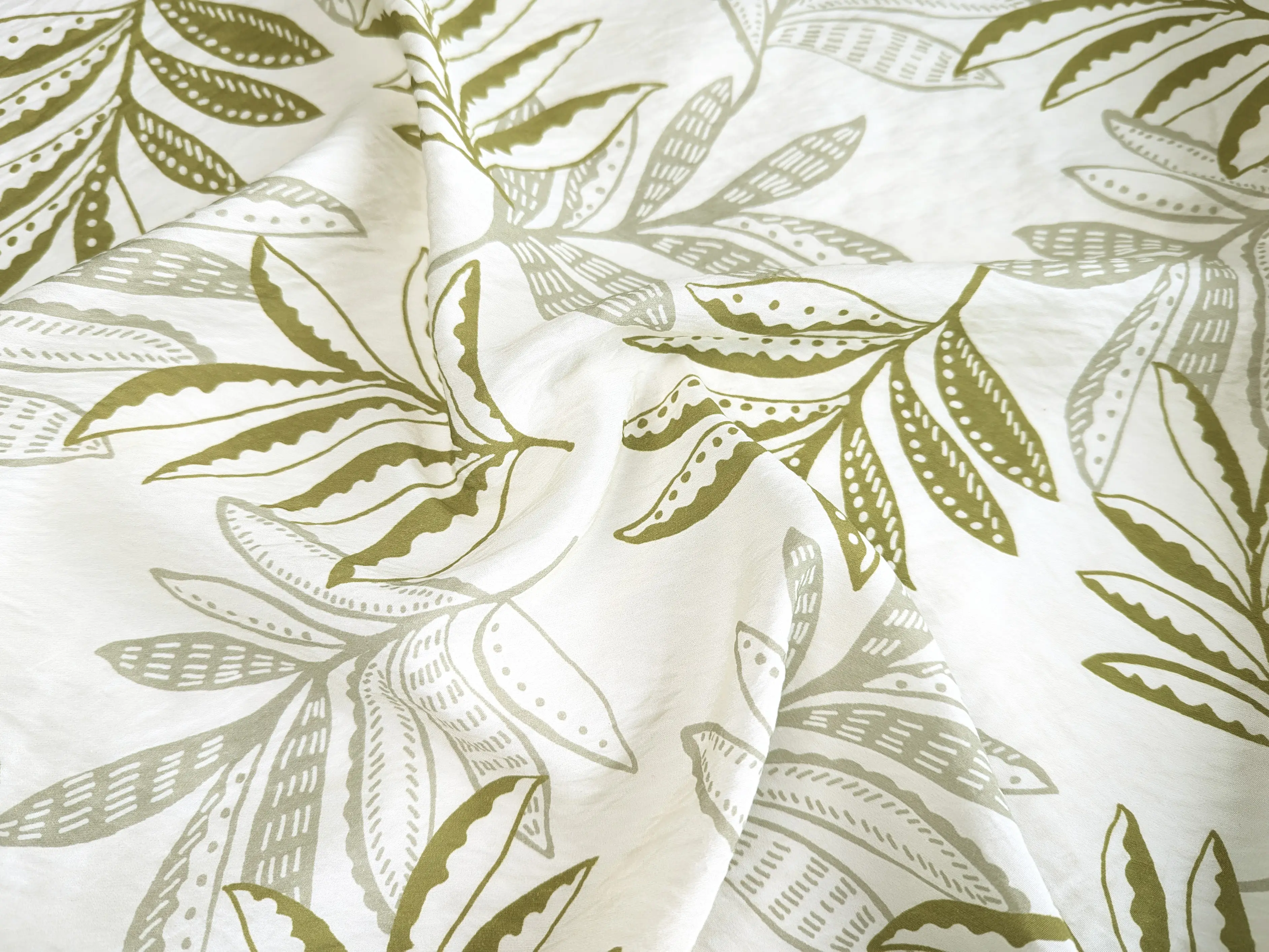 Віскоза шовк Бохо листяна казка, кремовий з оливковим