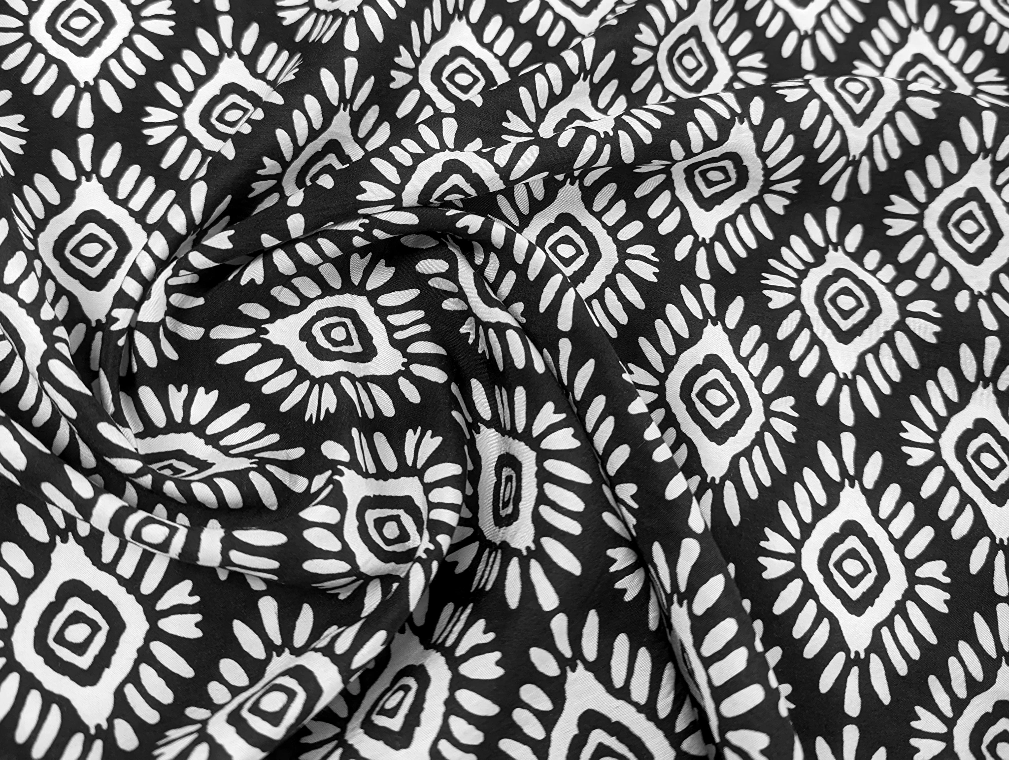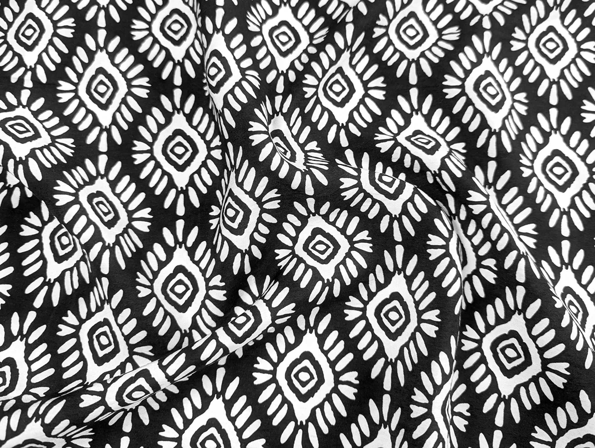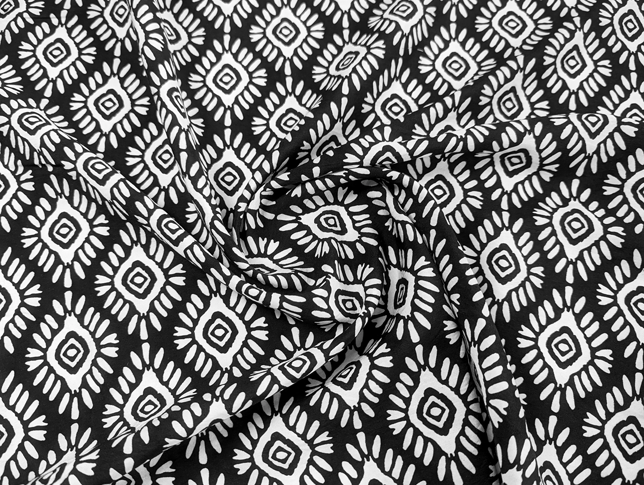 Віскоза шовк Бохо орнамент, чорний на молочному