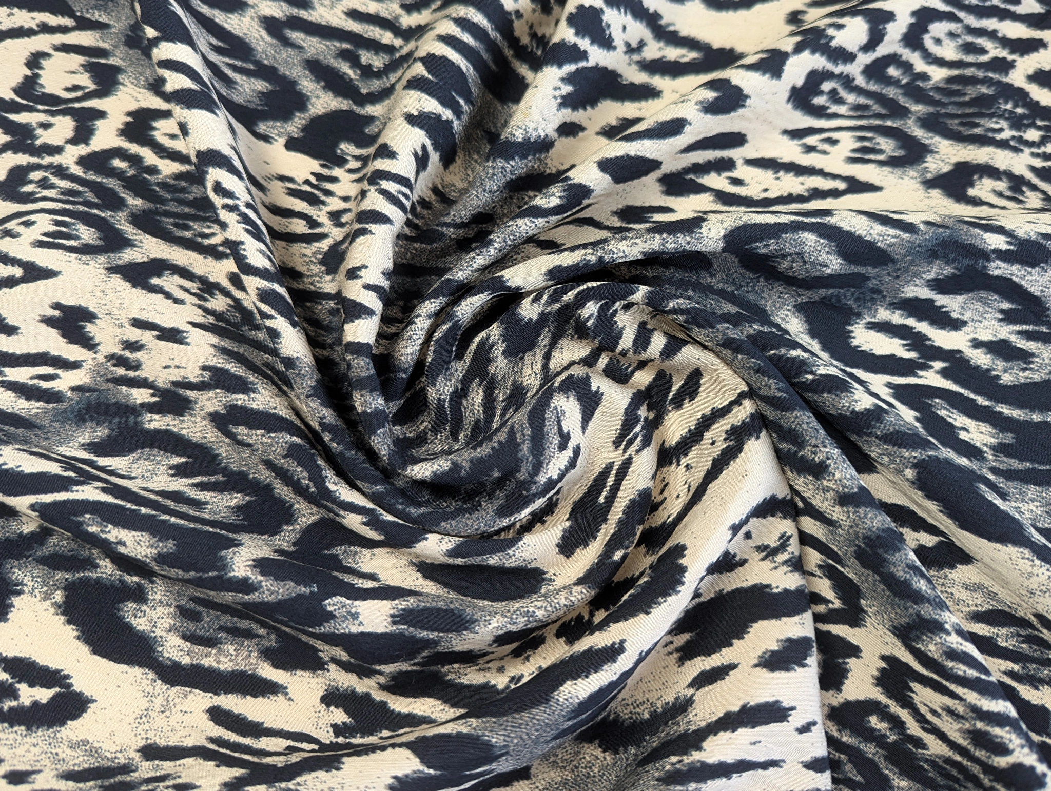 Віскоза шовк Бохо сніжний барс, бежевий з темно-синім
