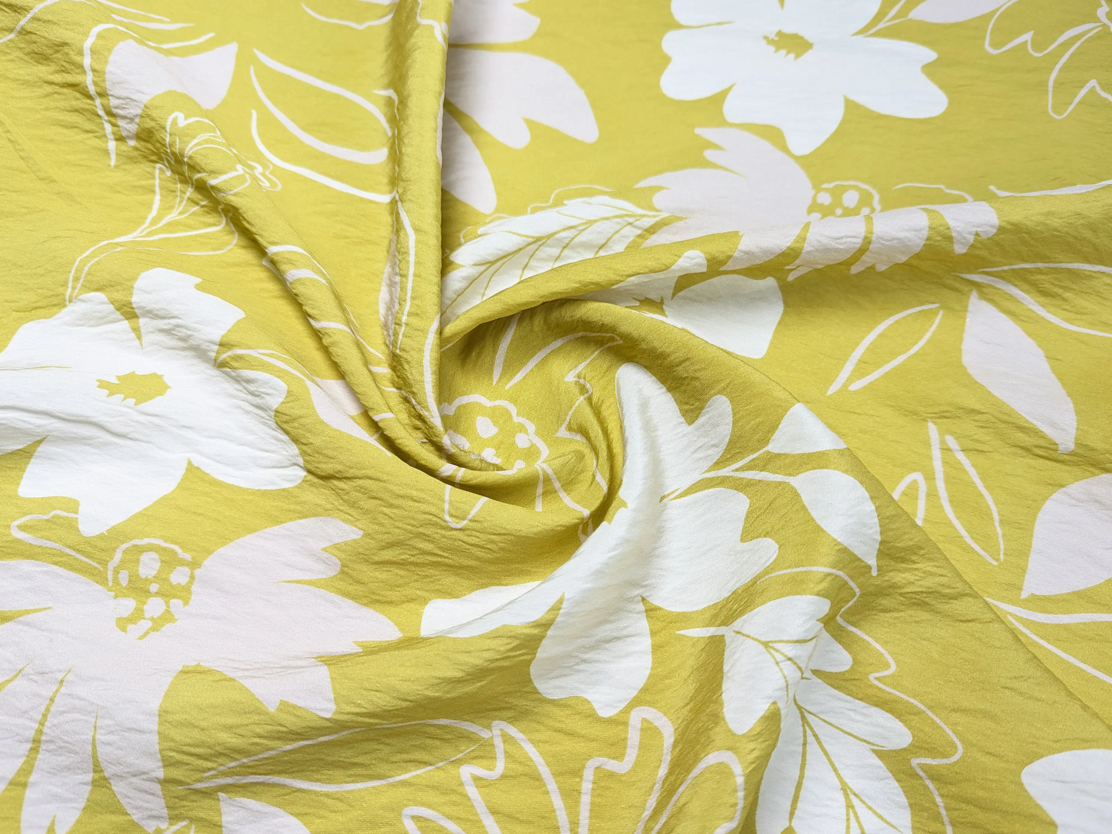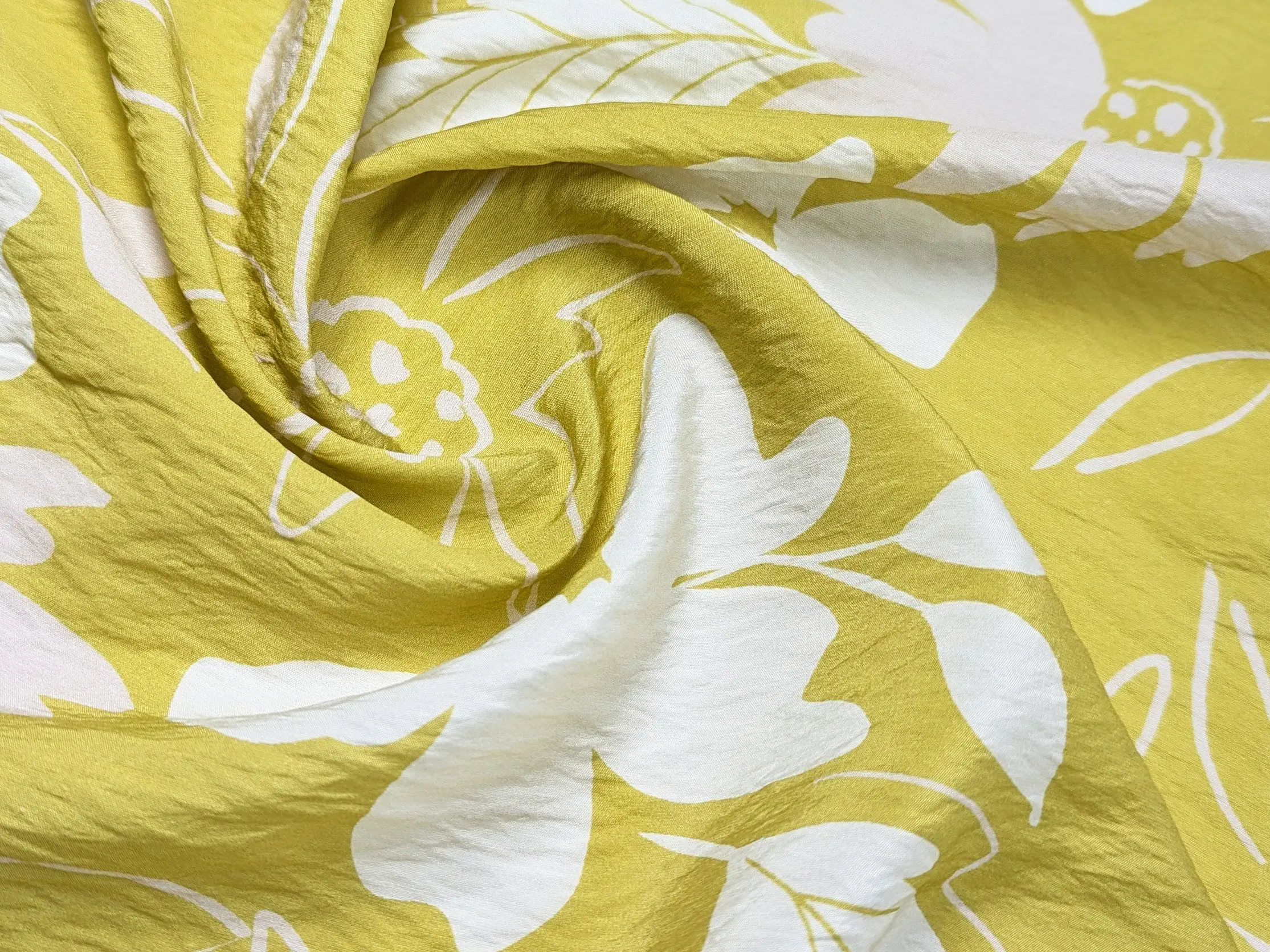 Віскоза шовк Бохо великі квіти, гірчично-зелений