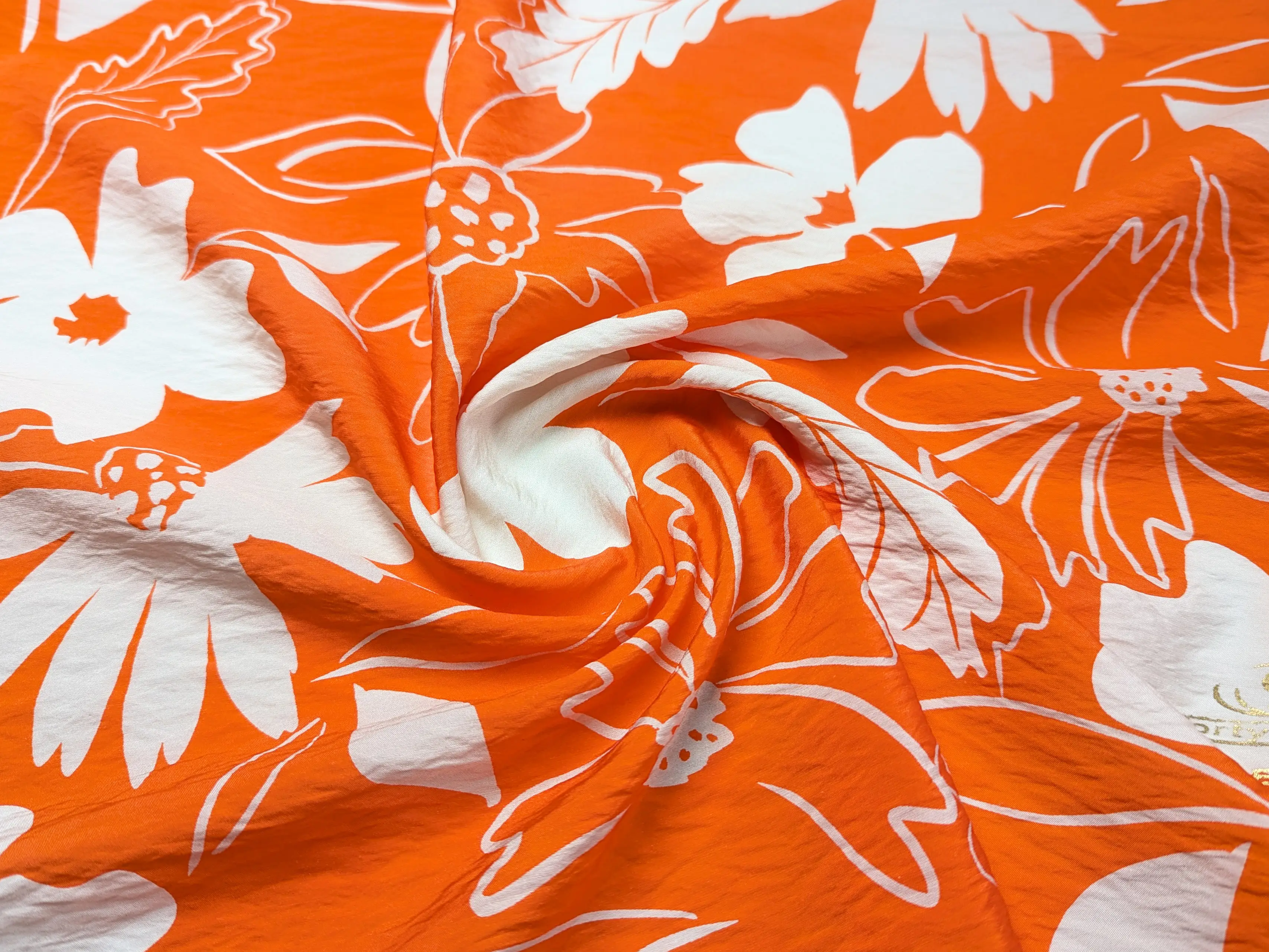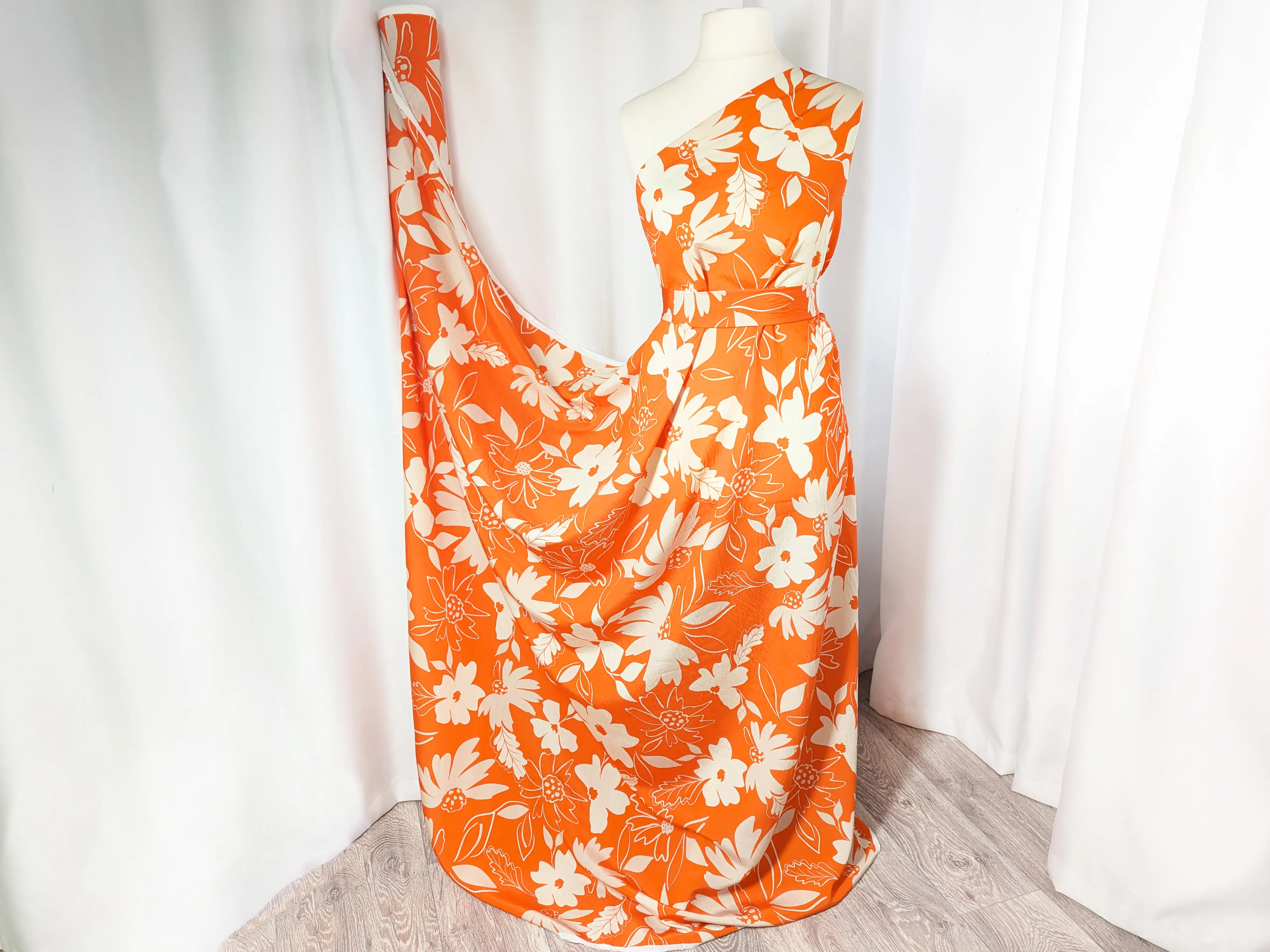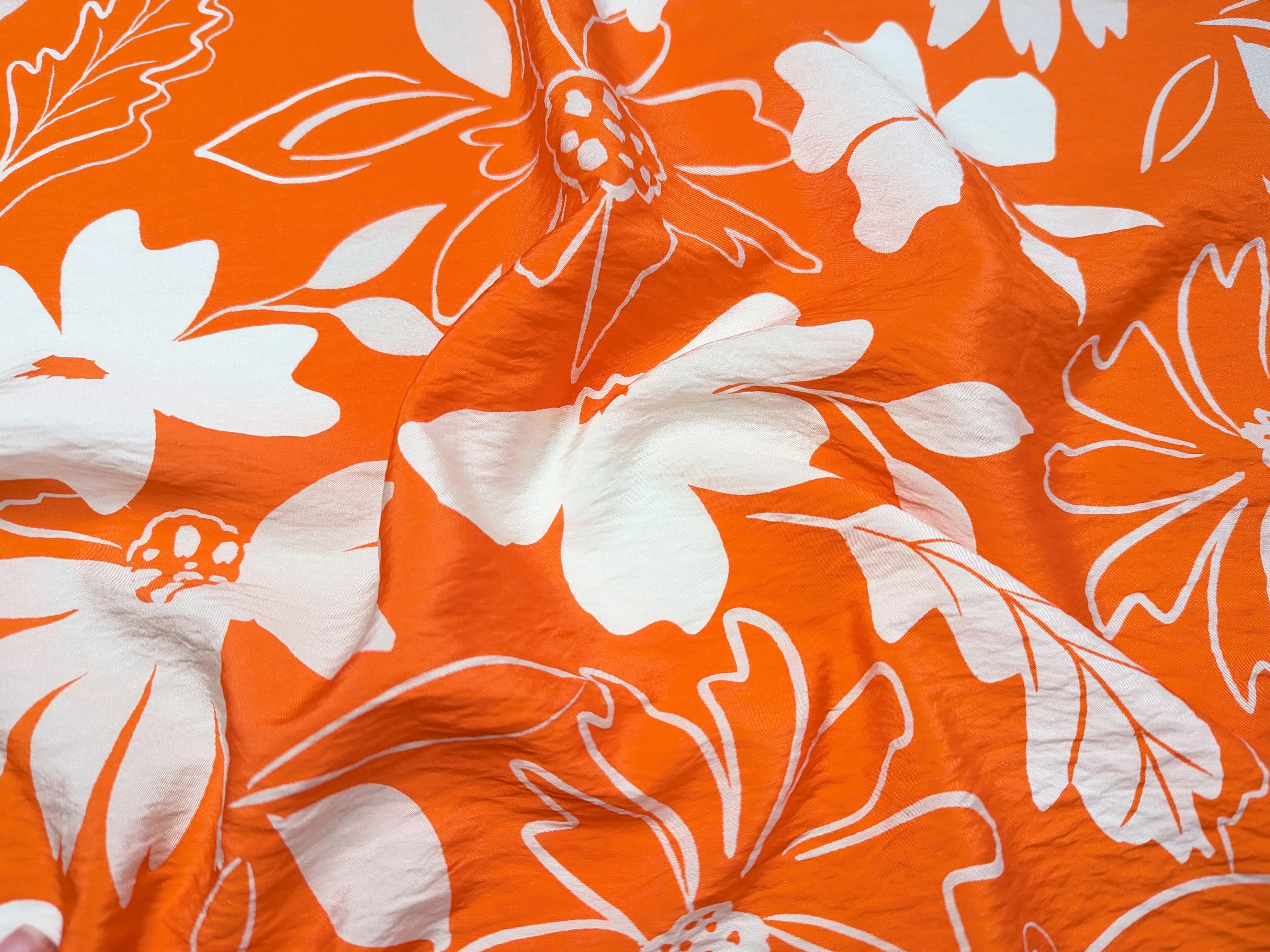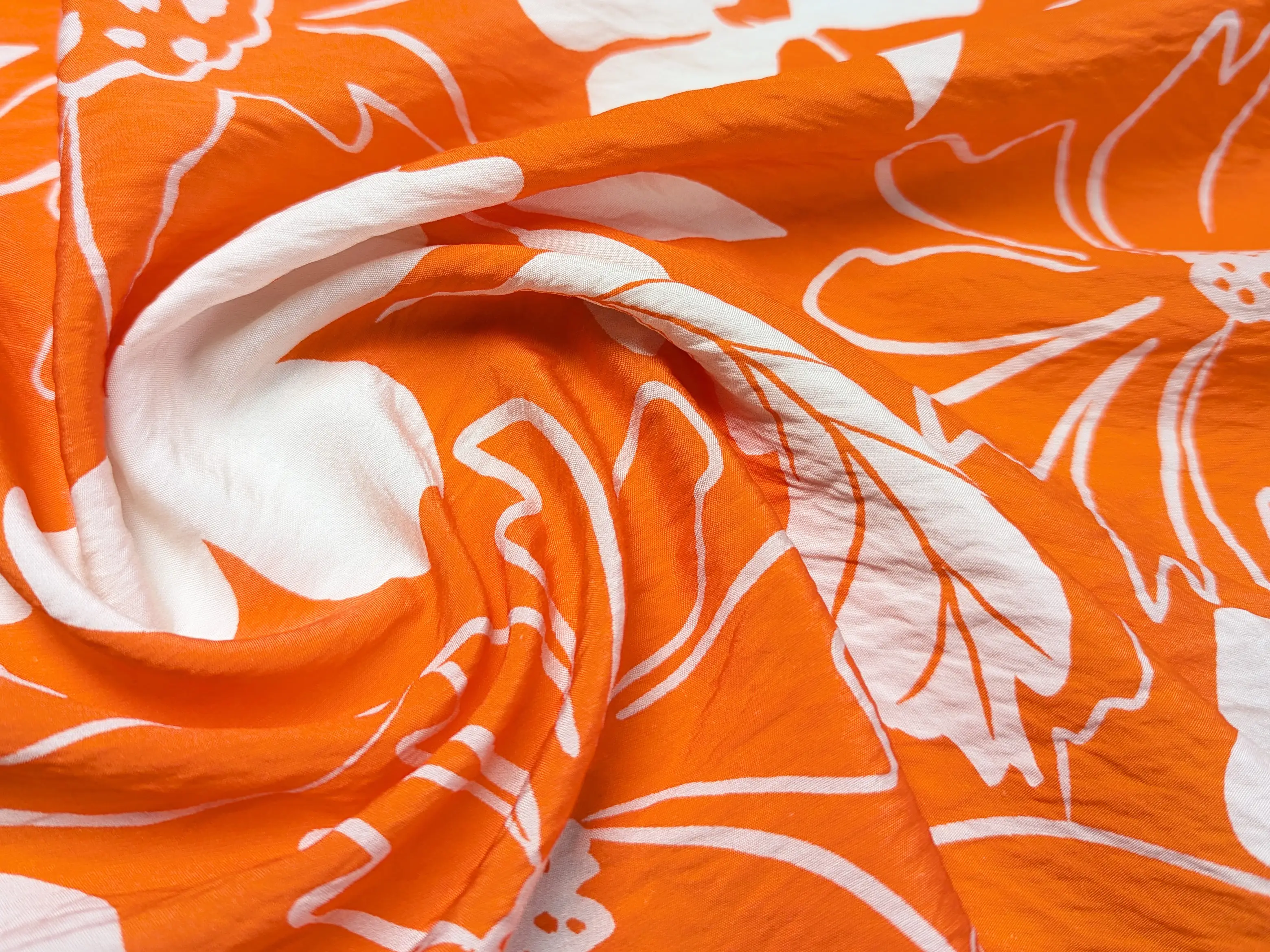 Віскоза шовк Бохо великі квіти, яскравий помаранчевий