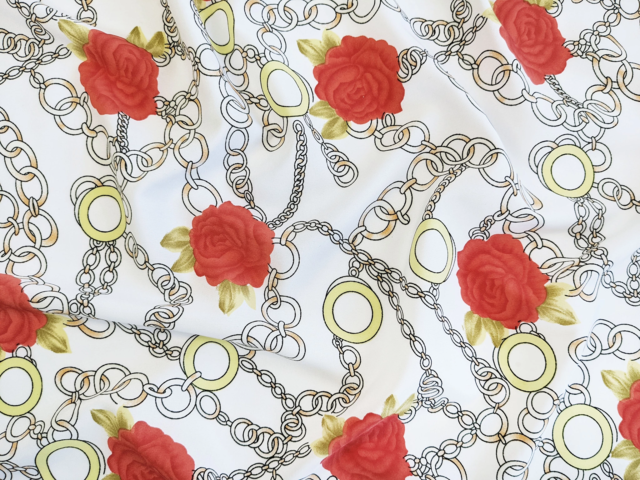 Віскоза софт легка, приємна до тіла, легко розгладжується, майже не мнеться. Структура тканини гладка, щільна. Світлі тони злегка просвічуються на світлі. Трохи тягнеться по одній стороні. Полотно гарно драпірується. Застосовується при пошитті блуз і літніх суконь.