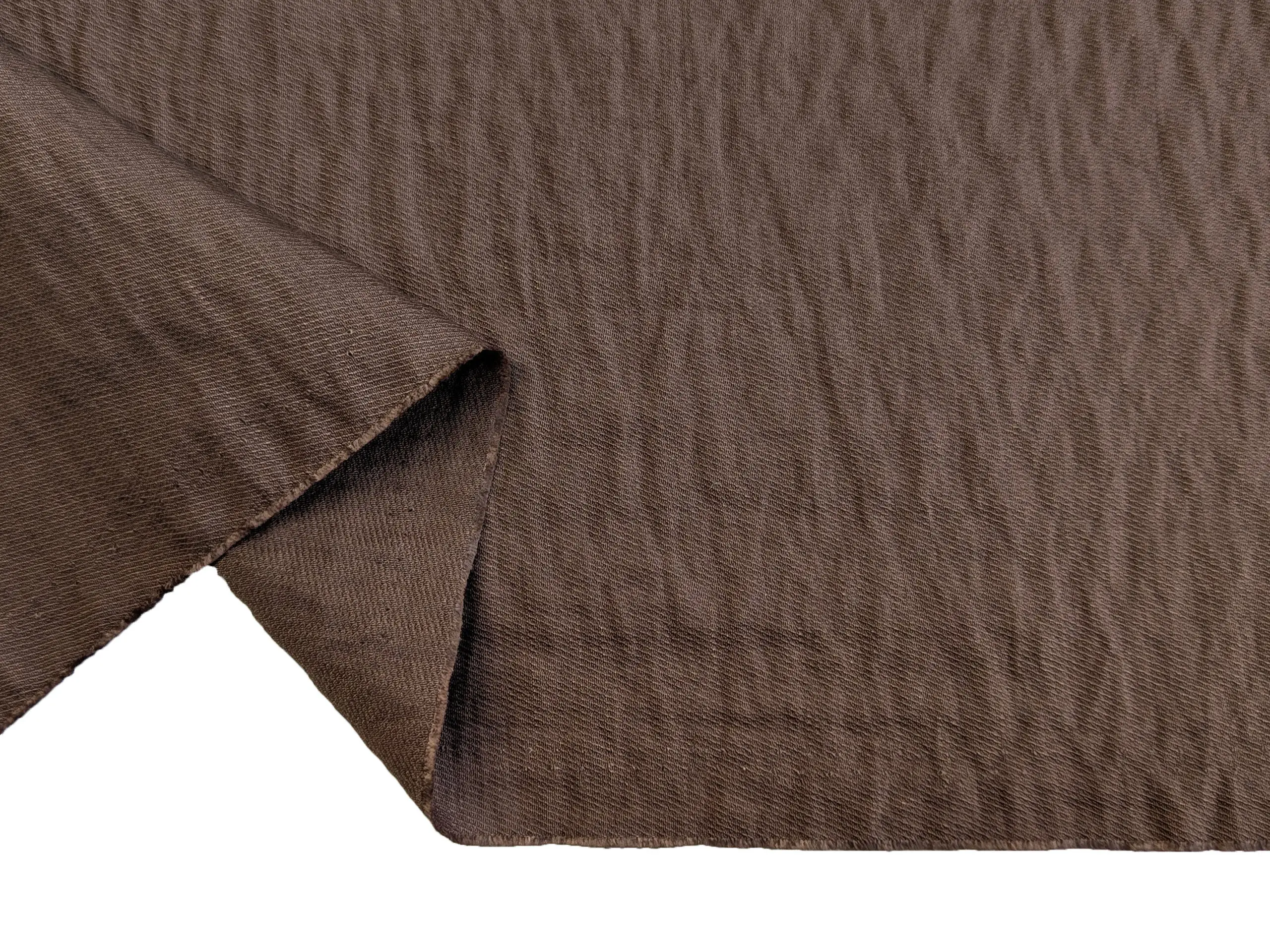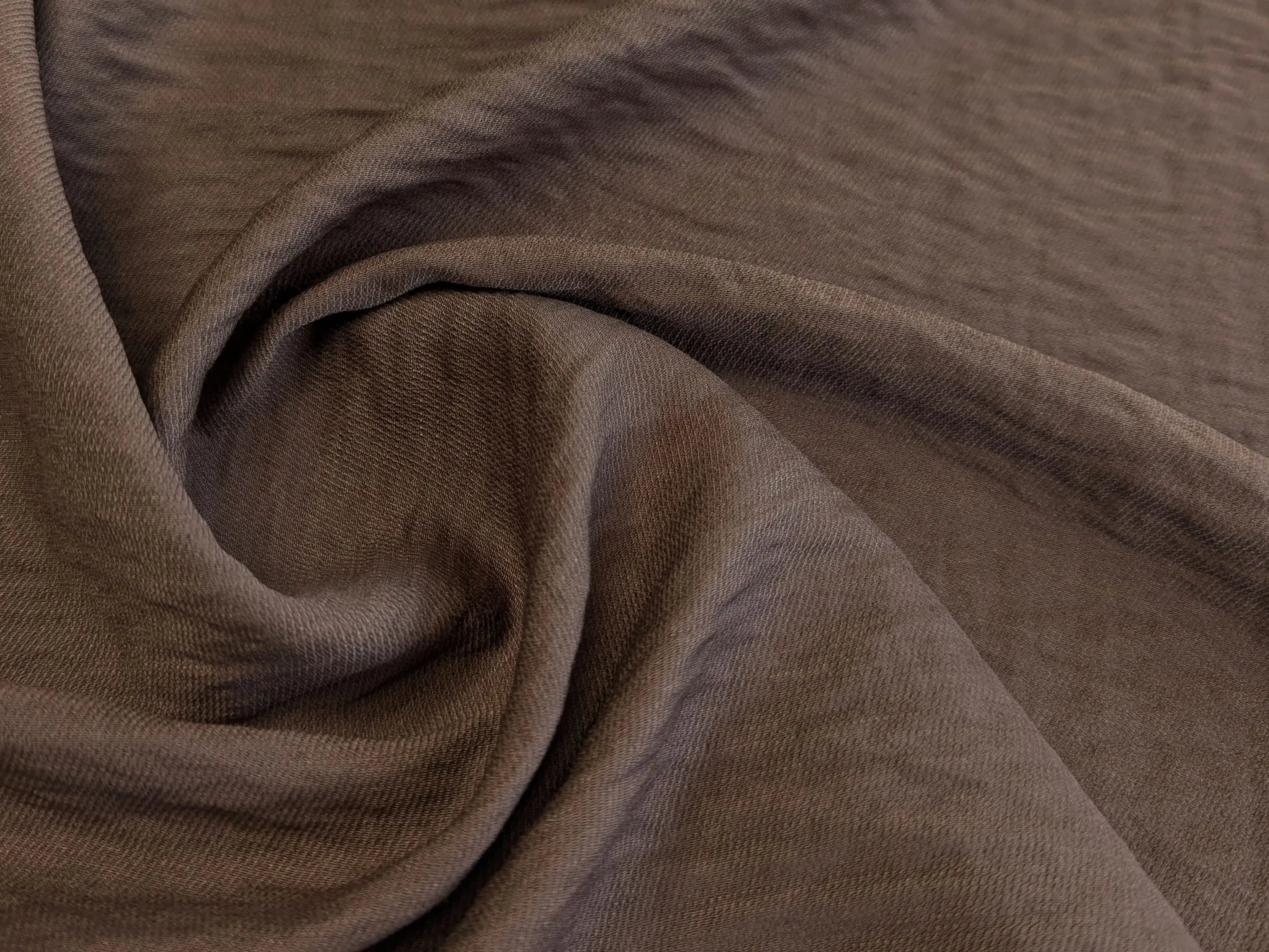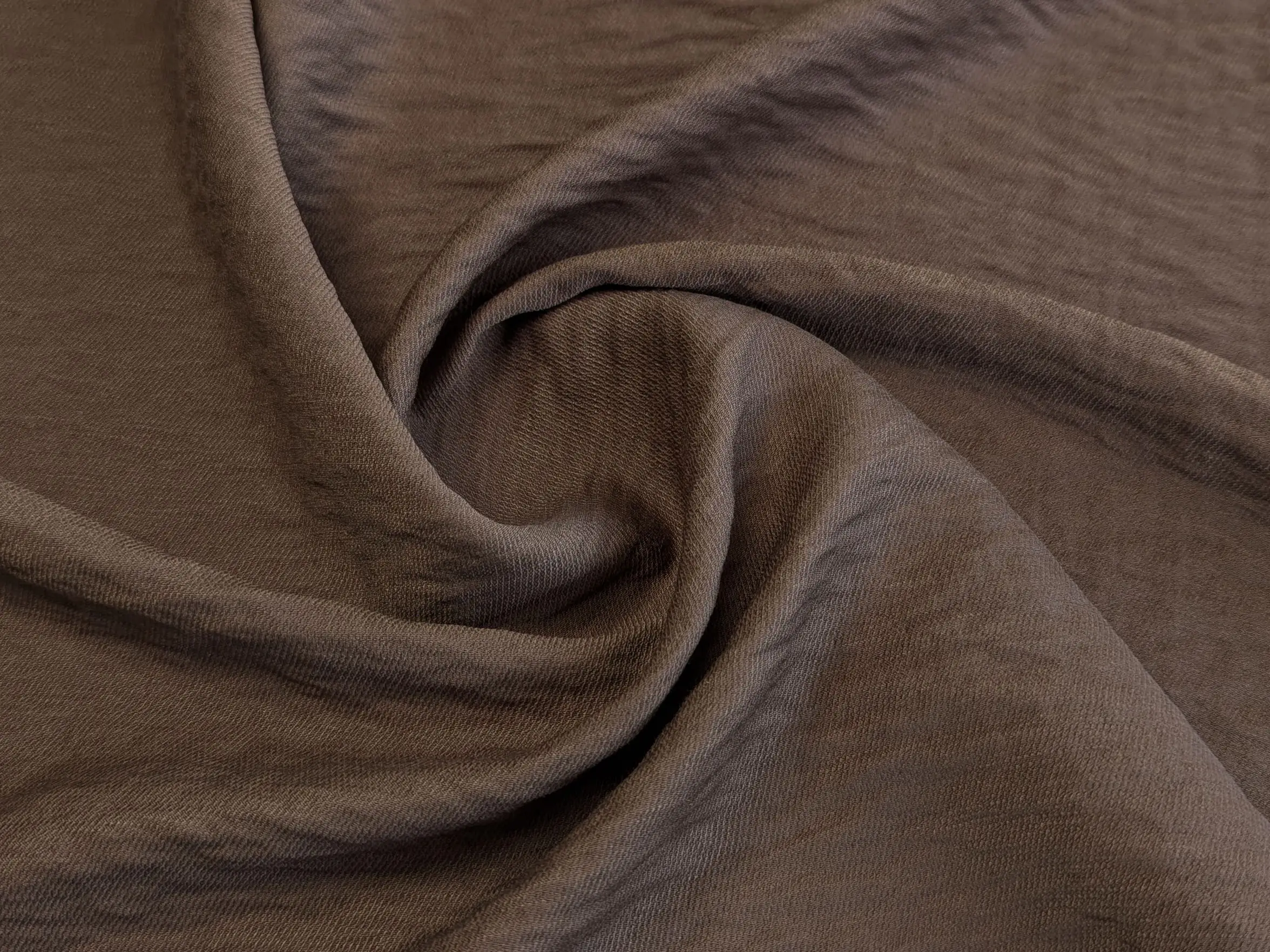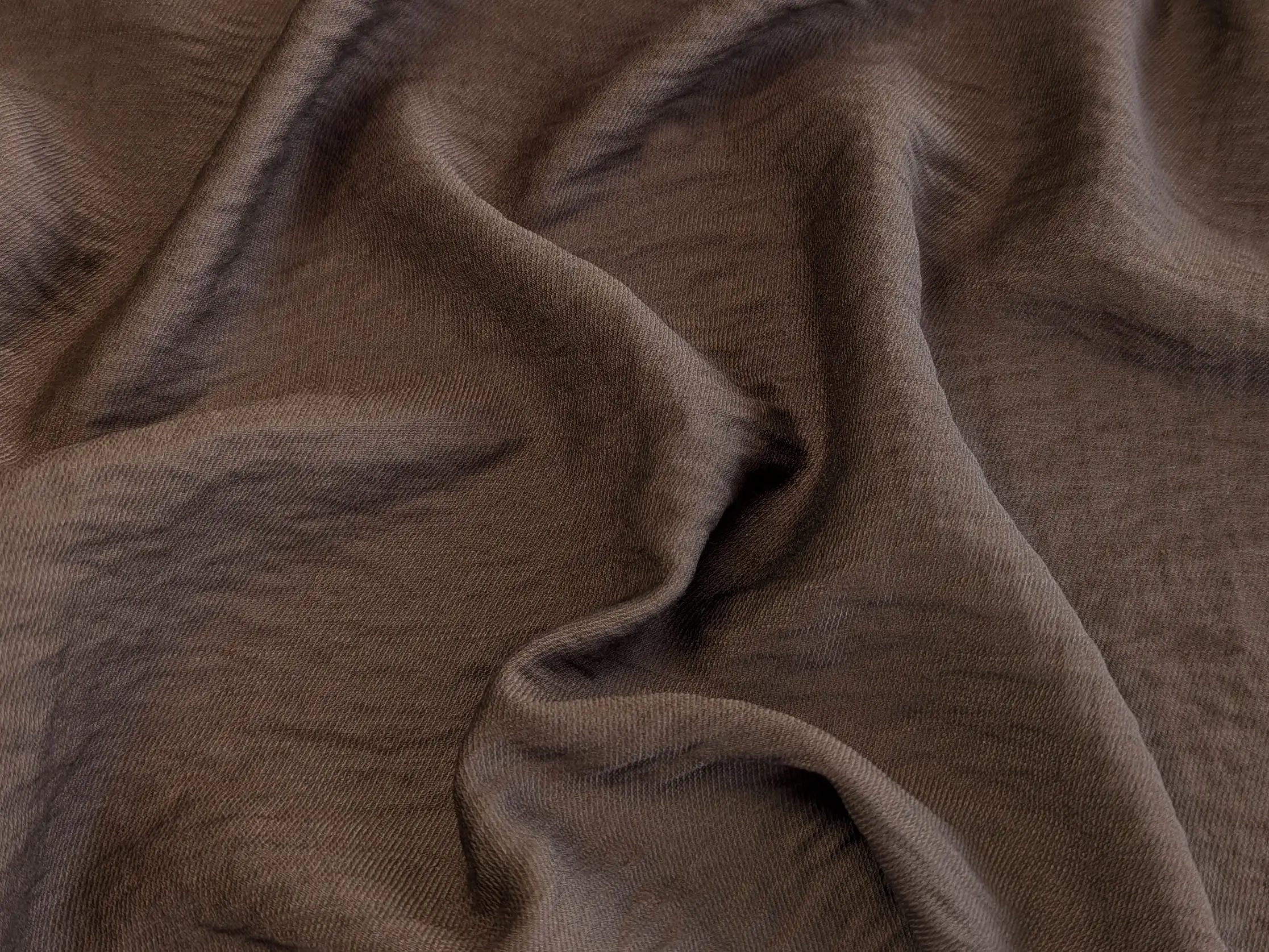 Віскоза з нейлоном - це м’яка та легка жатa тканина з гладкою поверхнею і делікатним полірованим блиском. Матеріал чудово драпірується, утворюючи плавні, м’які складки, при цьому майже не тримає жорстку форму.