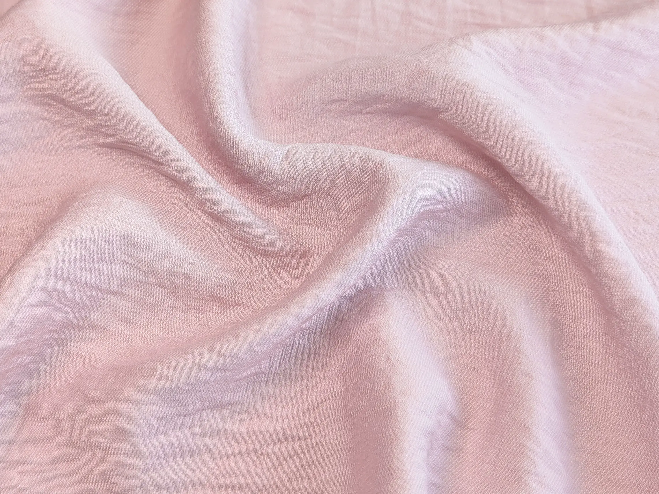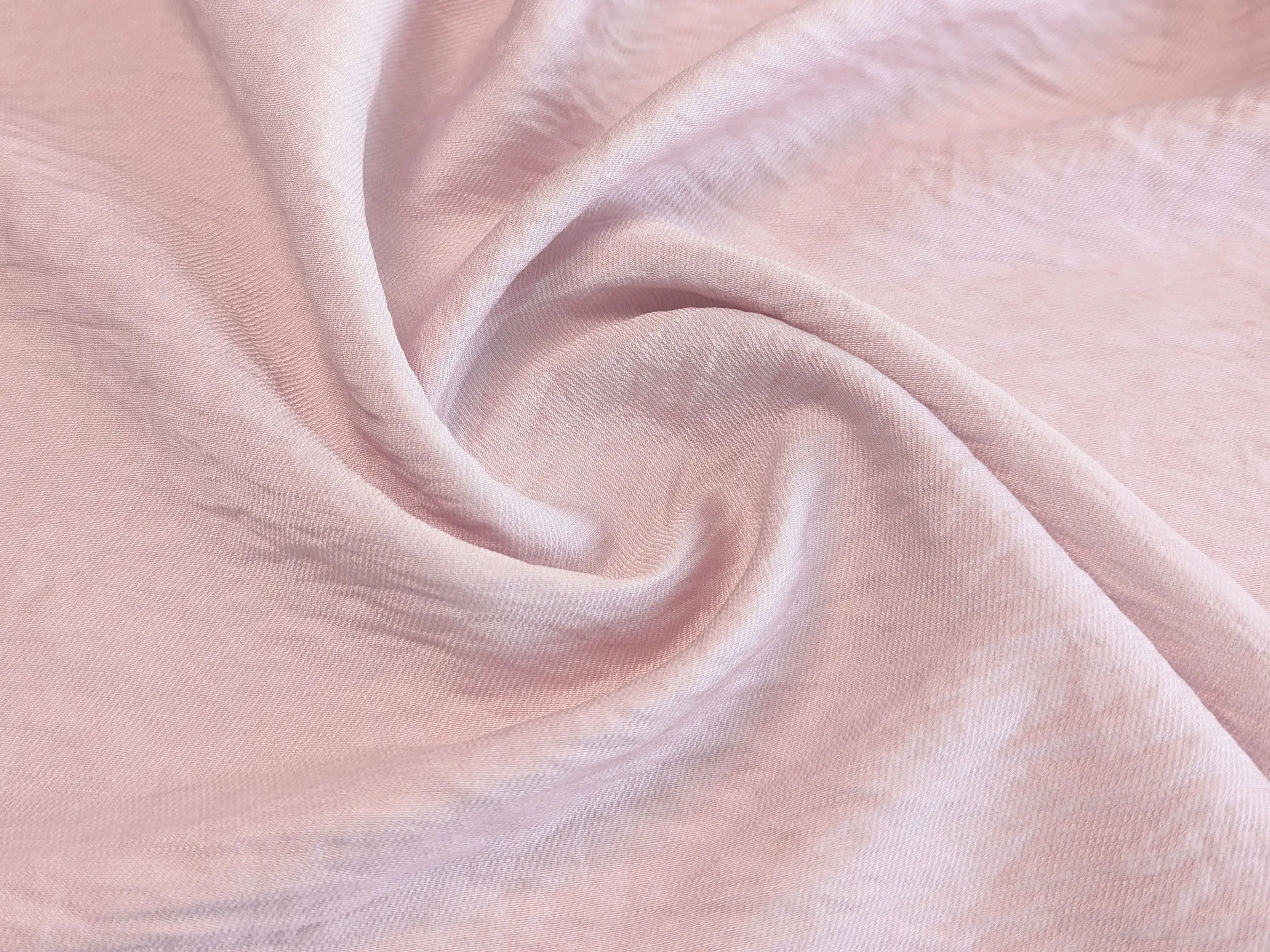 Віскоза з нейлоном - це м’яка та легка жатa тканина з гладкою поверхнею і делікатним полірованим блиском. Матеріал чудово драпірується, утворюючи плавні, м’які складки, при цьому майже не тримає жорстку форму.