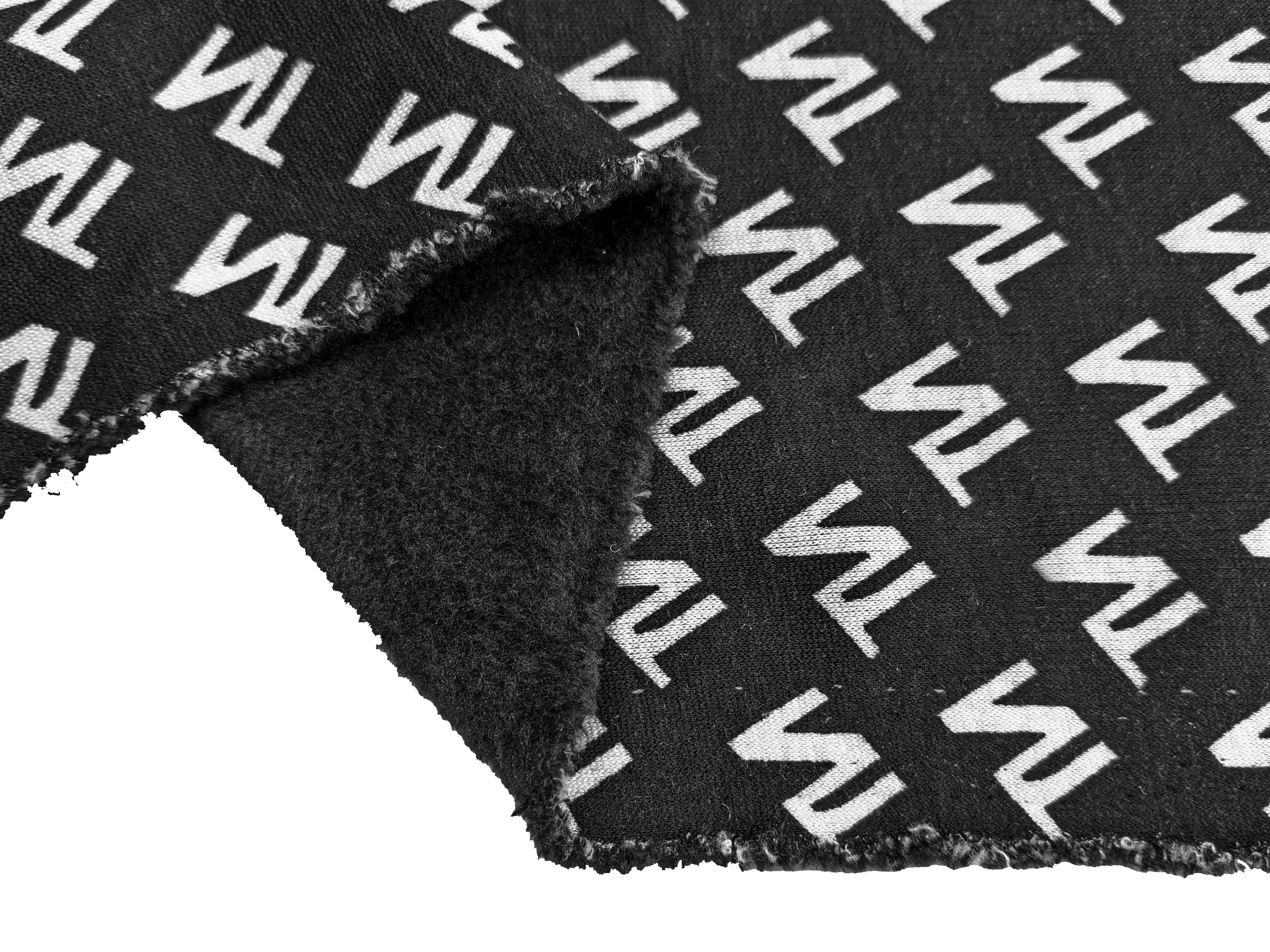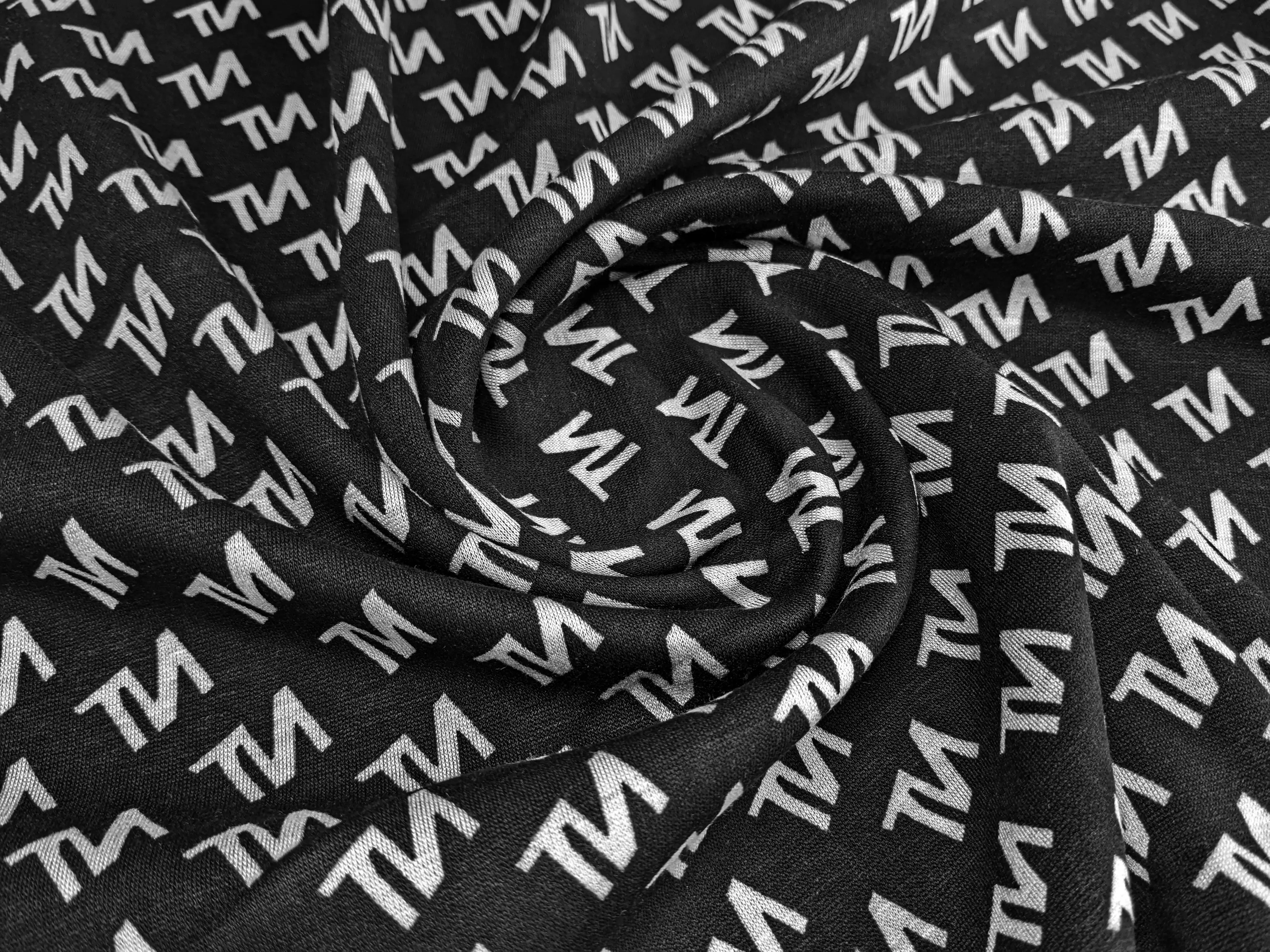 Віскозний трикотаж на хутрі написи, світло-сірий на чорному (відріз 2 м)