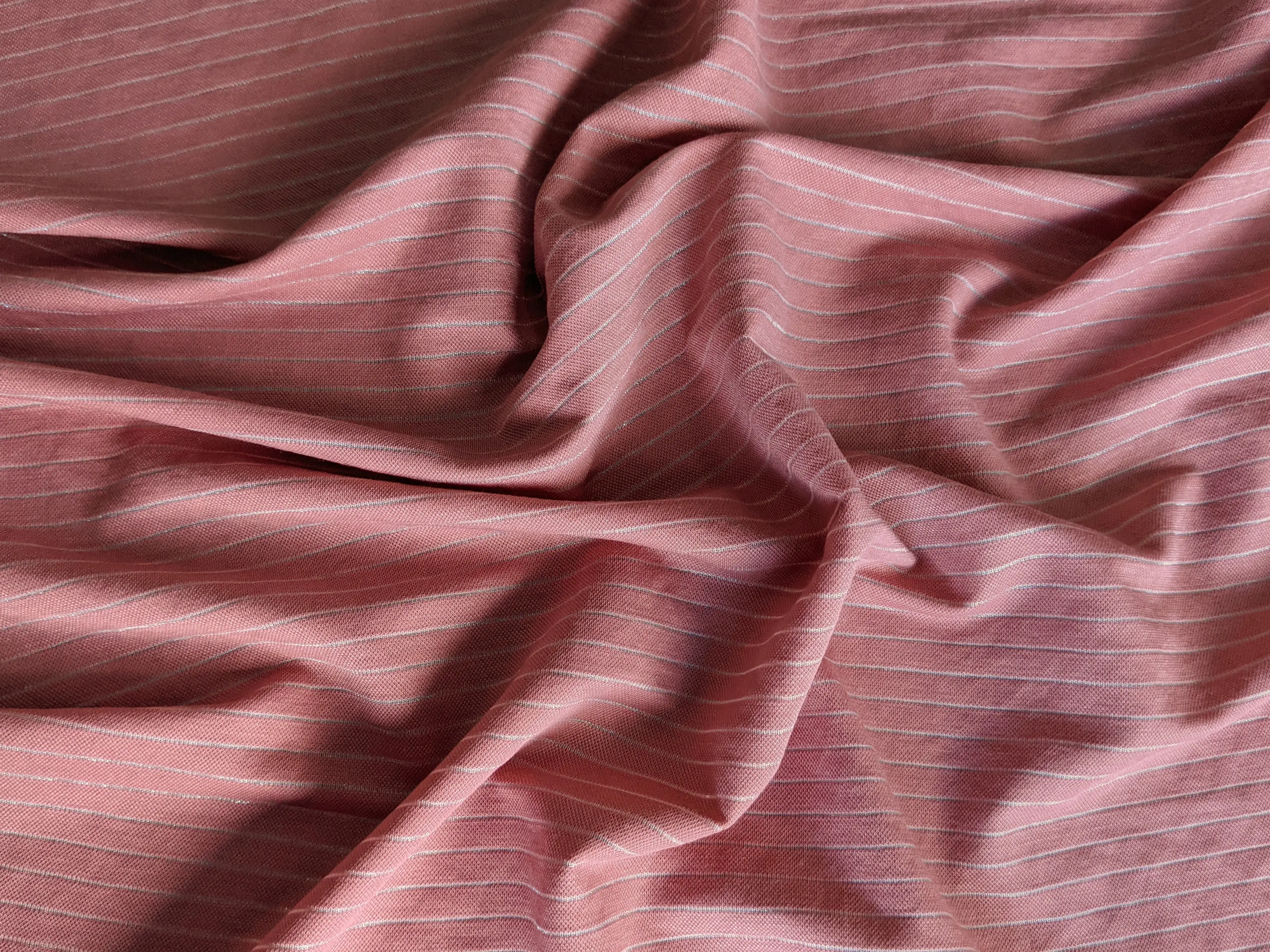 Віскозний трикотаж з нейлоном смужка з люрексом, рожевий (відріз 1,6 м)