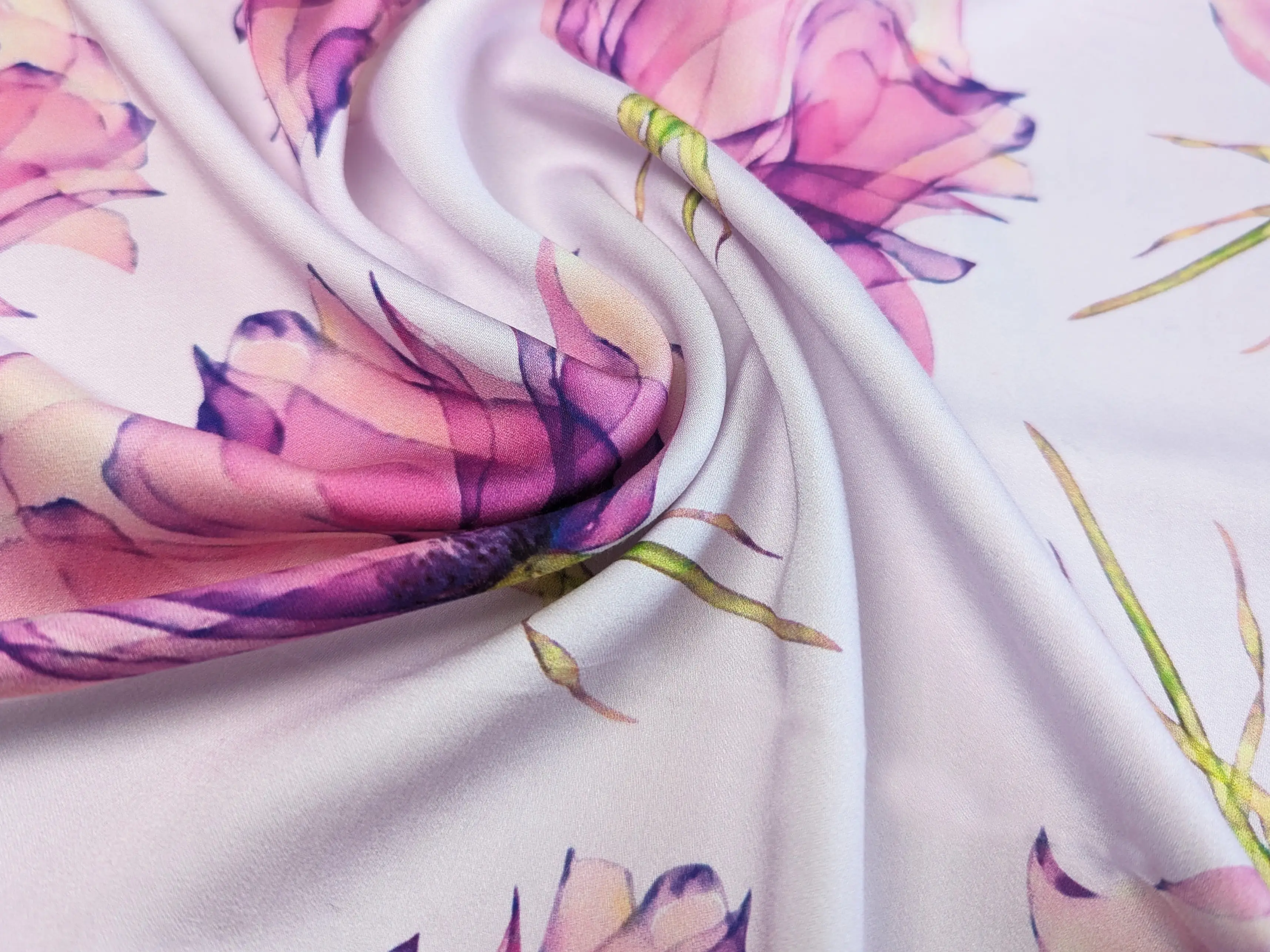 Вискоза шелк акварельні троянди, бузково-ліловий (відріз 0,7 м)
