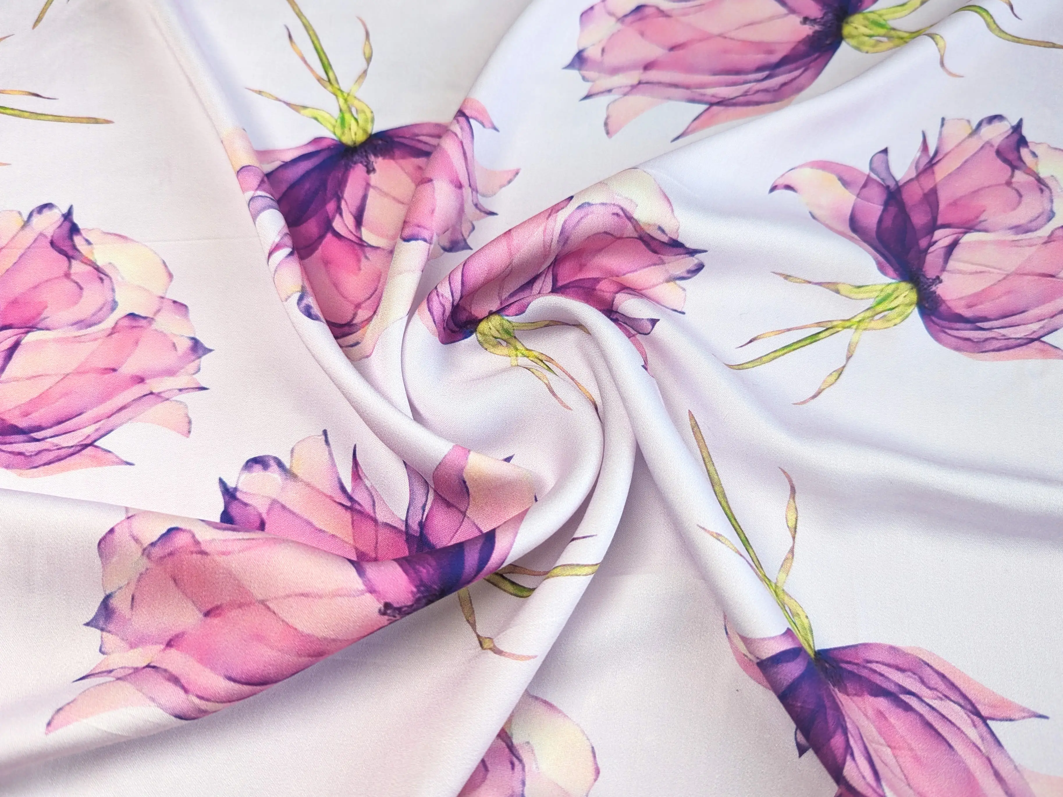 Легка тканина штапель атласний має гладеньку та ковзну лицьову сторону. Ідеально підійде для пошиття сорочок, блуз, суконь та комбінезонів як для дорослих, так і для дітей. Тканина не просвічує, майже не зминається, легко прасується.