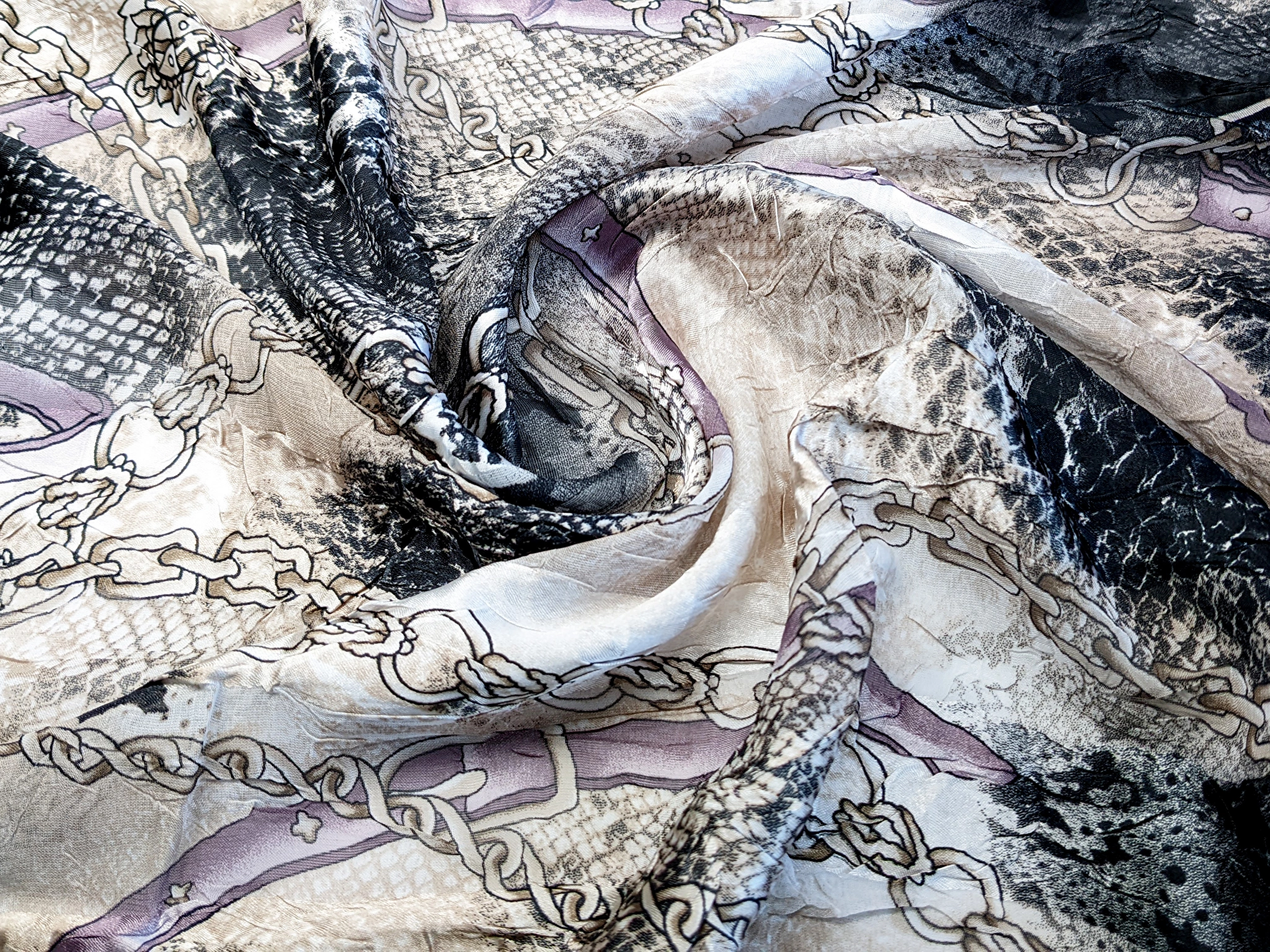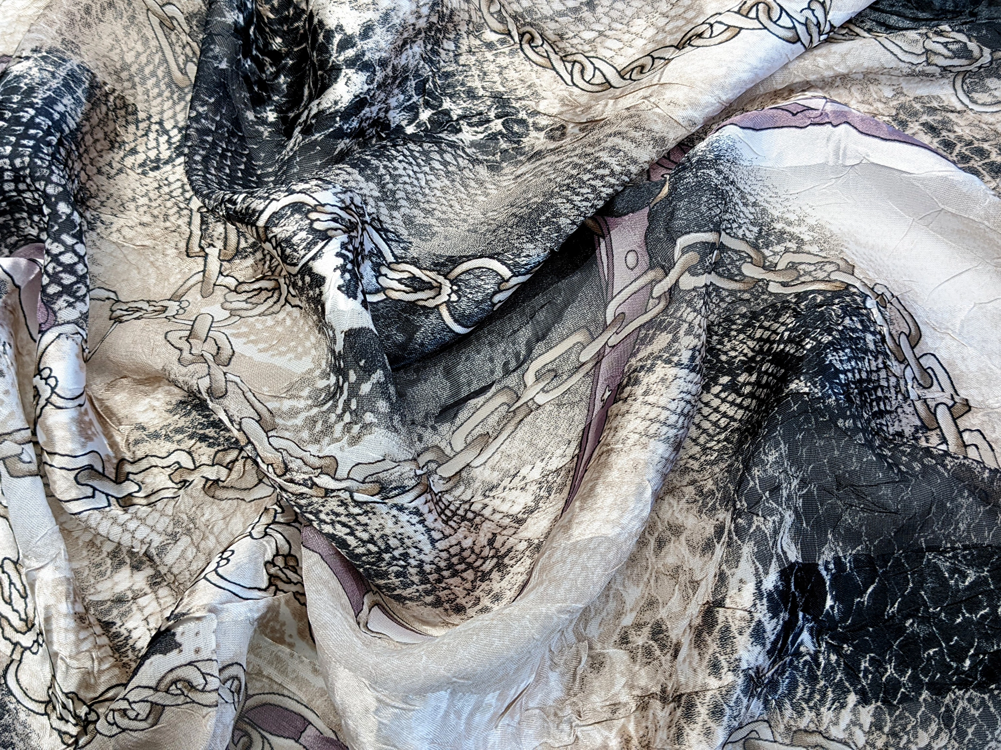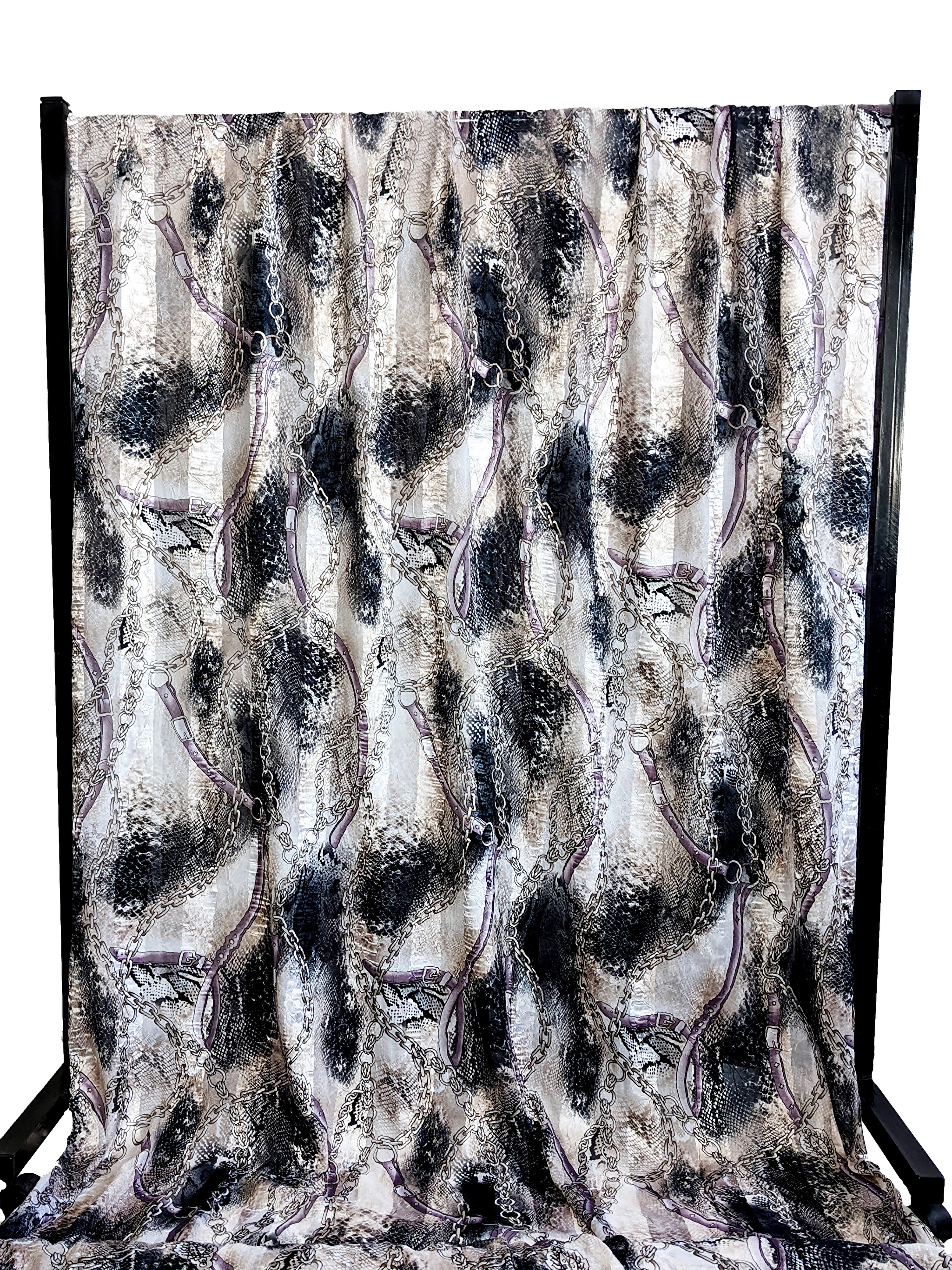 Атлас-шифон – це легка, повітряна, практично невагома тканина. На лицьовій стороні чергуються шифонова смуга з атласною. Тканина має легку жатку в хаотичному порядку. Полотно не мнеться, не тягнеться, трохи просвічує.