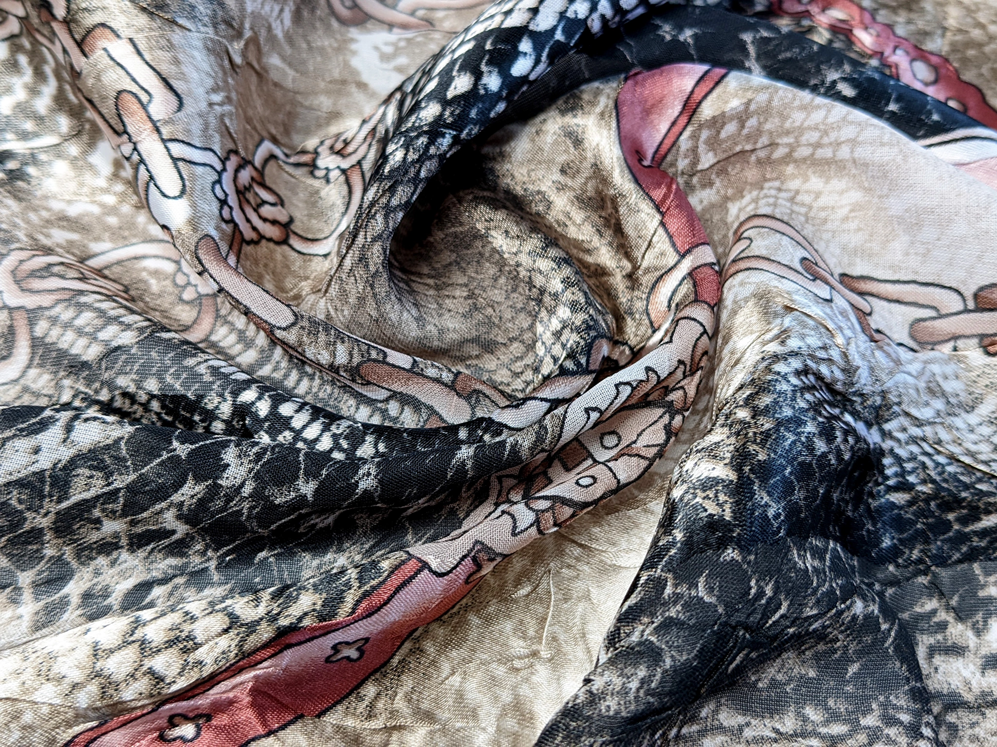 Атлас-шифон ідеально підходить для пошиття суконь, блуз, легких накидок та хусток.