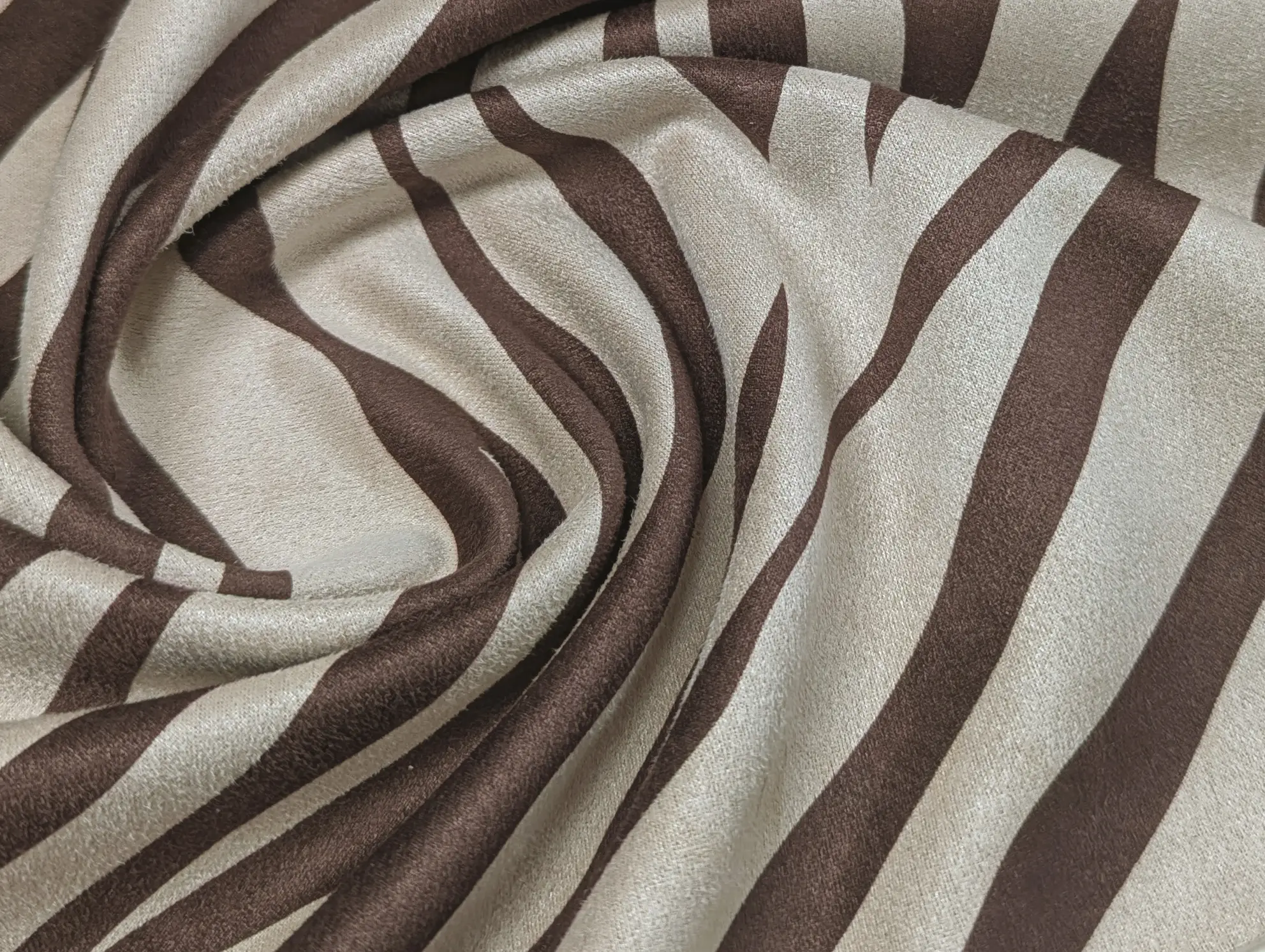 Принтована замша - це сучасна та стильна тканина з м’якою бархатистою лицьовою стороною, приємною на дотик. Завдяки вмісту спандексу матеріал має гарну еластичність, не деформується та зберігає бережний зовнішній вигляд. Яскравий і виразний принт робить тканину особливо ефектною, дозволяючи створювати оригінальні вироби. Замша стійка до стирання, практична, проста в догляді та добре тримає форму.