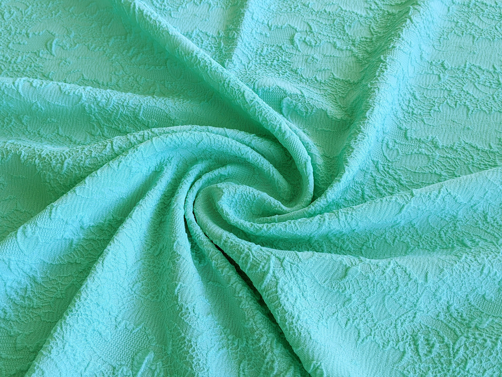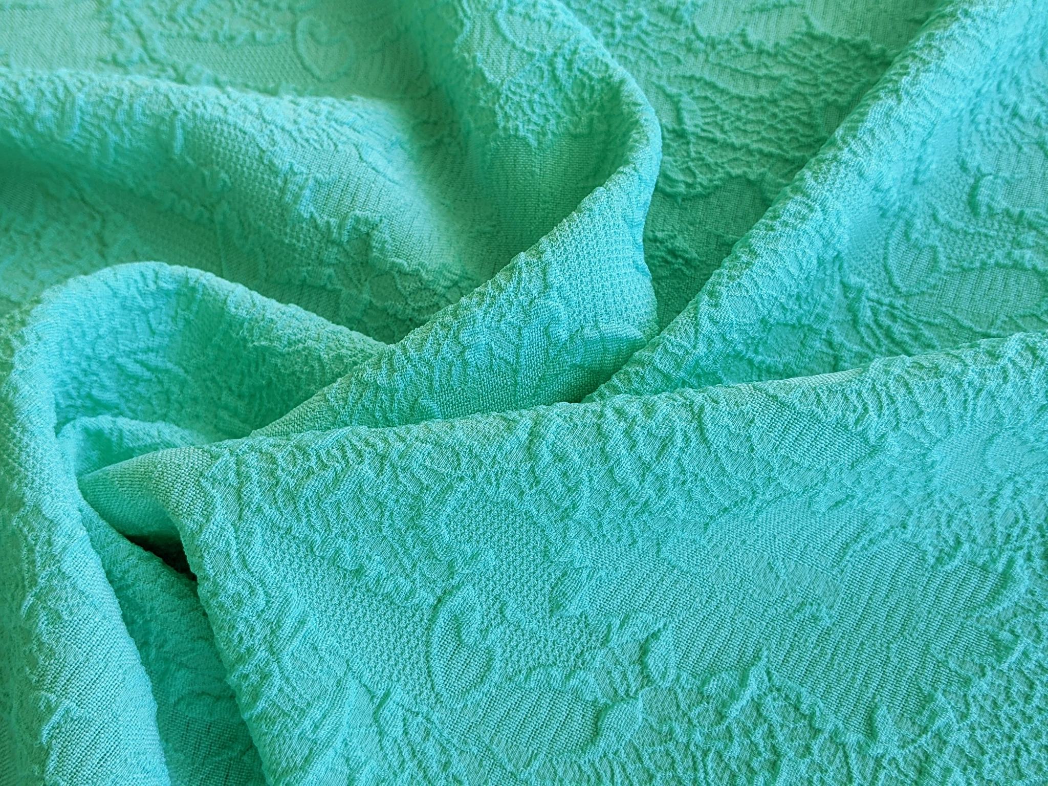 Плаття-футляр, блузи, костюми з крепового жаккарда дуже комфортні і практичні, а фактурна структура тканини дозволяє як підкреслити достоїнства фігури, так і приховати її недоліки.