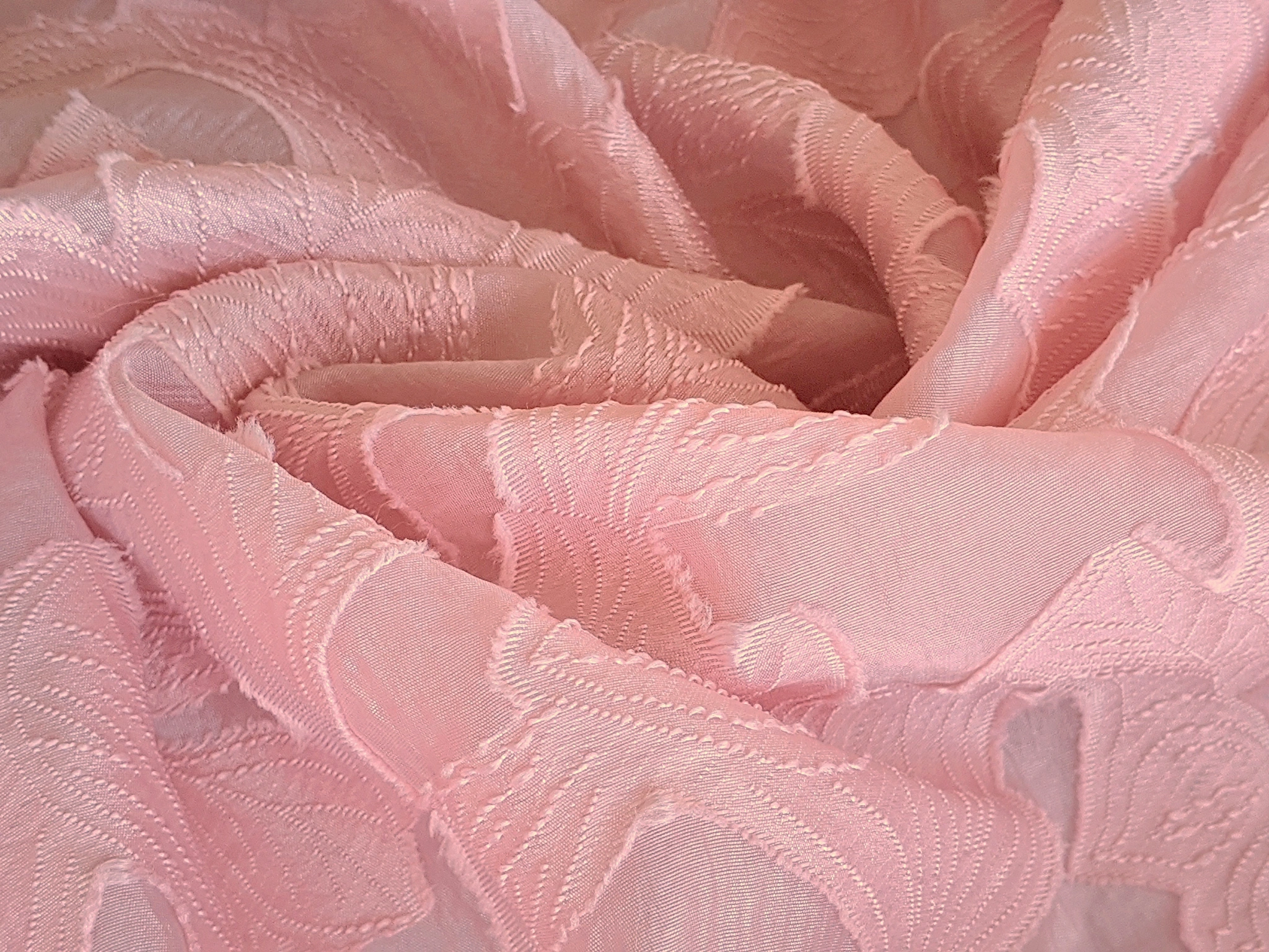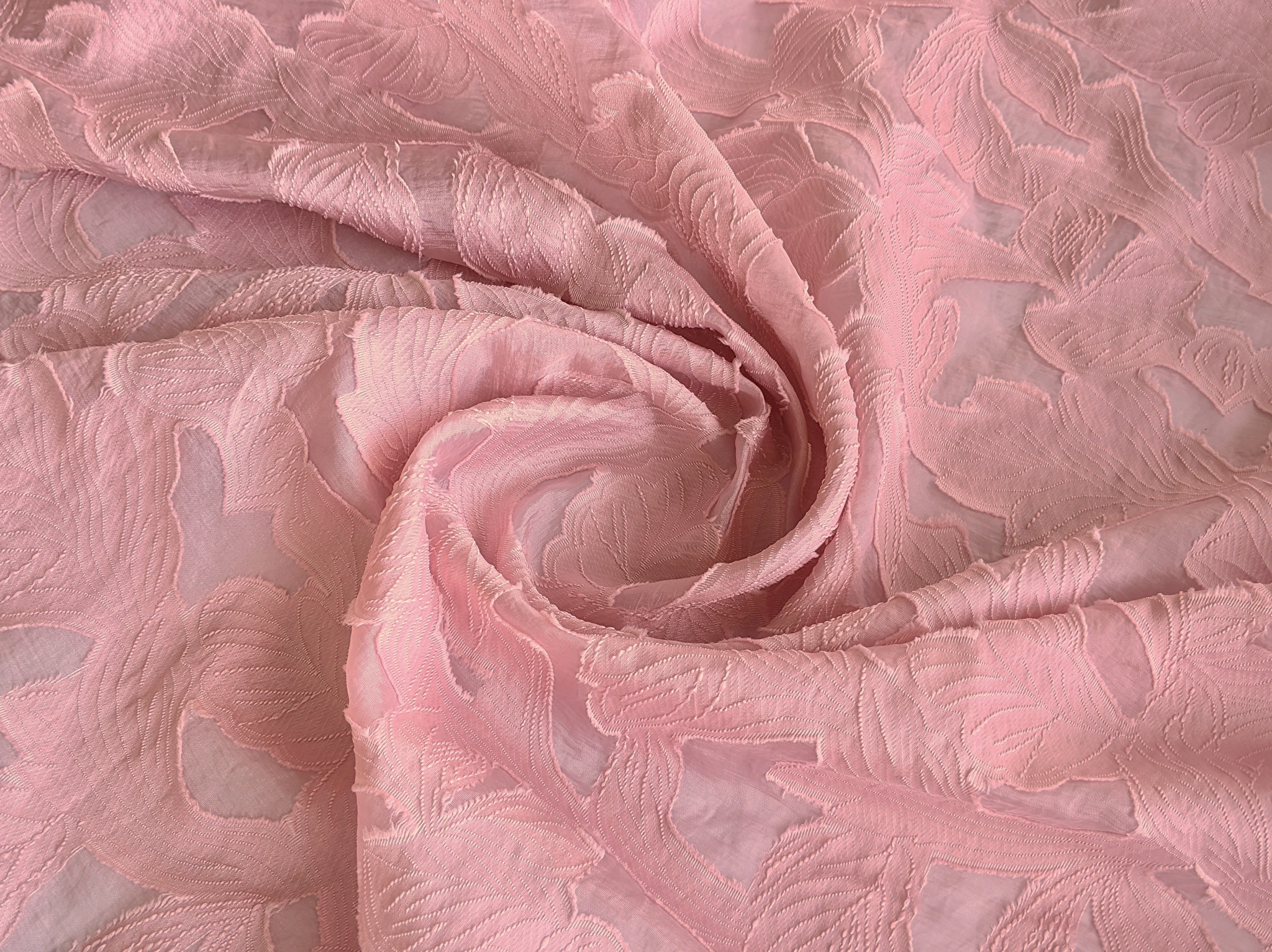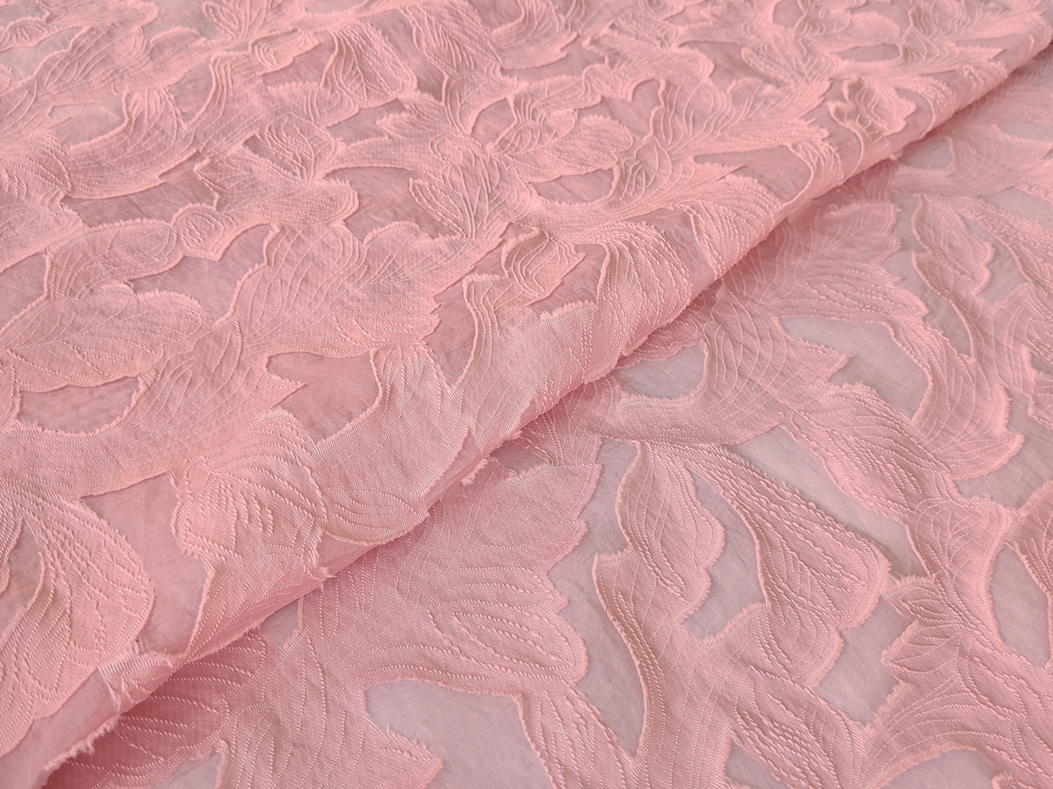 Одним з рішень для ошатної сукні або блузи може бути жаккард з органзи. Набивний малюнок жаккардового плетіння має вишуканий вигляд, виглядає дуже ошатно і стильно. Основа тканини - органза, що надає цьому жаккарду легкості і невагомості, при цьому дозволяє тримати форму, завдяки чому ви можете втілити ваші дизайнерські ідеї.