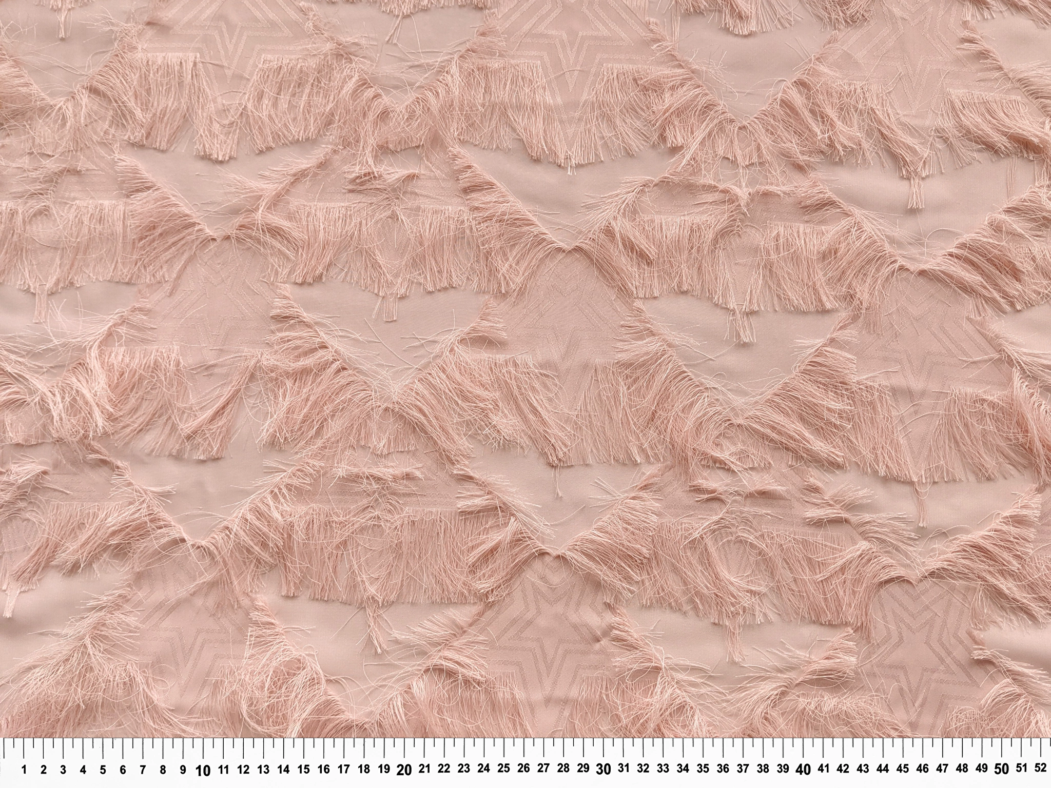 Жаккард вії - легка жакардова тканина, орнамент якої сформований шляхом ущільнення ниток, краї яких декоративно звисають рівним рядком. Набивний візерунок на щільній основі з органзи разом з нитками, що хаотично звисають, виглядає дуже стильно. У виробі тканина тримає форму, лягає гарними пишними хвилями, в носінні легка і комфортна, не змінюється. Тканина підійде для пошиття ошатних суконь, блуз, костюмів, а також для пошиття суконь для класичних танців, концертних виступів. Колірна гама дозволяє підібрати відтінок, здатний підкреслити вашу індивідуальність.